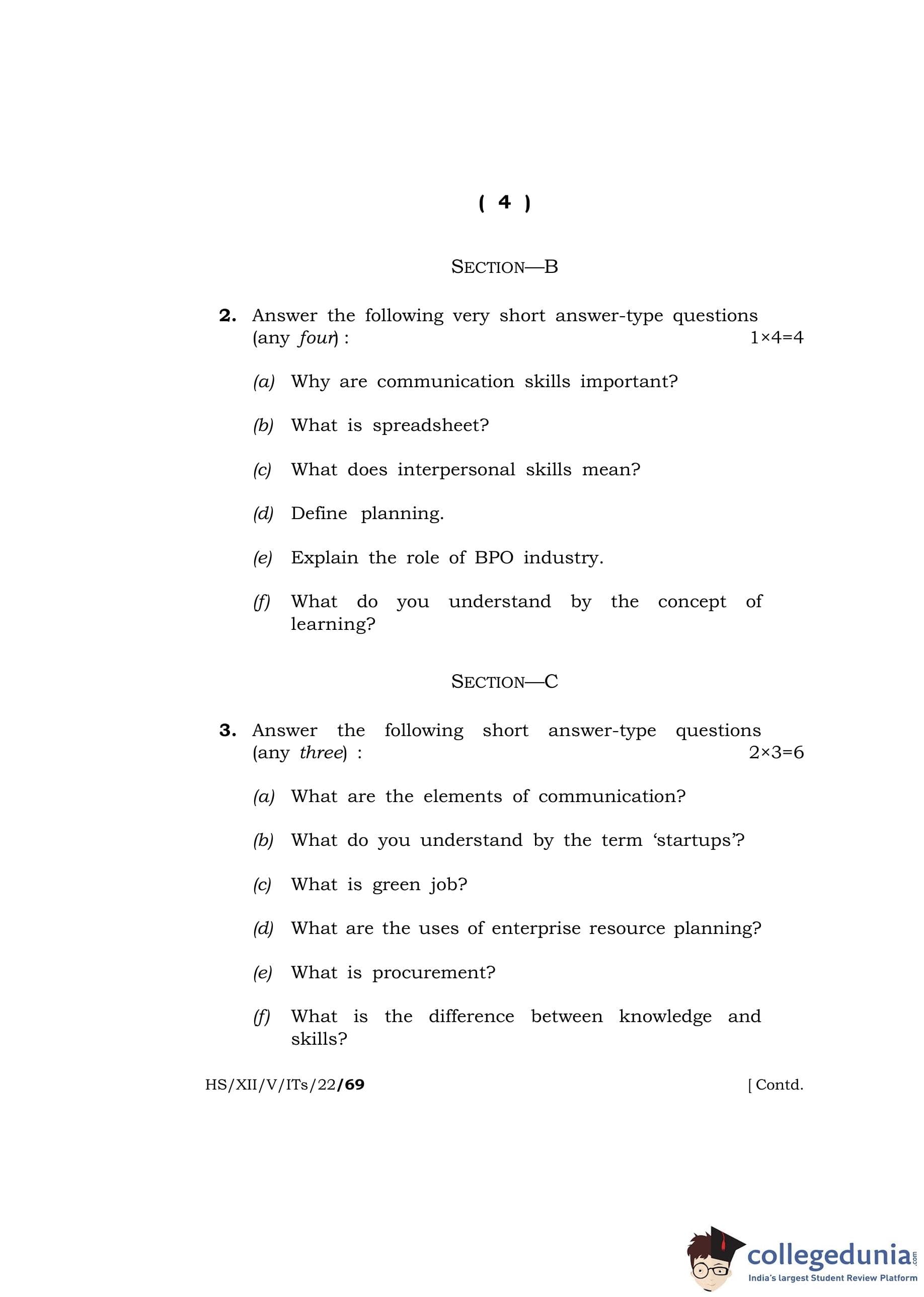MBOSE Class 12 IT/ITES Question Paper 2022 with Answer Key pdf is available for download here. The exam was conducted by Meghalaya Board of School Education on April 14, 2022 in the Morning Session 10 AM to 11 AM. The question paper comprised a total of 4 questions divided among 4 sections.