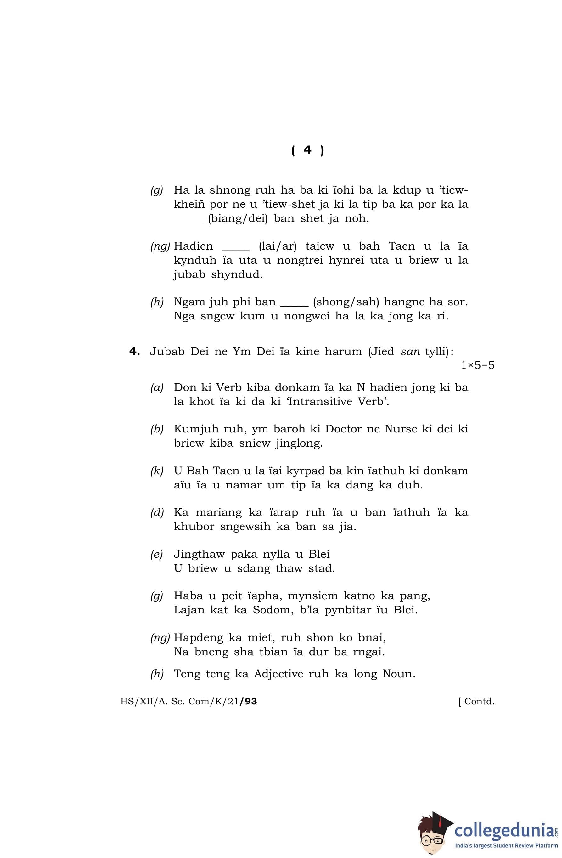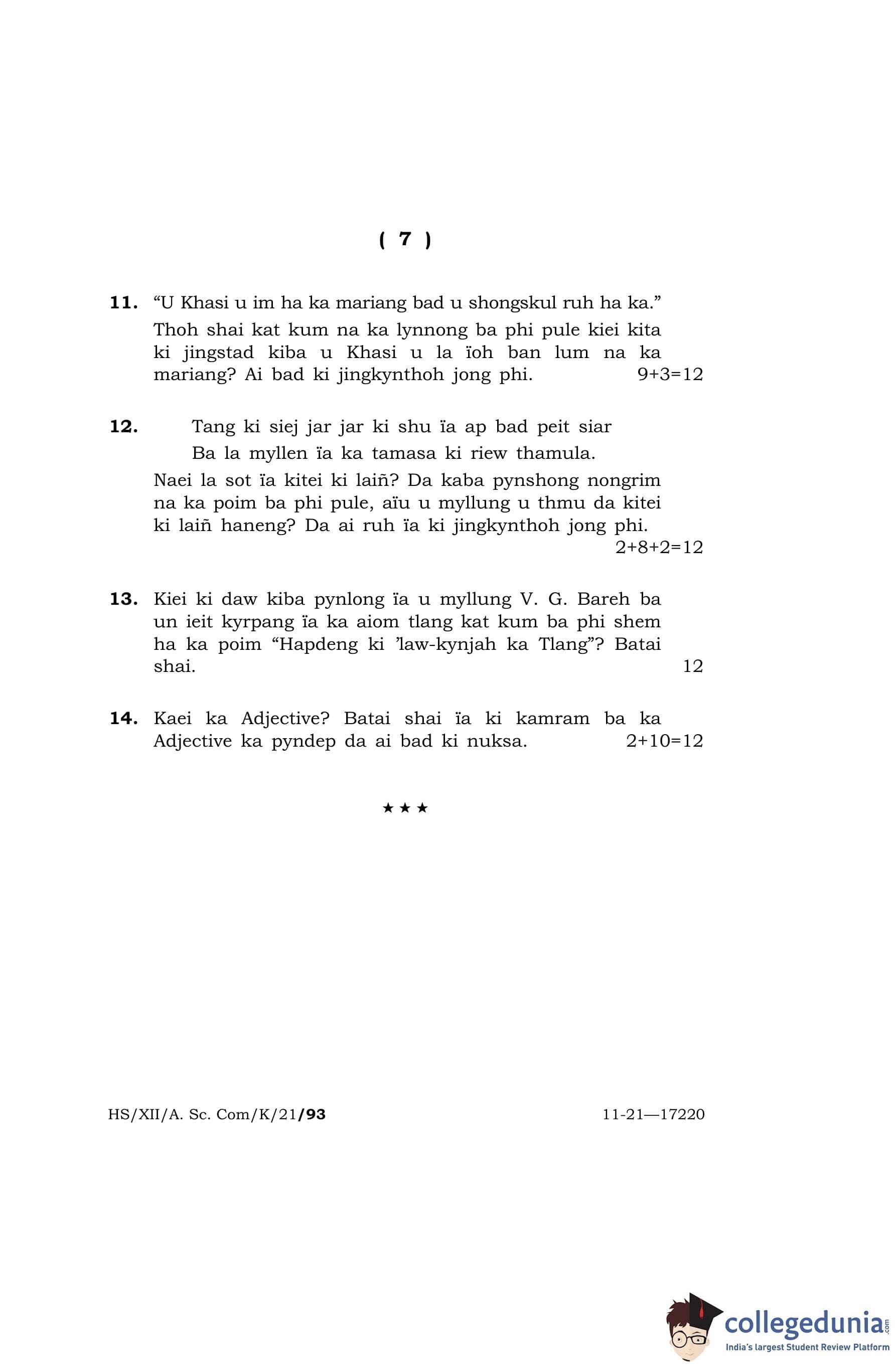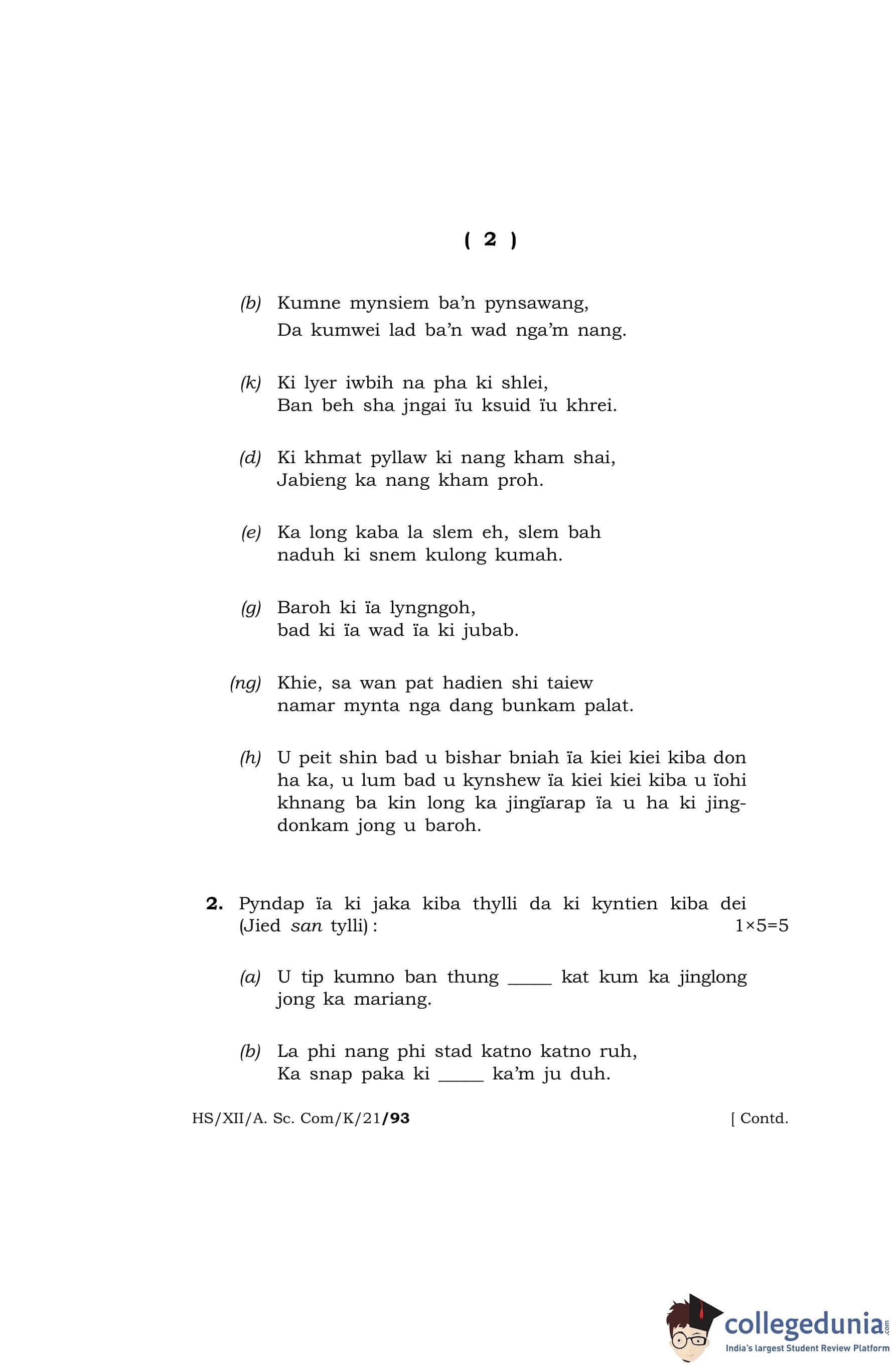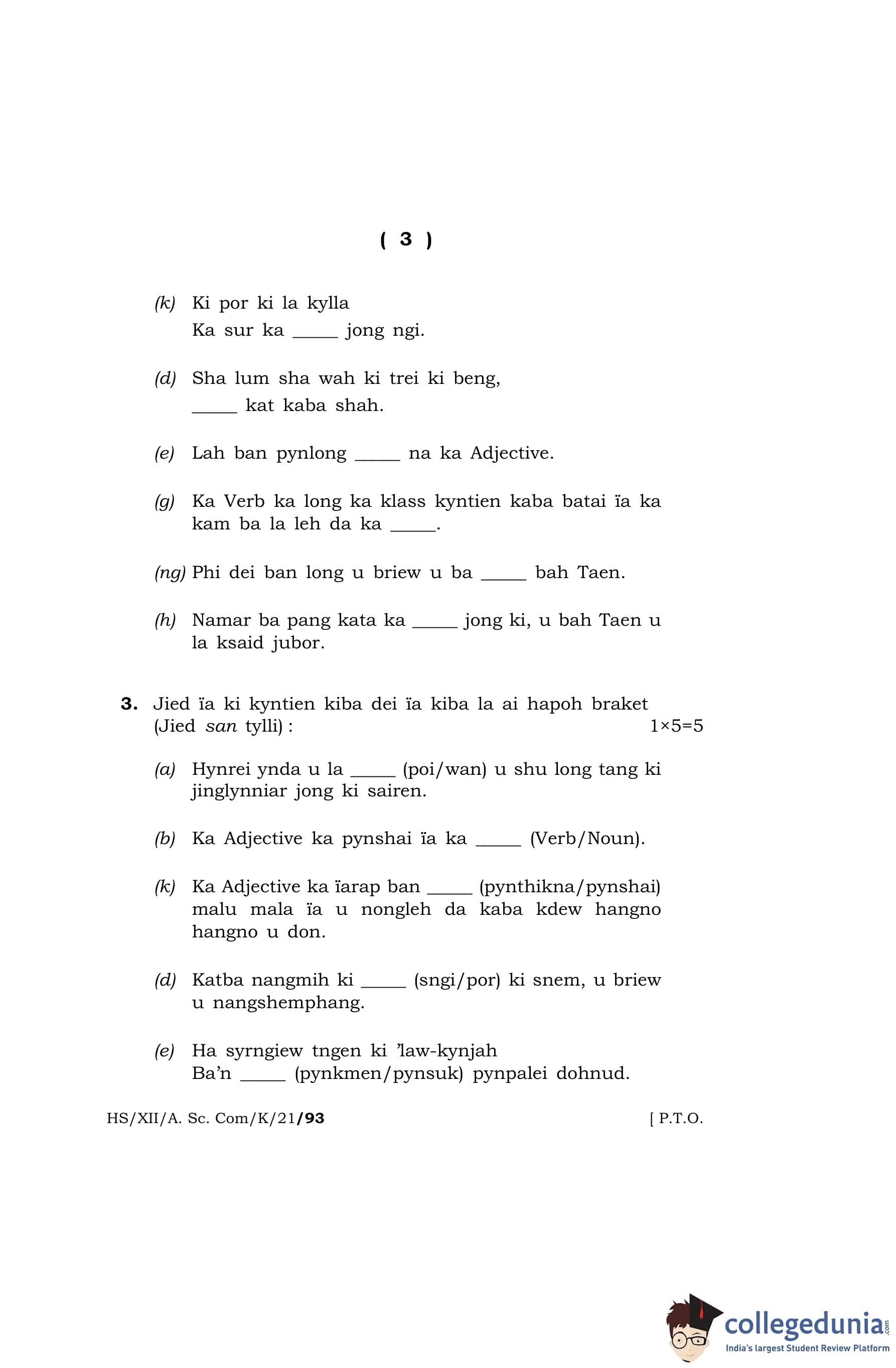 MBOSE Class 12 Khasi Question Paper 2021 with Answer Key