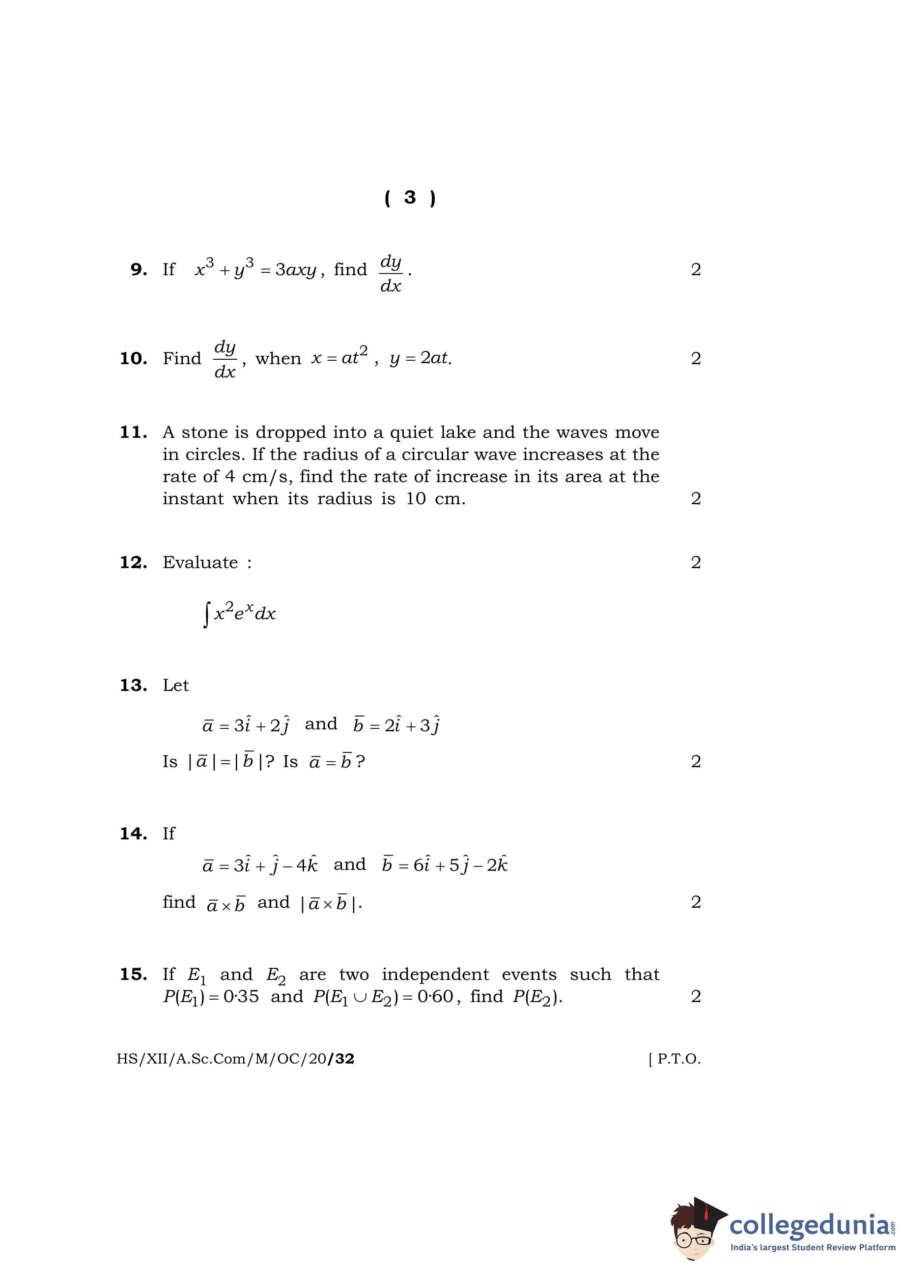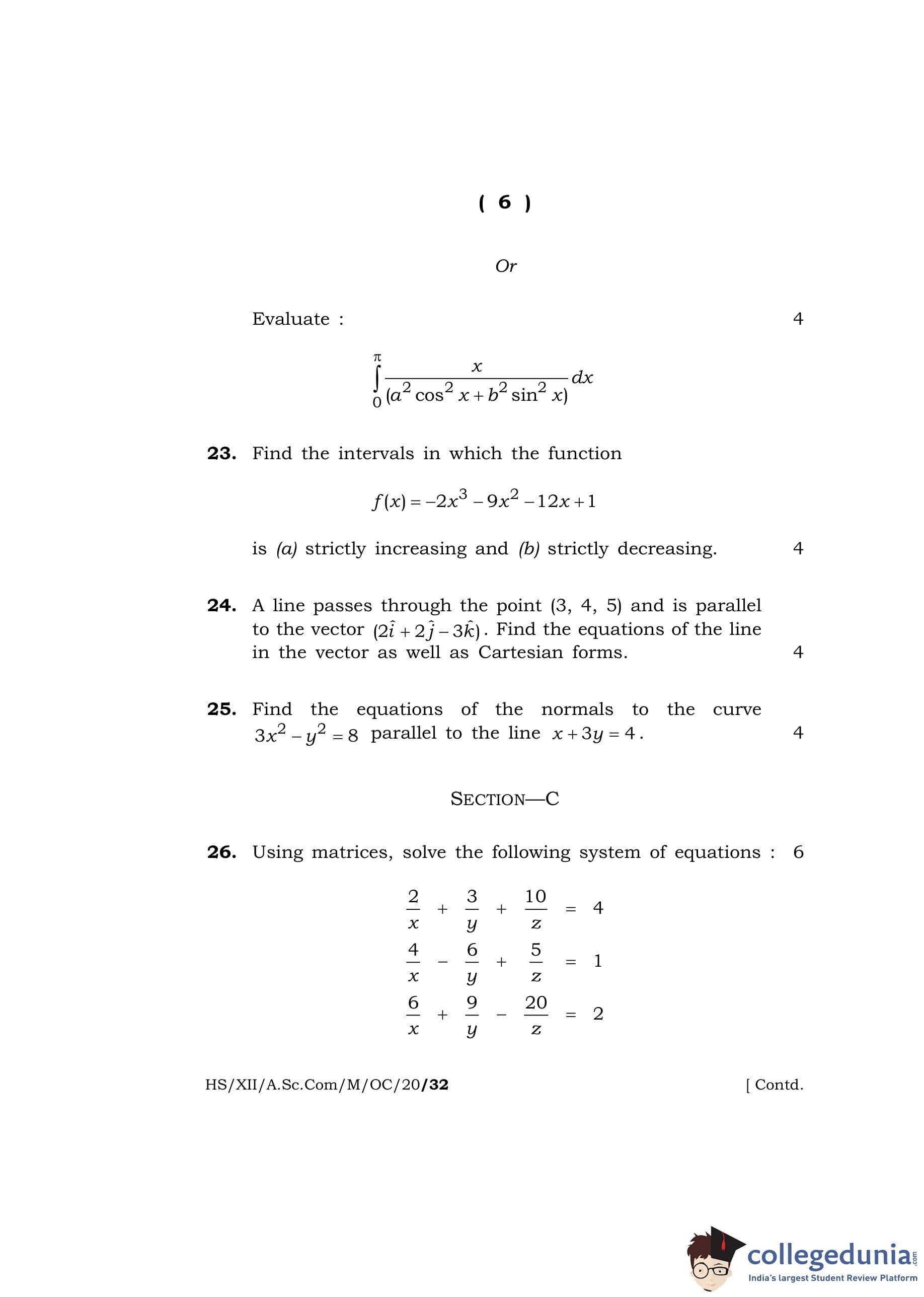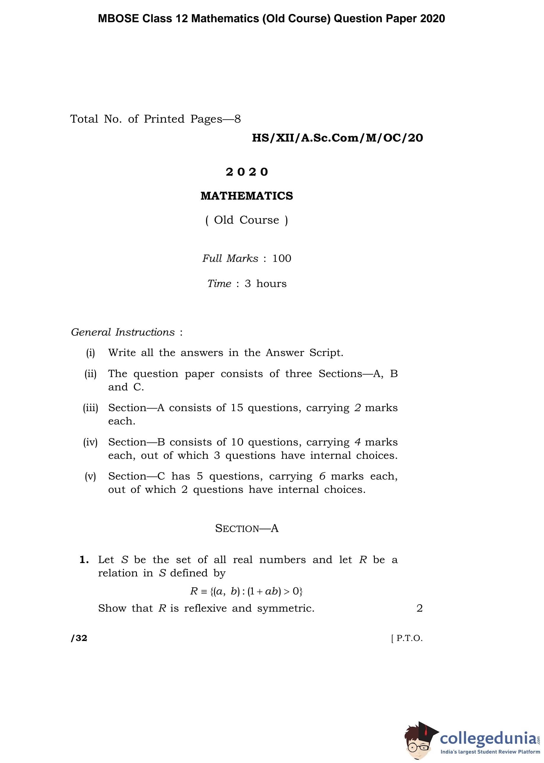MBOSE Class 12 Mathematics (Old Course) Question Paper 2020 with Answer Key pdf is available for download here. The exam was conducted by Meghalaya Board of School Education on June 8, 2020 in the Morning Session 10 AM to 1 PM. The question paper comprised a total of 30 questions divided among 3 sections.