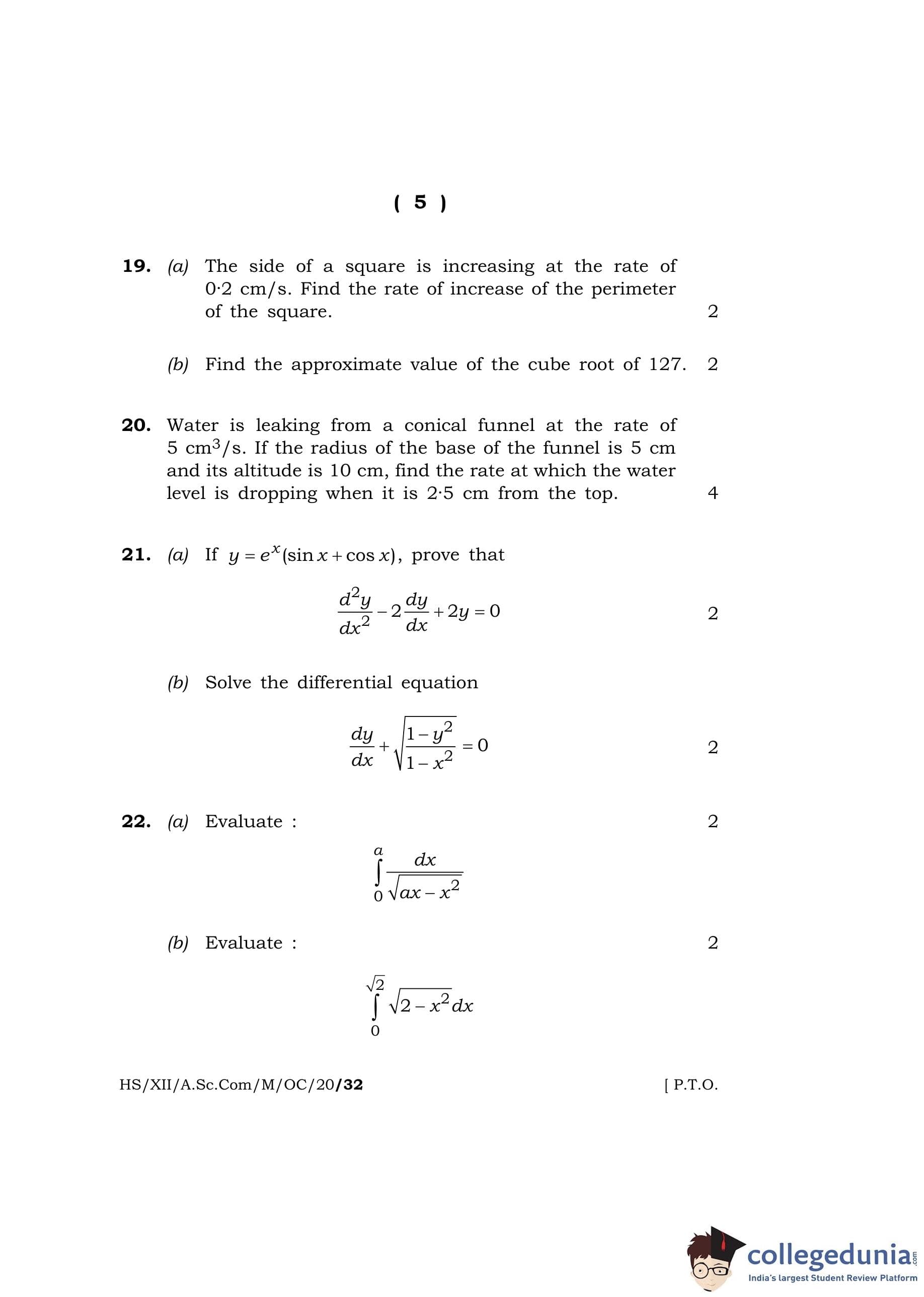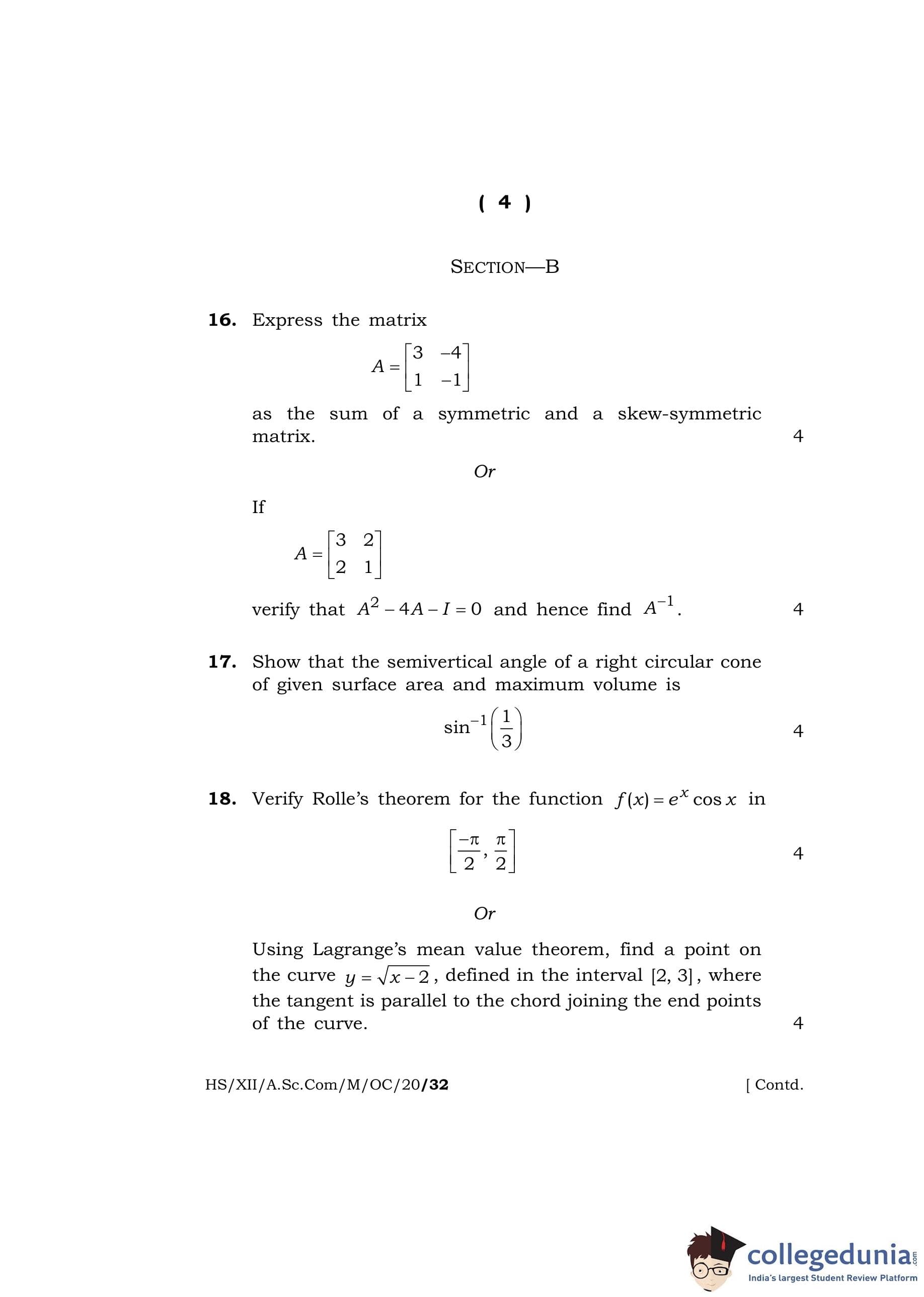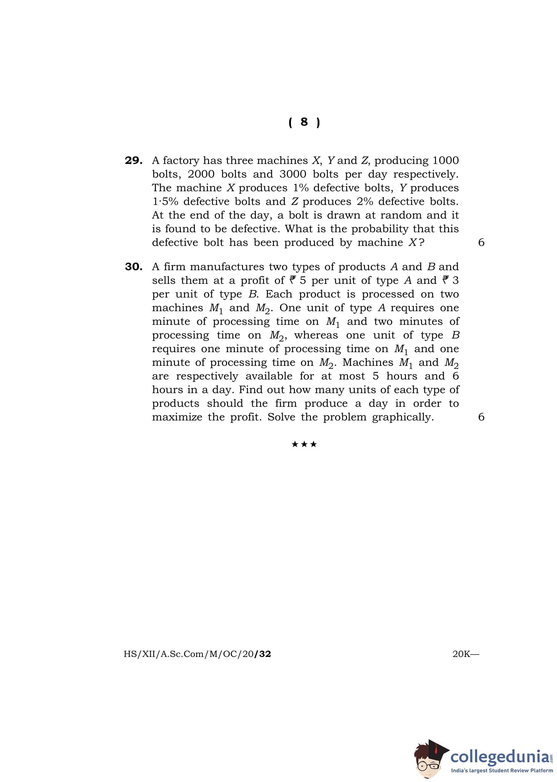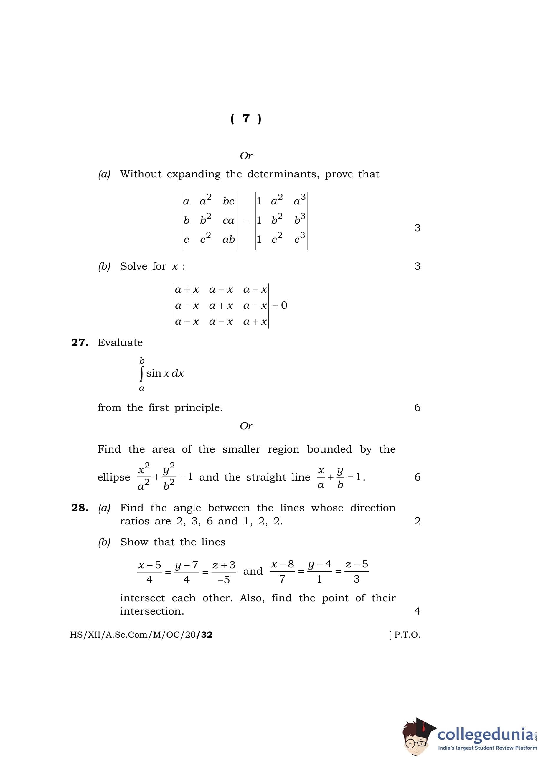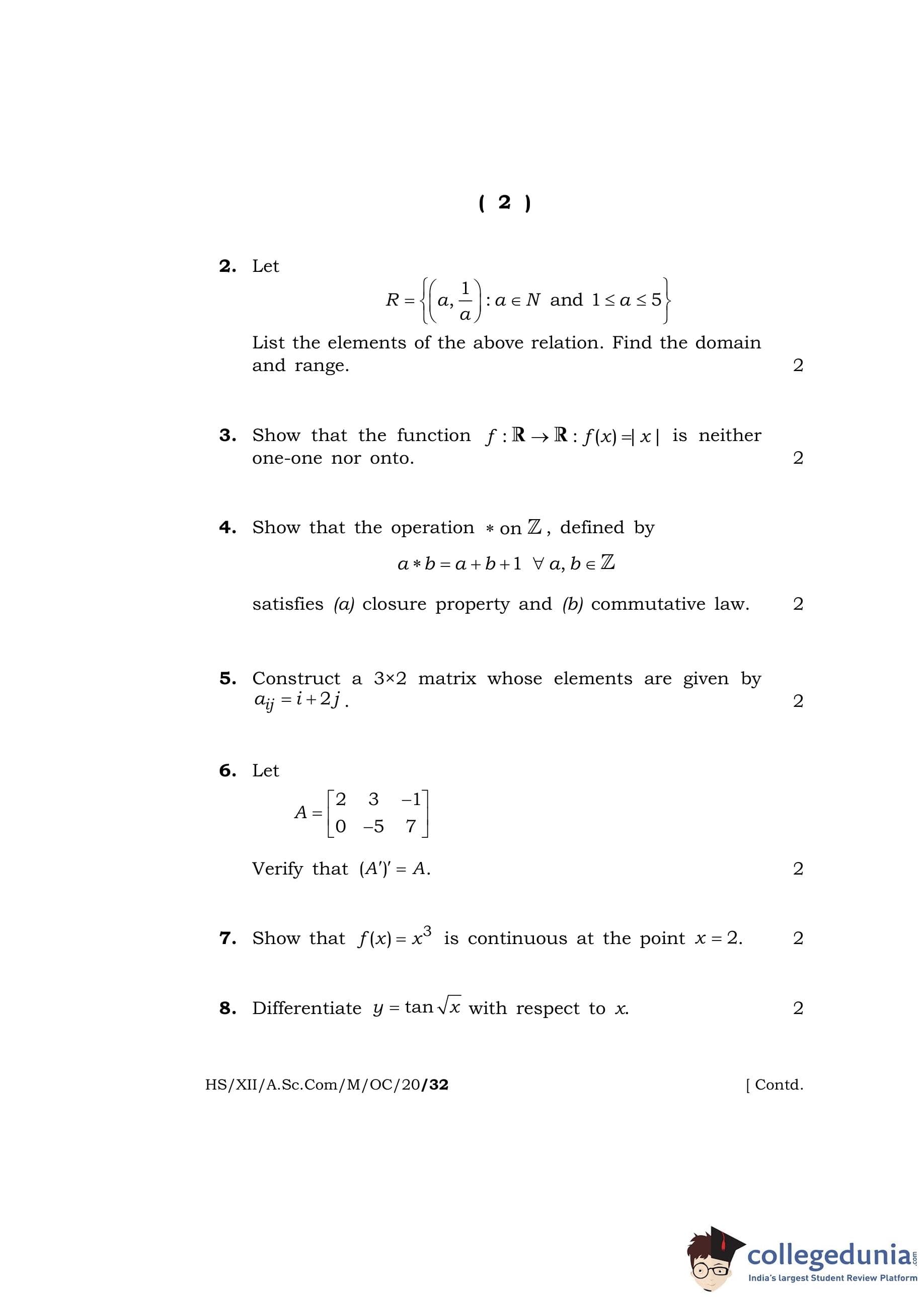 MBOSE Class 12 Mathematics Question Paper 2020 with Answer Key