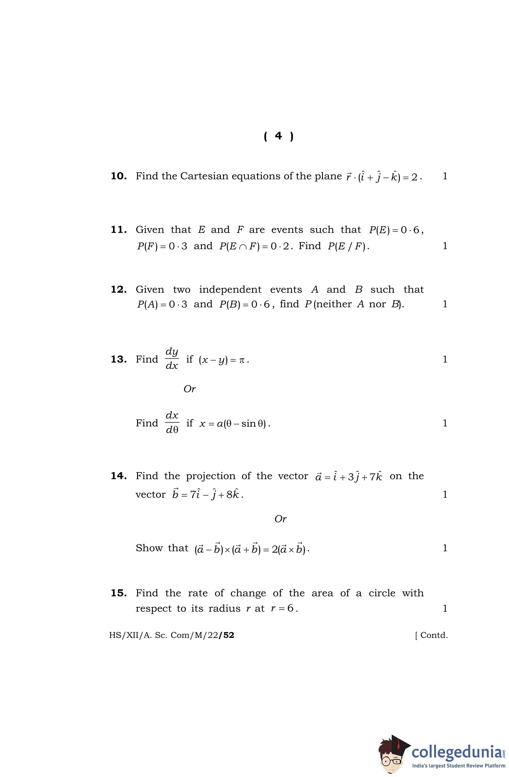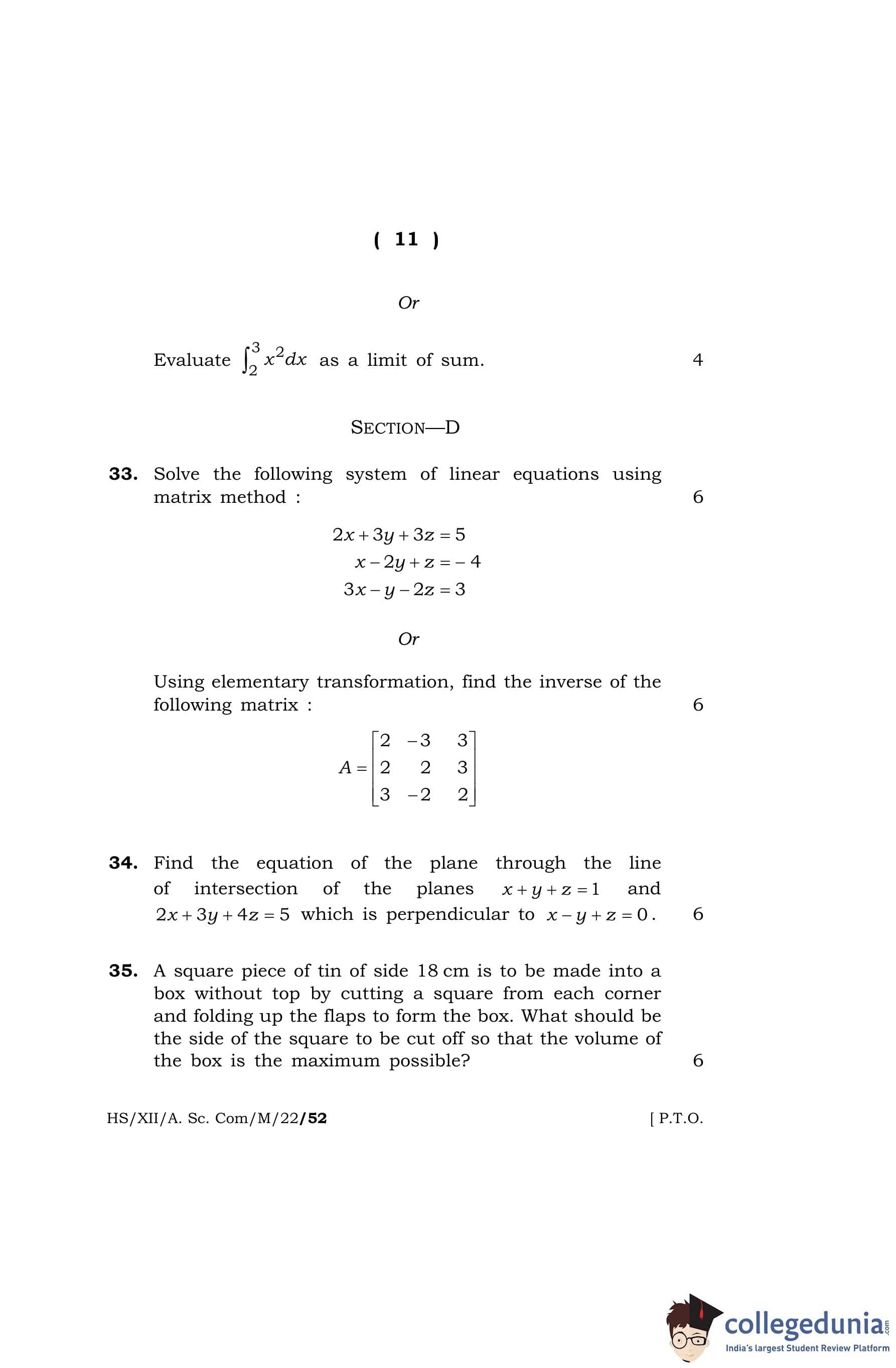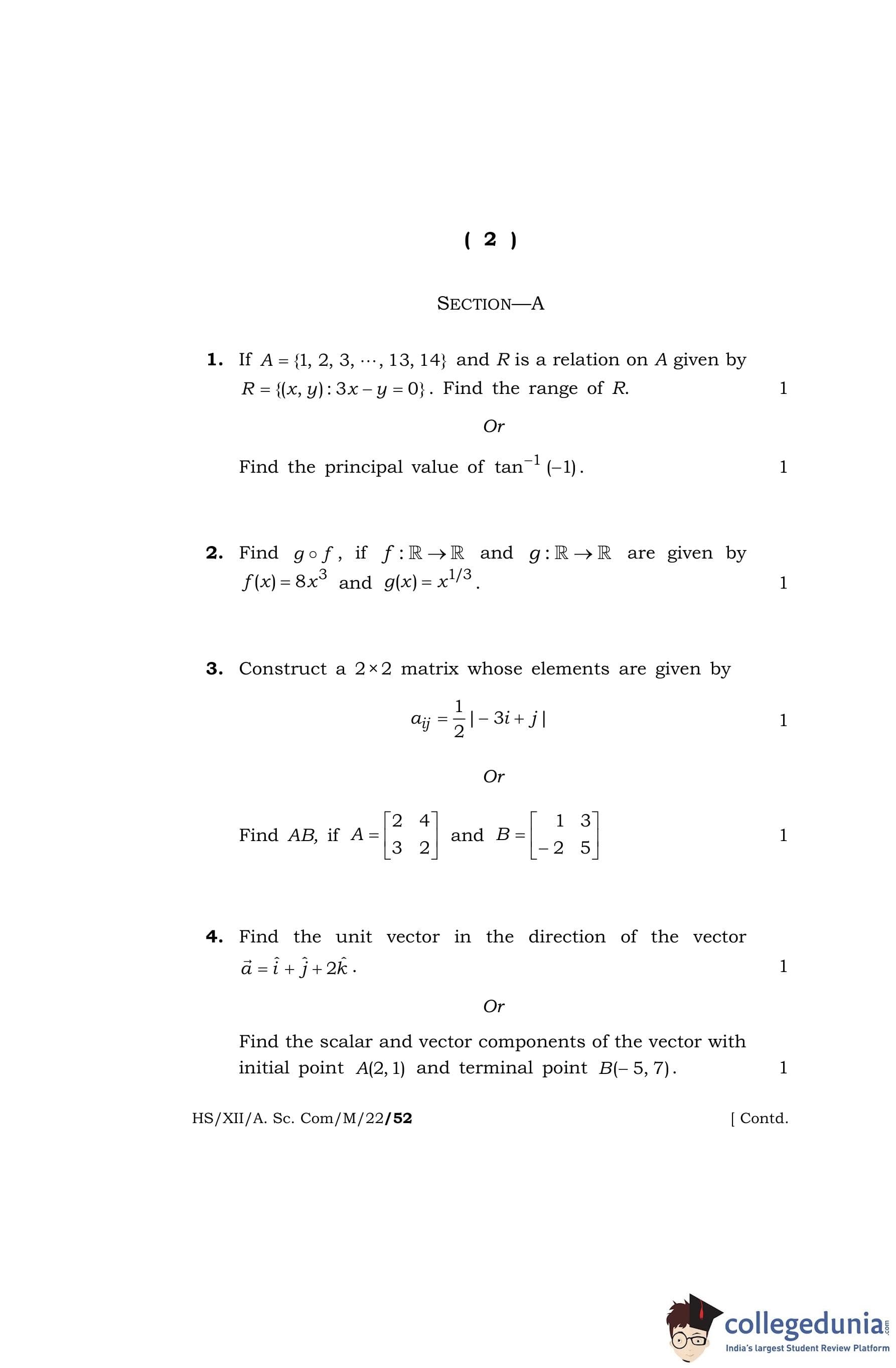 MBOSE Class 12 Mathematics Question Paper 2022 with Answer Key pdf is available for download here. The exam was conducted by Meghalaya Board of School Education on April 7, 2022 in the Morning Session 10 AM to 1 PM. The question paper comprised a total of 36 questions divided among 4 sections.