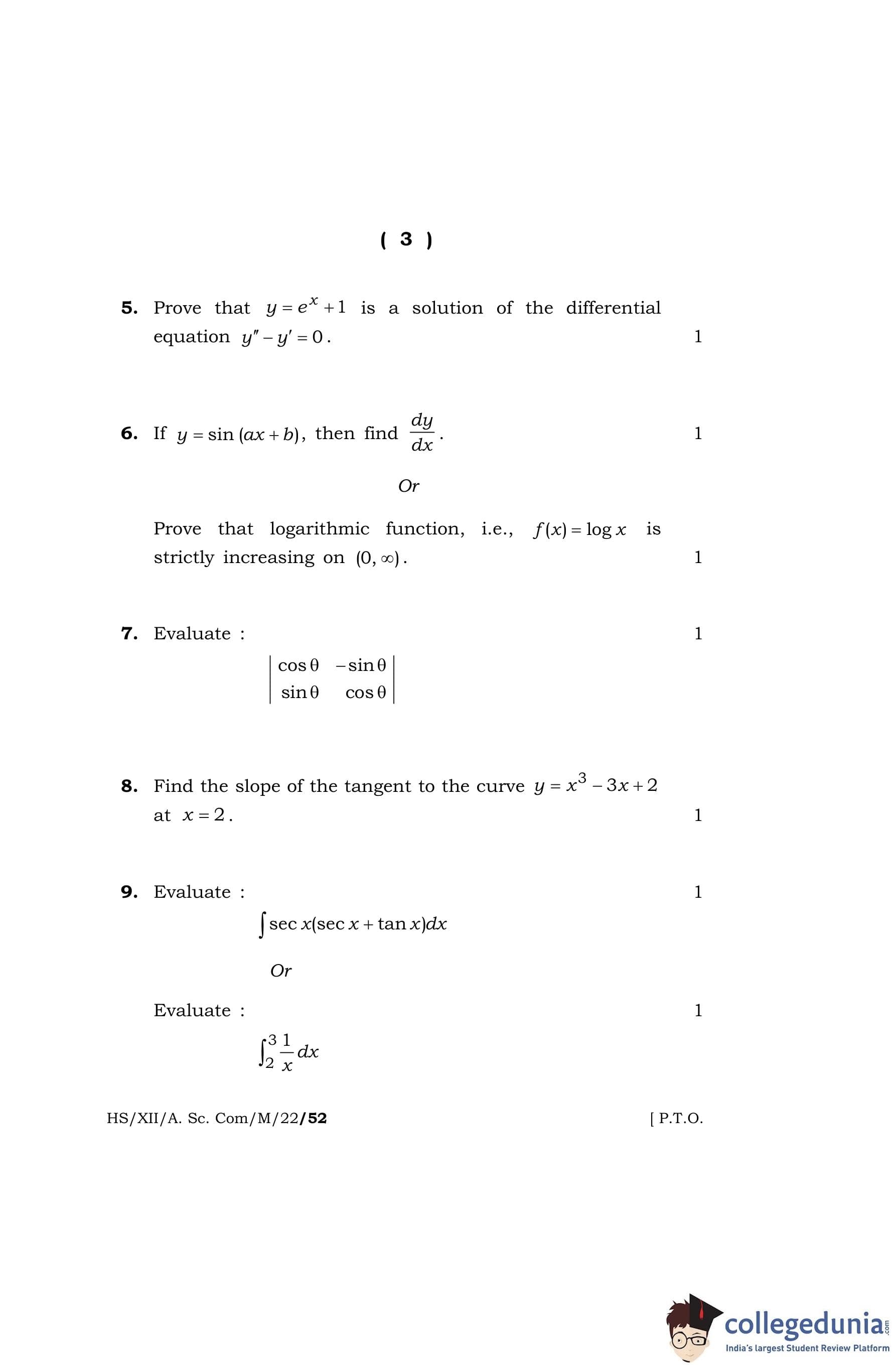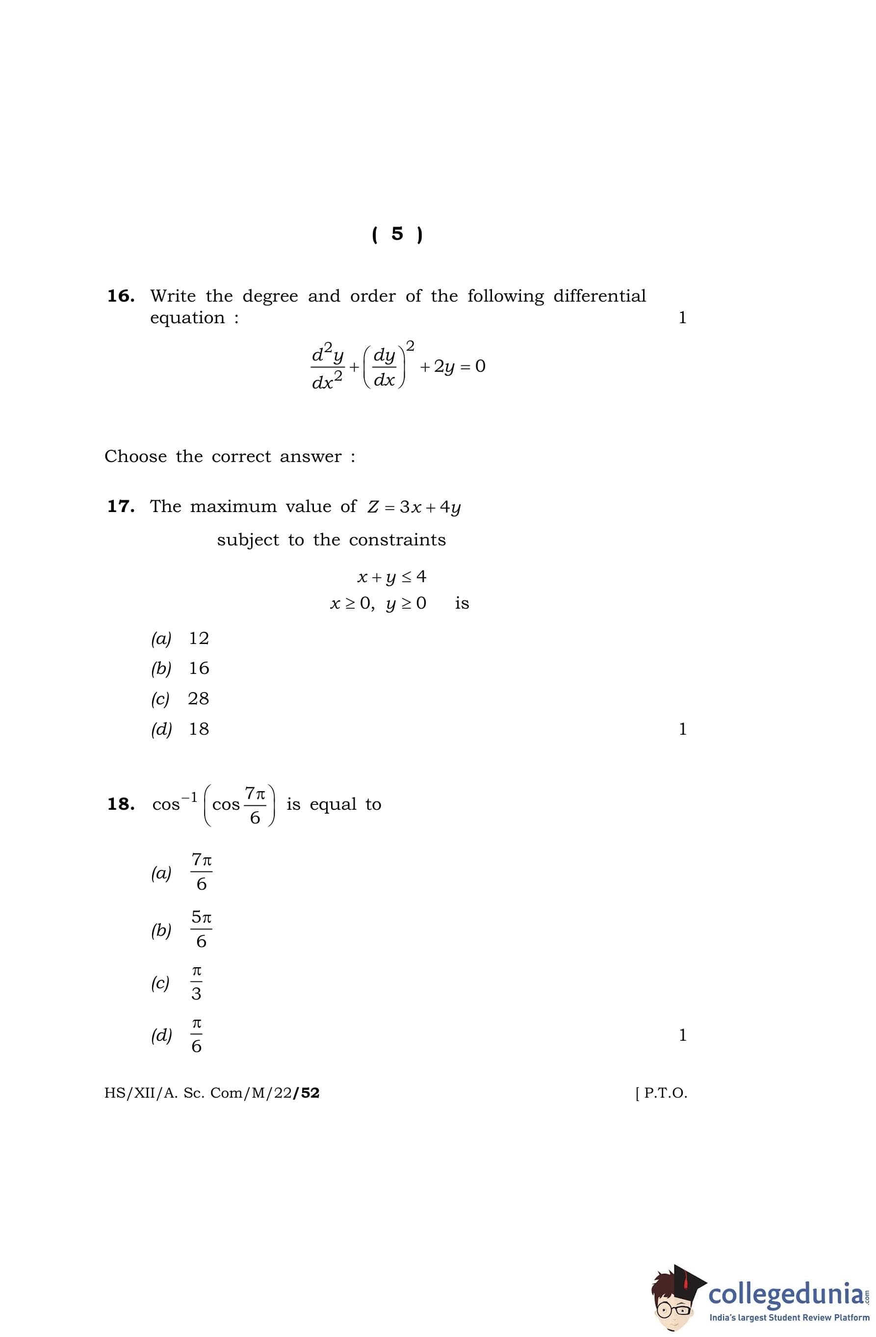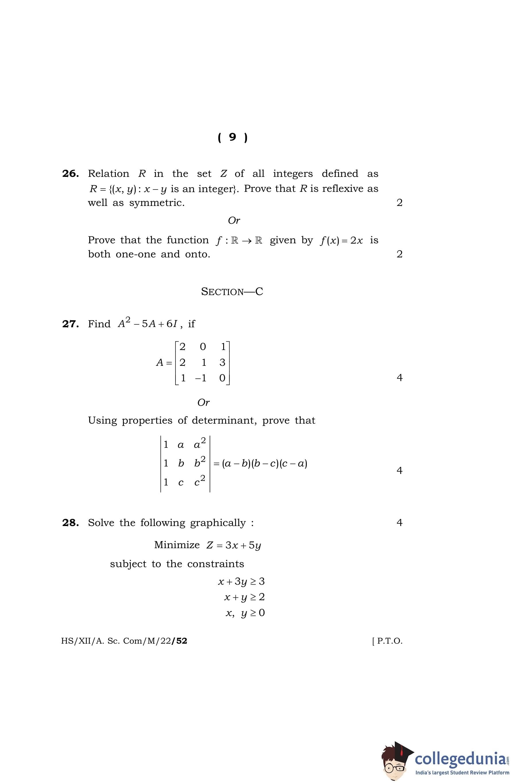 MBOSE Class 12 Mathematics Question Paper 2022