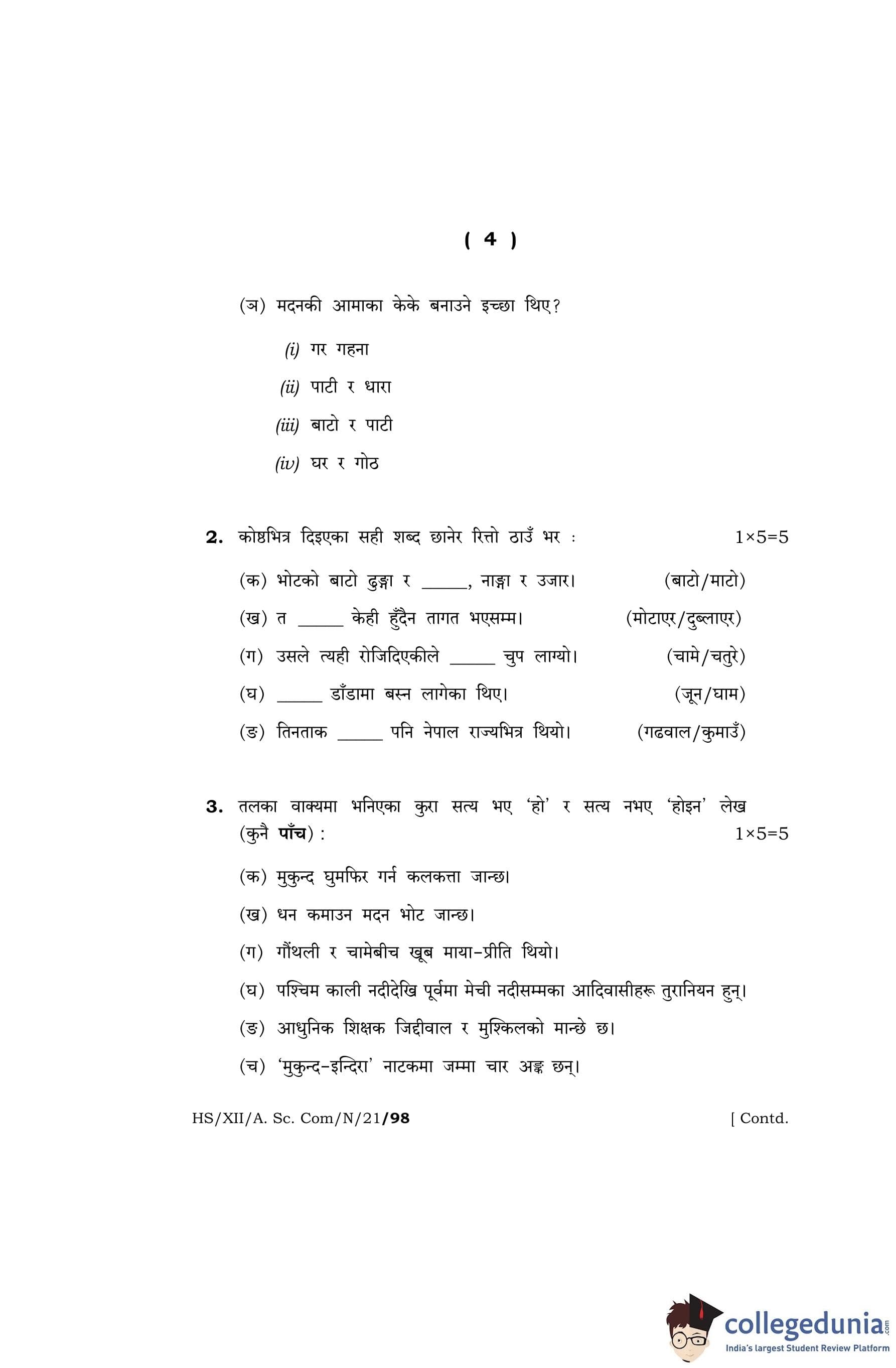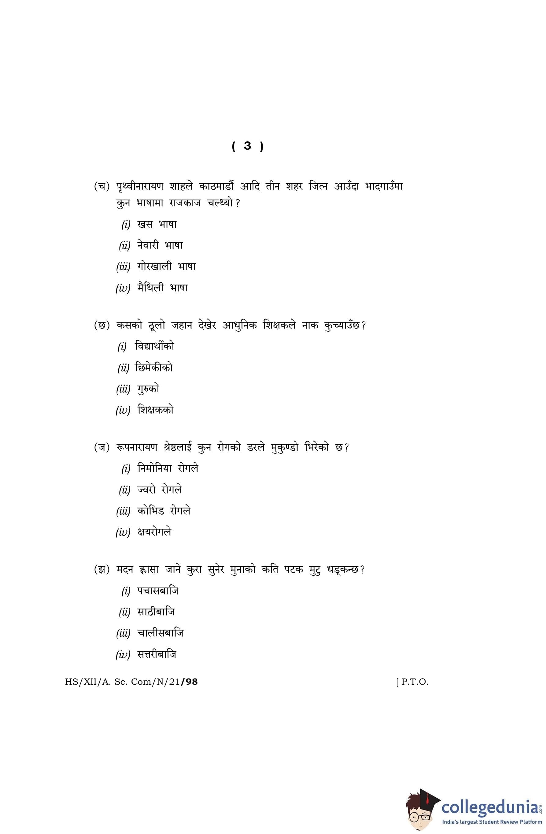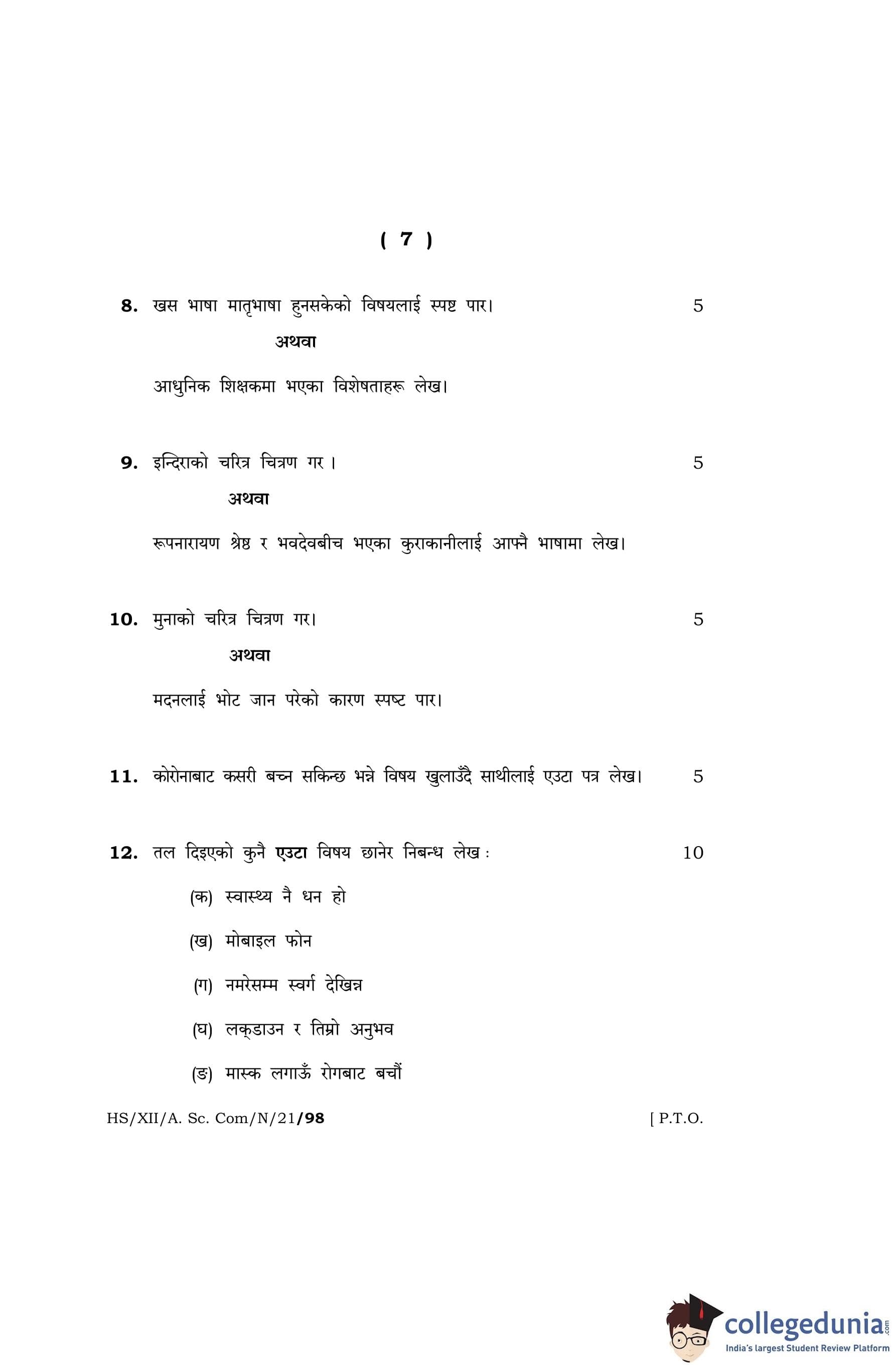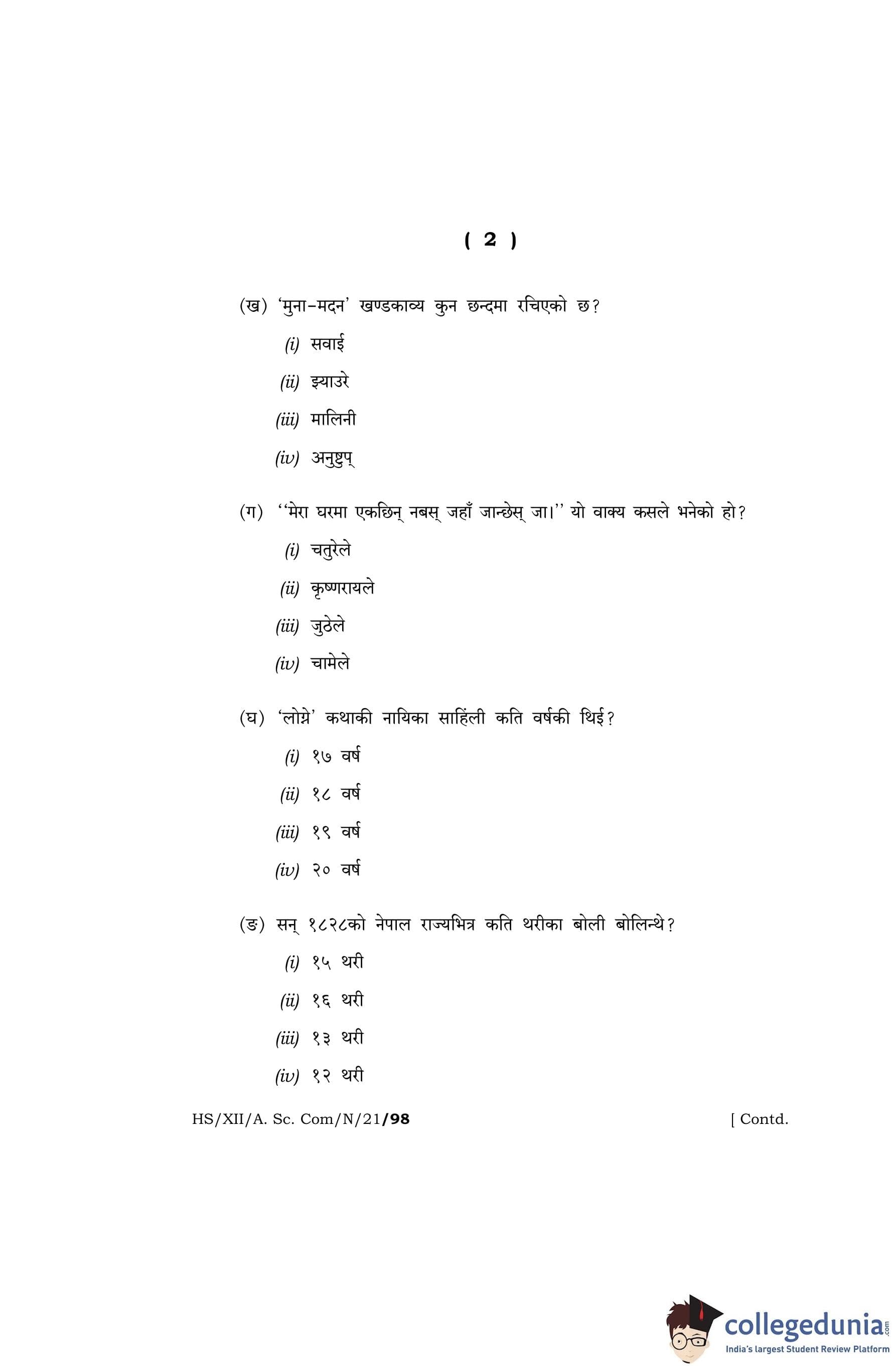 MBOSE Class 12 Nepali Question Paper 2021 with Answer Key