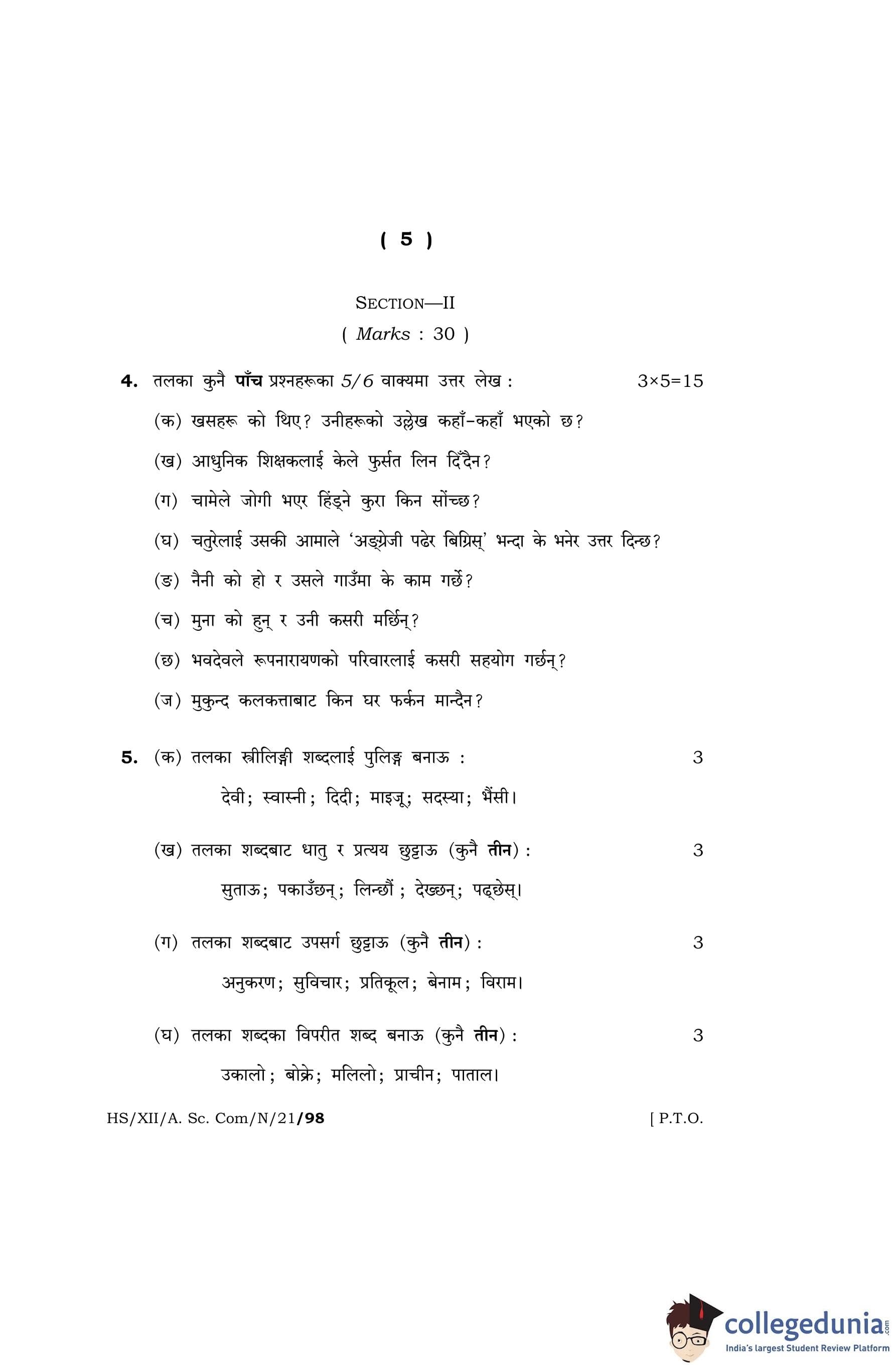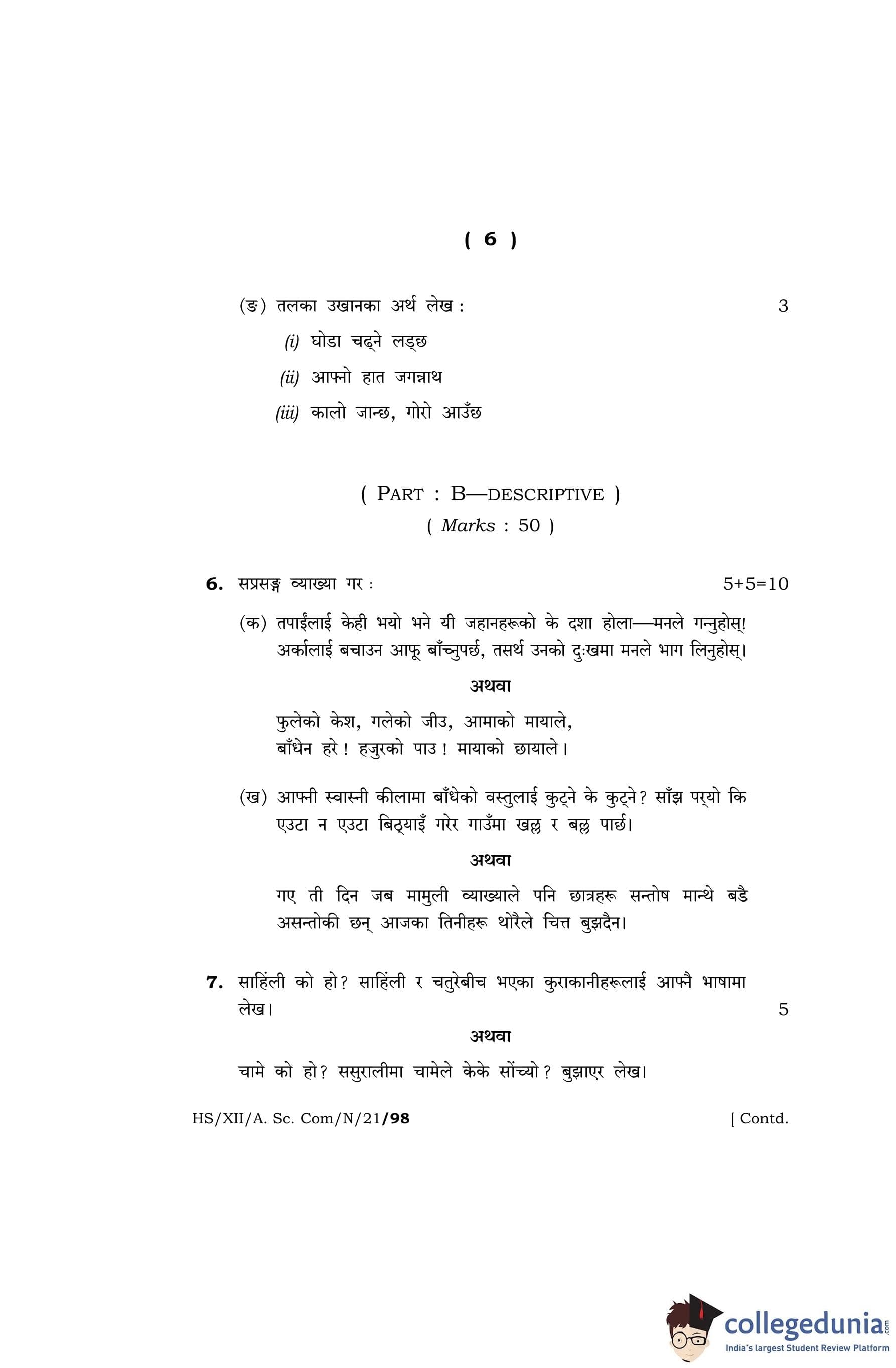 MBOSE Class 12 Nepali Question Paper 2021 with Answer Key pdf is available for download here. The exam was conducted by Meghalaya Board of School Education on April 20, 2021 in the Morning Session 10 AM to 1 PM. The question paper comprised a total of 13 questions divided among 2 sections.
