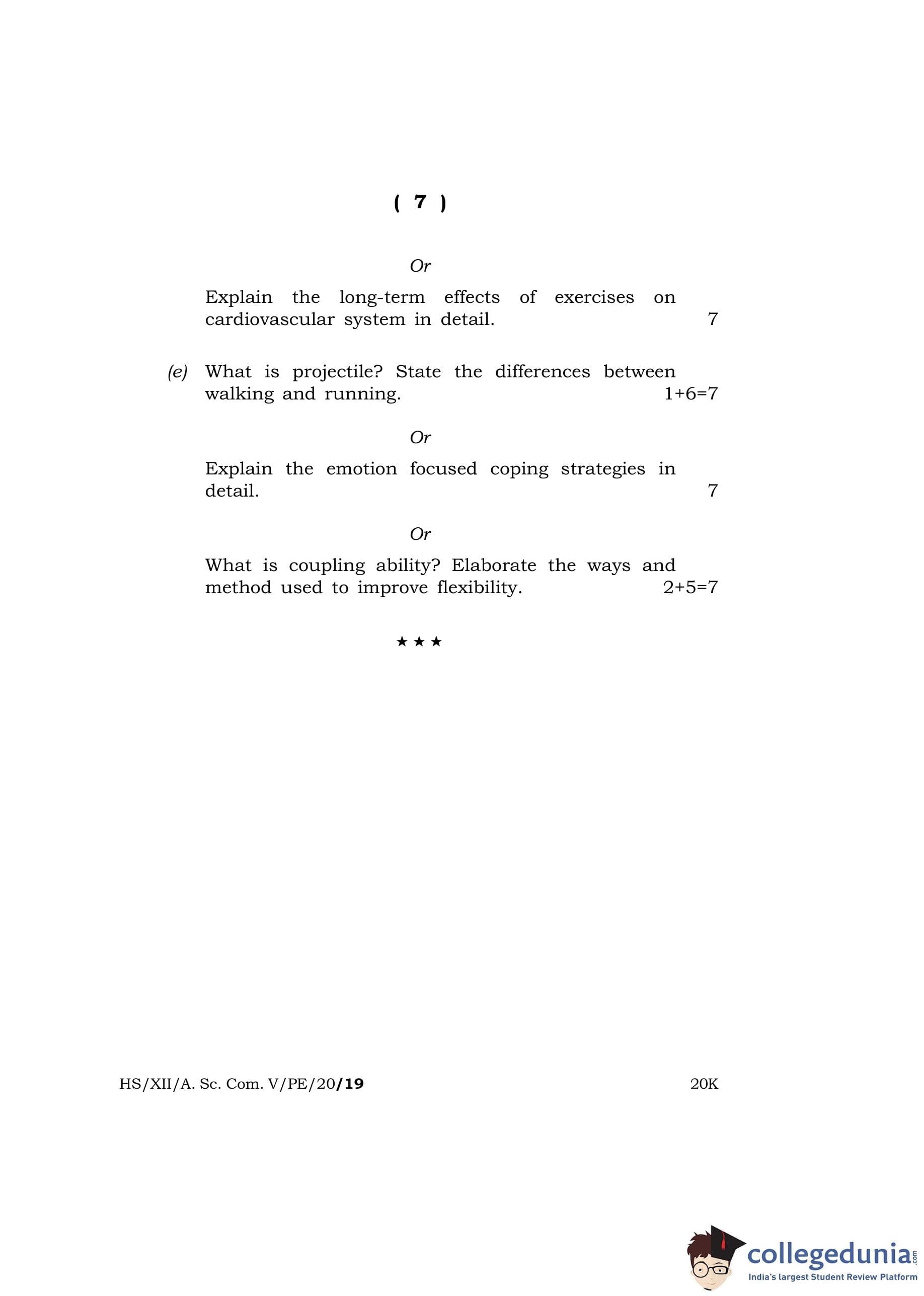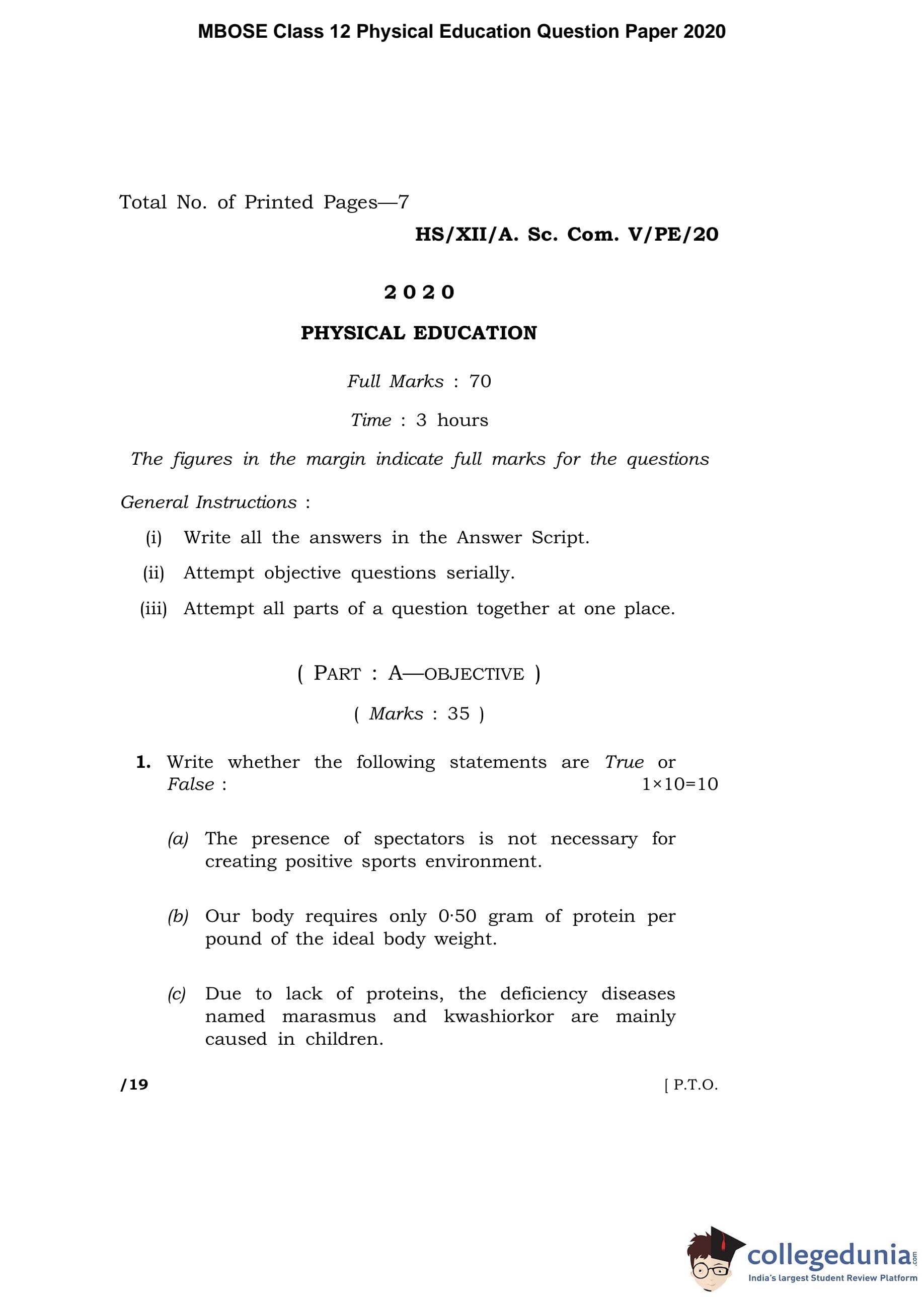 MBOSE Class 12 Physical Education Question Paper 2020 with Answer Key