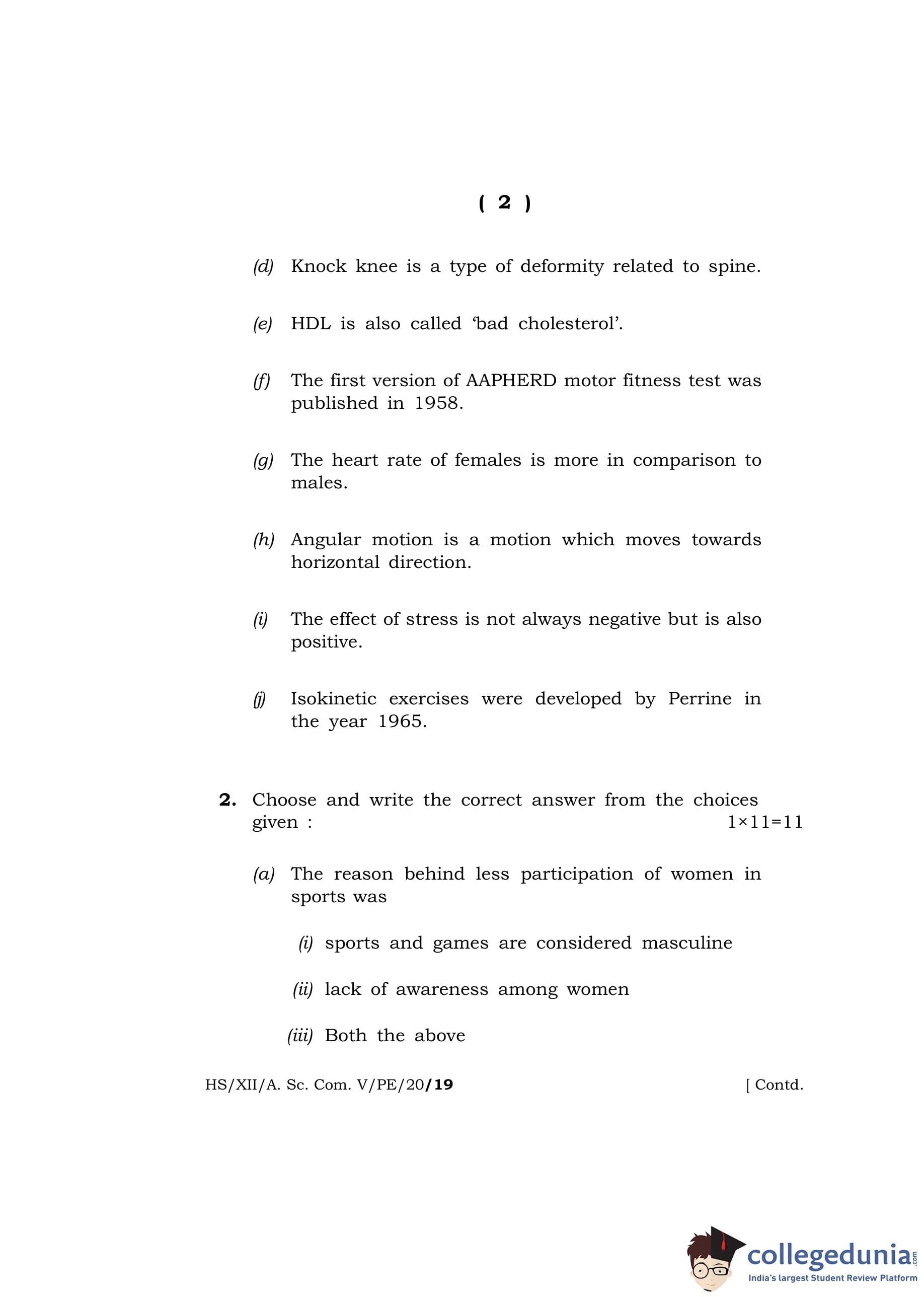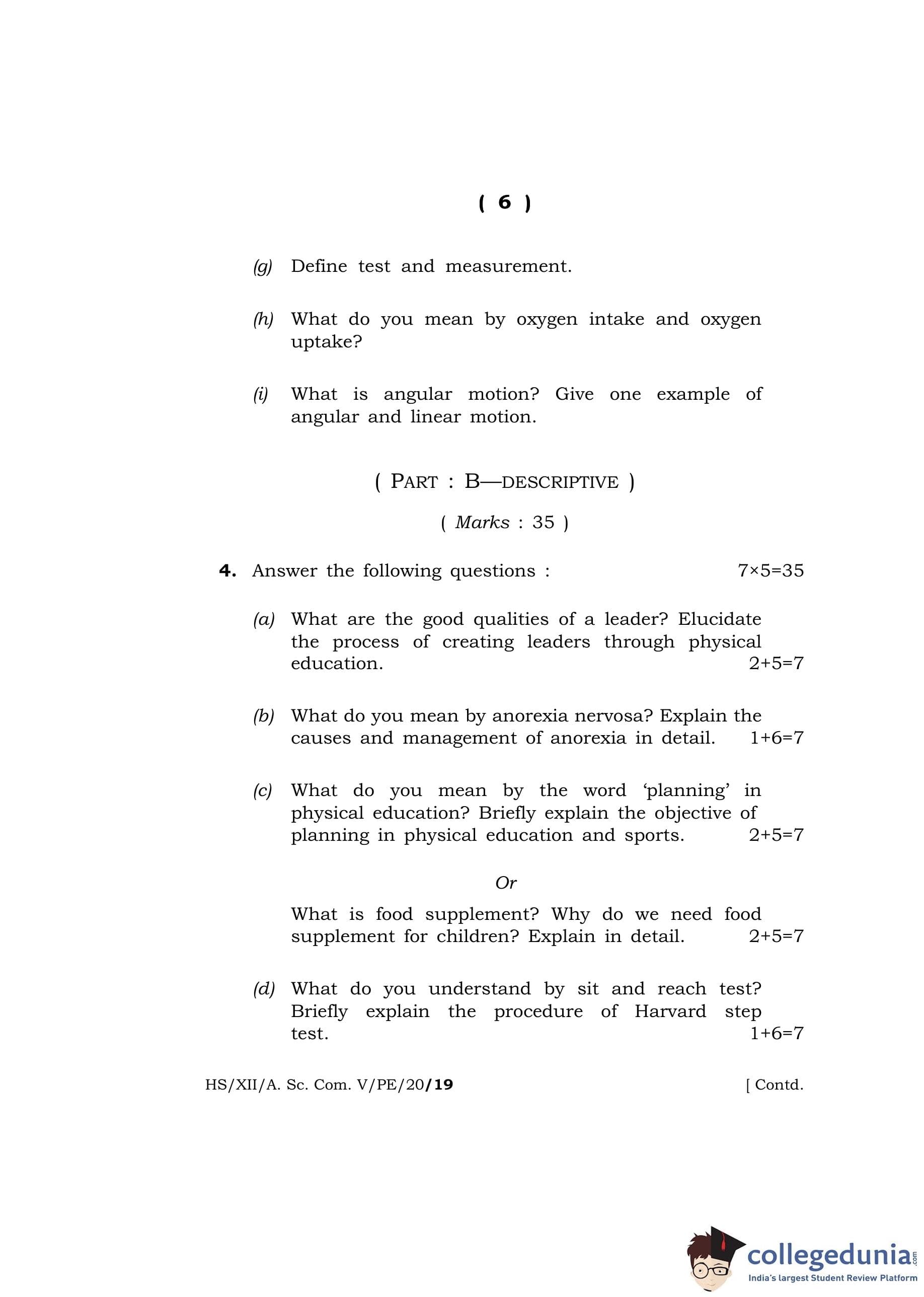 MBOSE Class 12 Physical Education Question Paper 2020 with Answer Key pdf is available for download here. The exam was conducted by Meghalaya Board of School Education on June 9, 2020 in the Morning Session 10 AM to 1 PM. The question paper comprised a total of 4 questions divided among 3 sections.