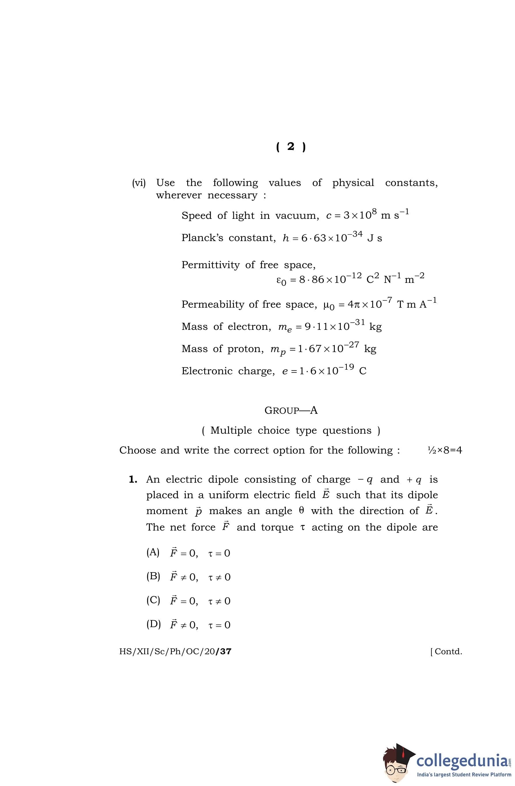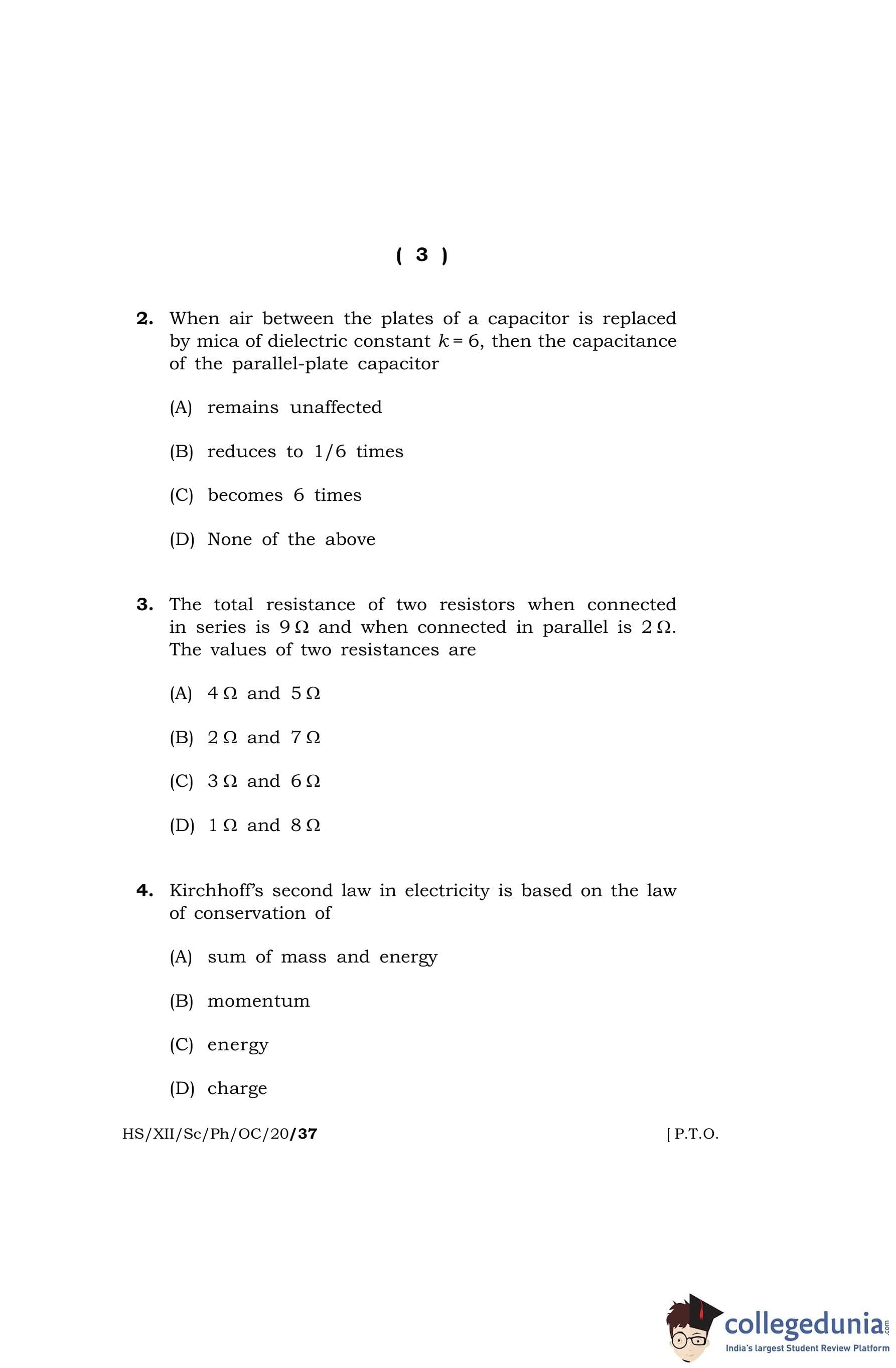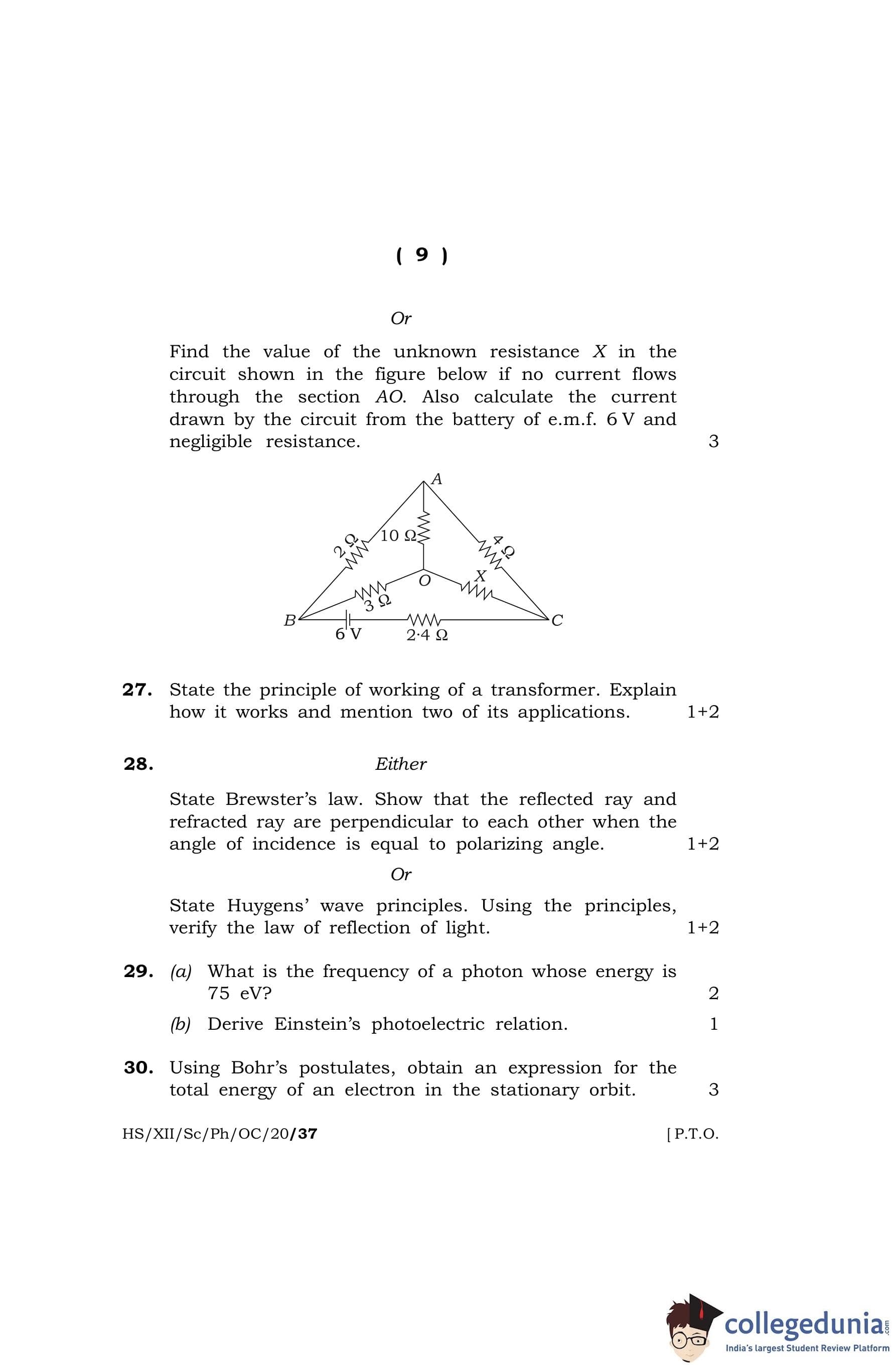 MBOSE Class 12 Physics (Old Course) Question Paper 2020 with Answer Key pdf is available for download here. The exam was conducted by Meghalaya Board of School Education on March 6, 2020 in the Morning Session 10 AM to 1 PM. The question paper comprised a total of 36 questions divided among 5 sections.