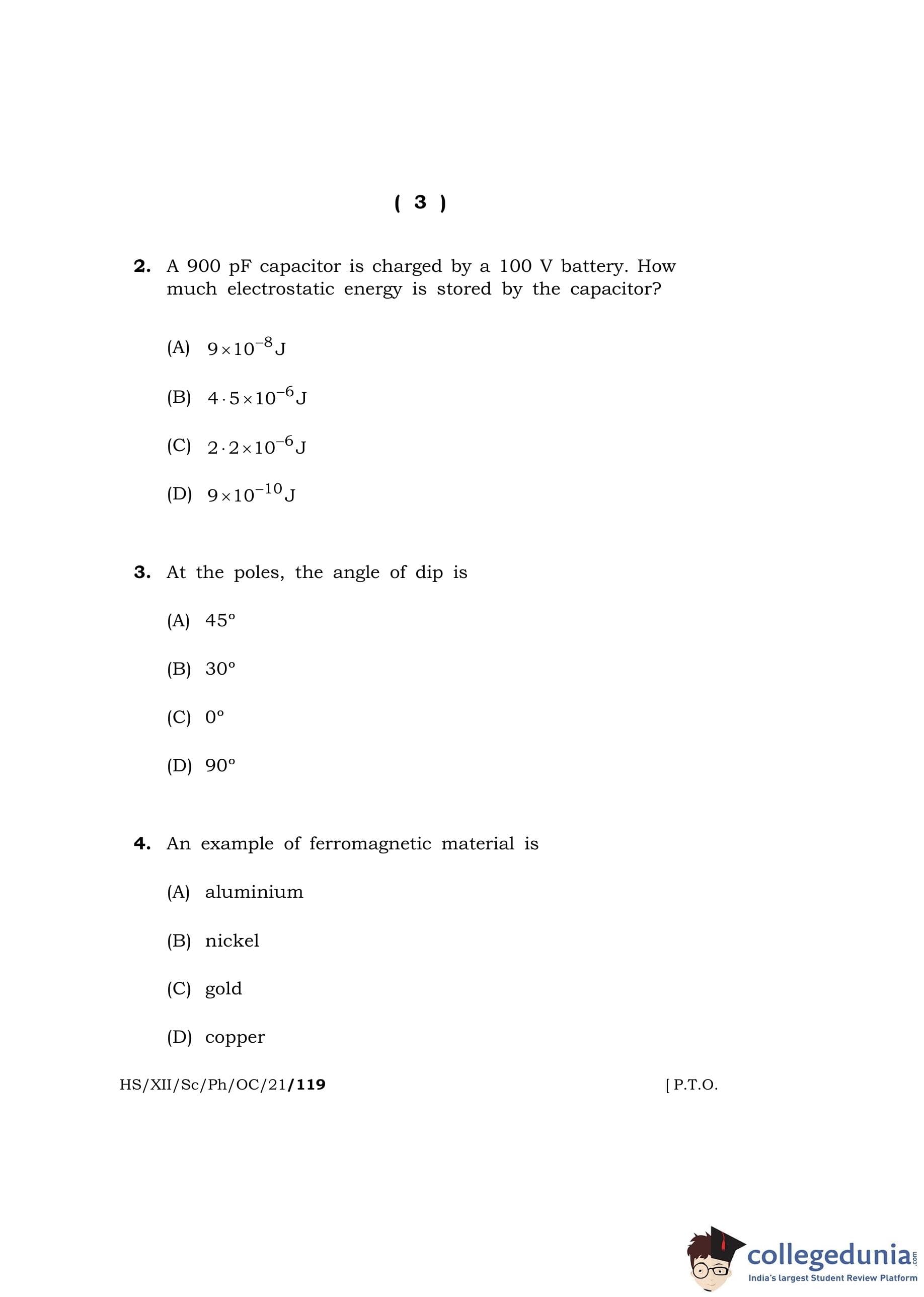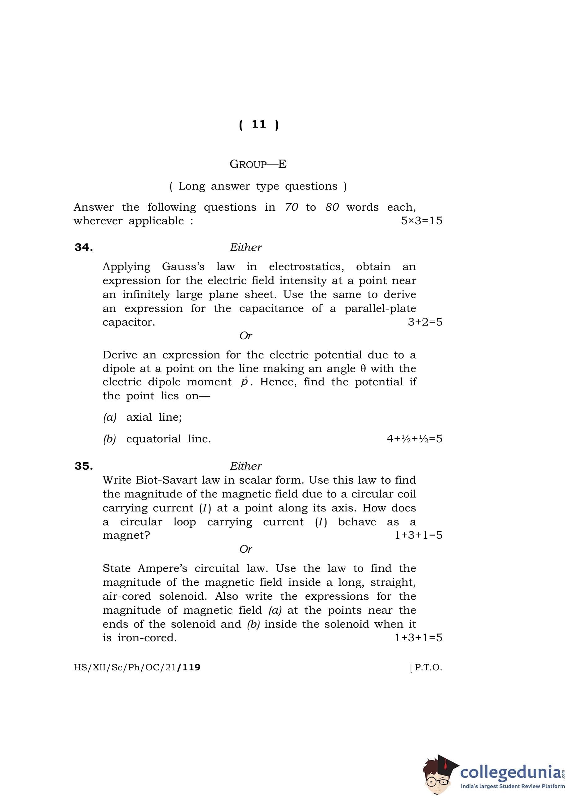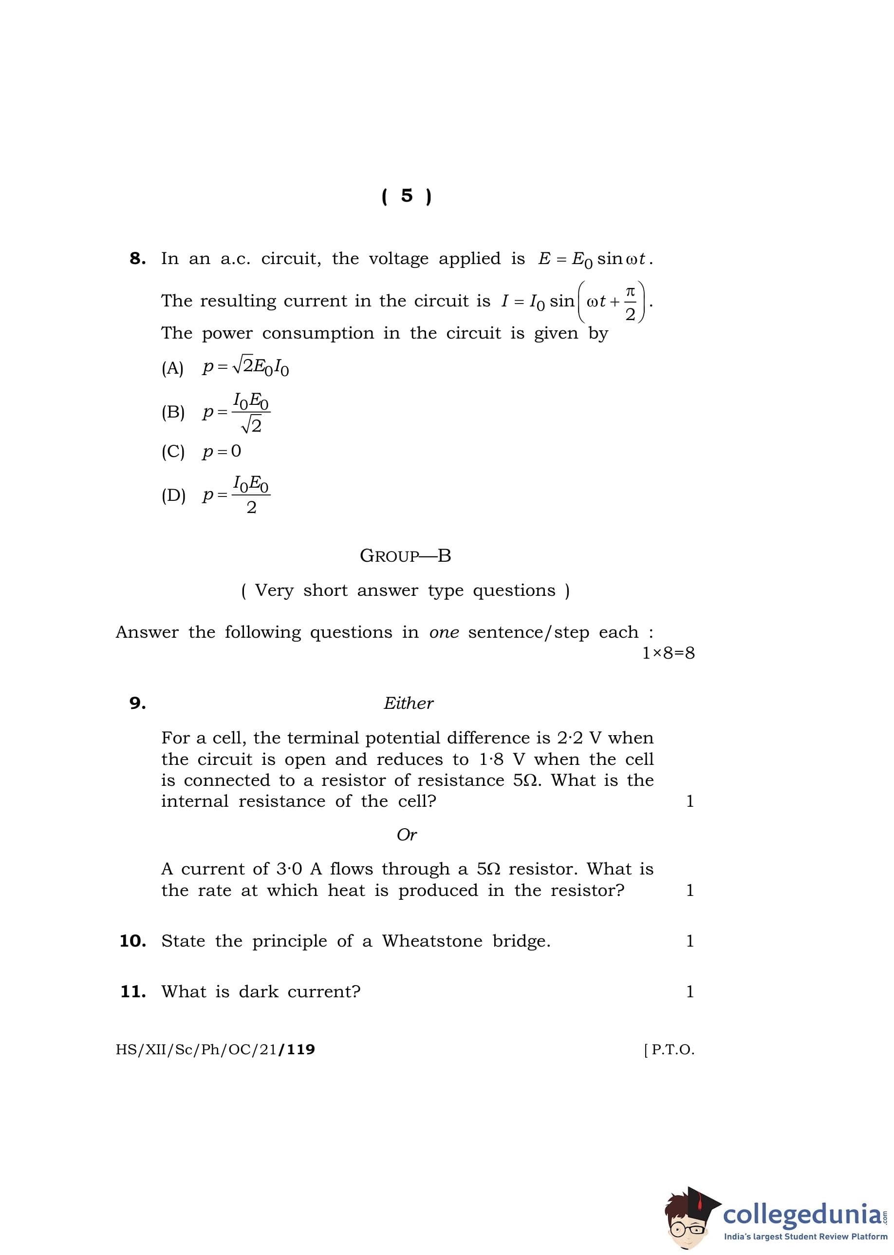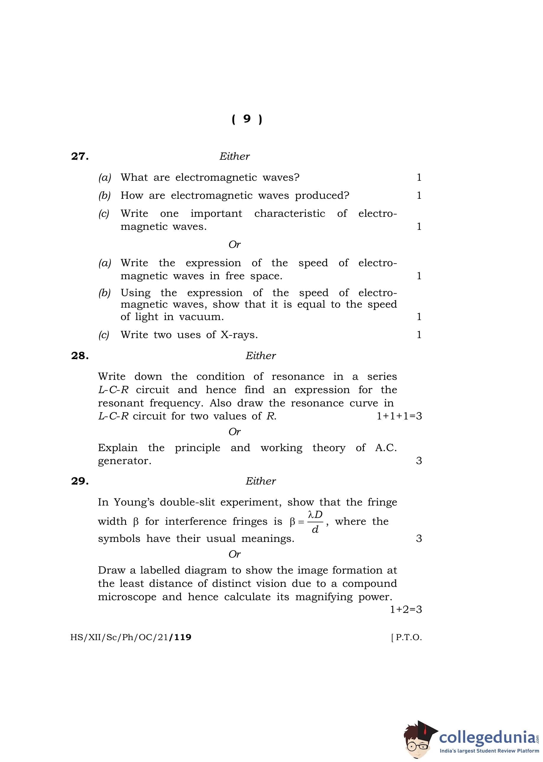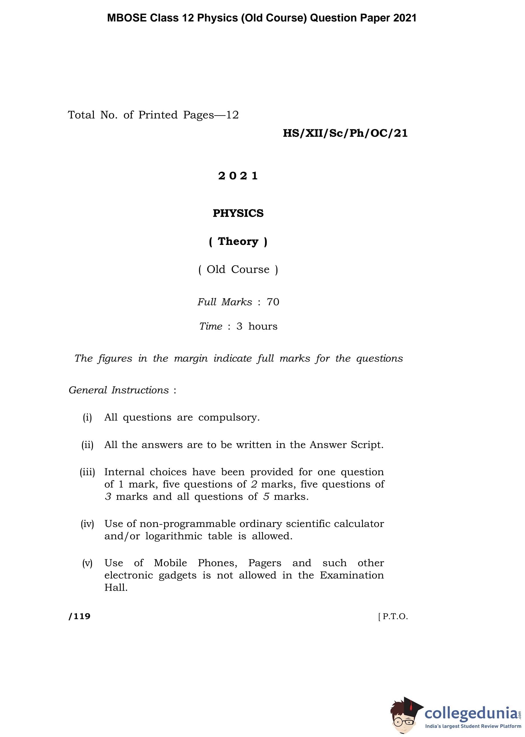 MBOSE Class 12 Physics Question Paper 2021 with Answer Key