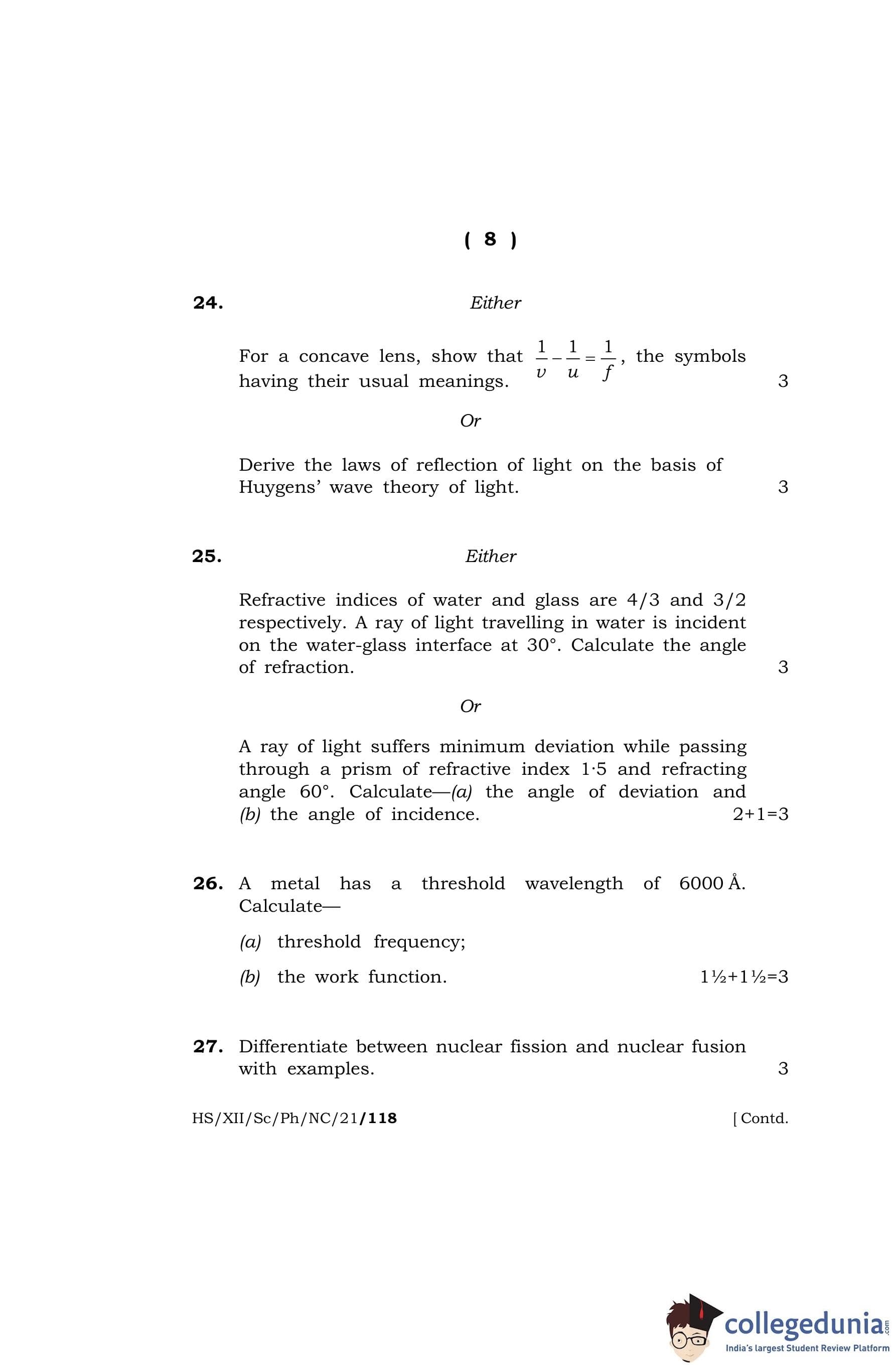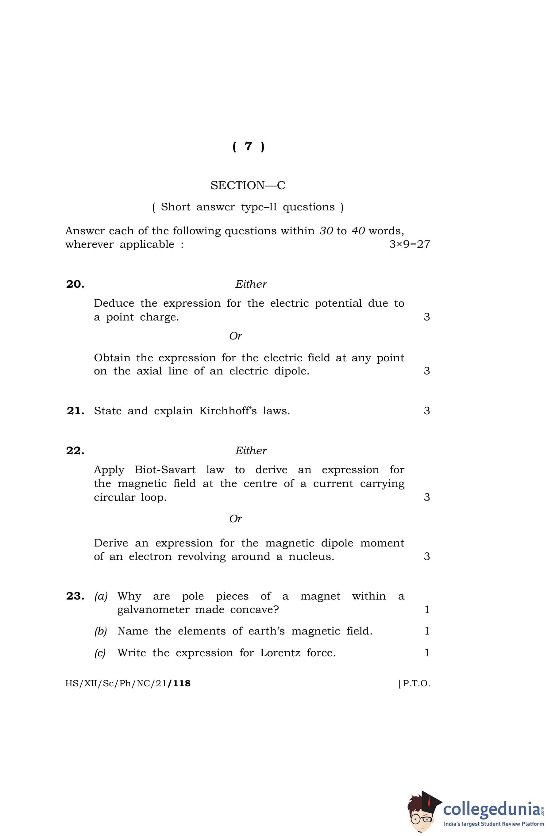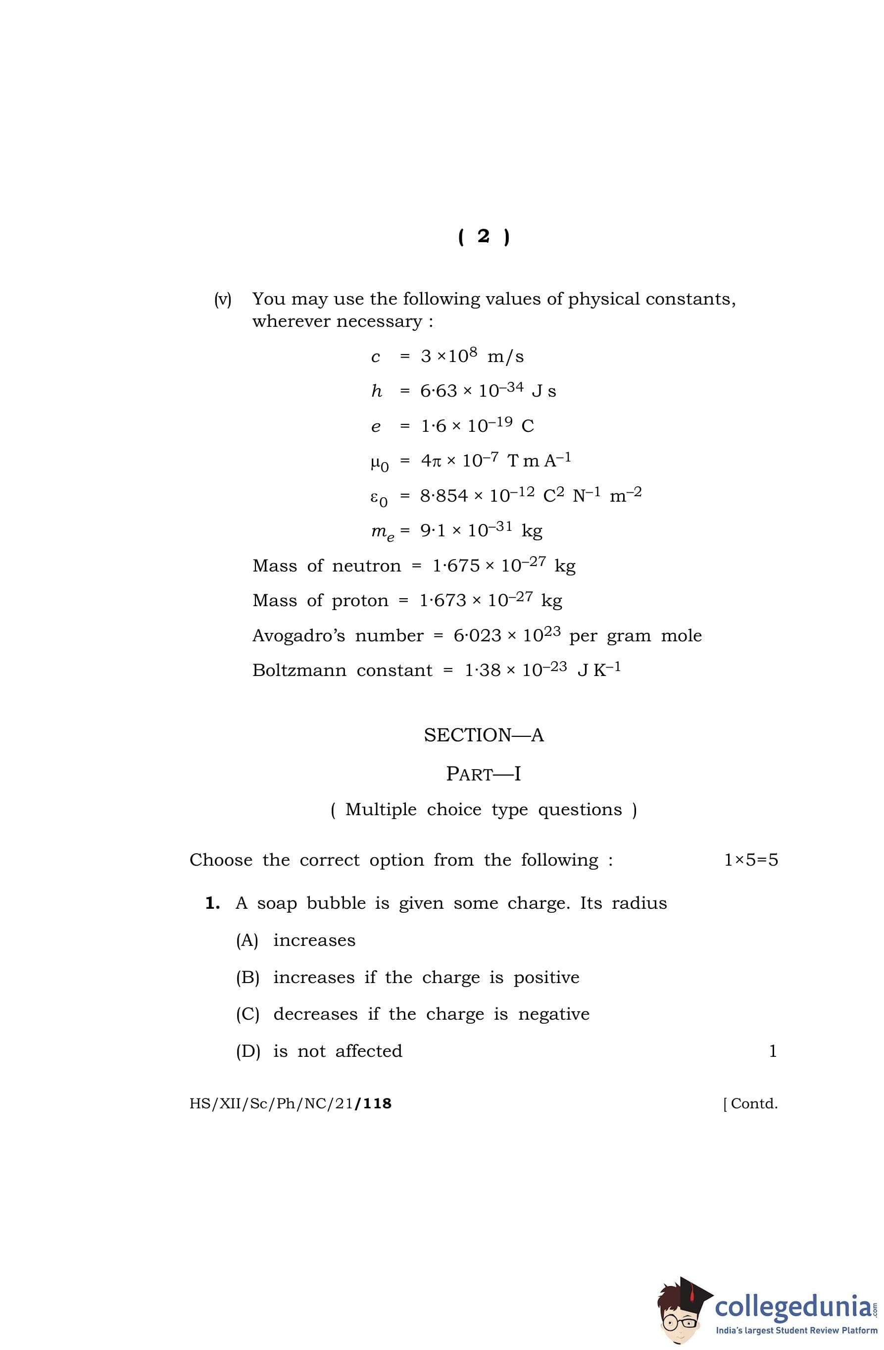 MBOSE Class 12 Physics Question Paper 2021 with Answer Key pdf is available for download here. The exam was conducted by Meghalaya Board of School Education on April 30, 2021 in the Morning Session 10 AM to 1 PM. The question paper comprised a total of 31 questions divided among 4 sections.