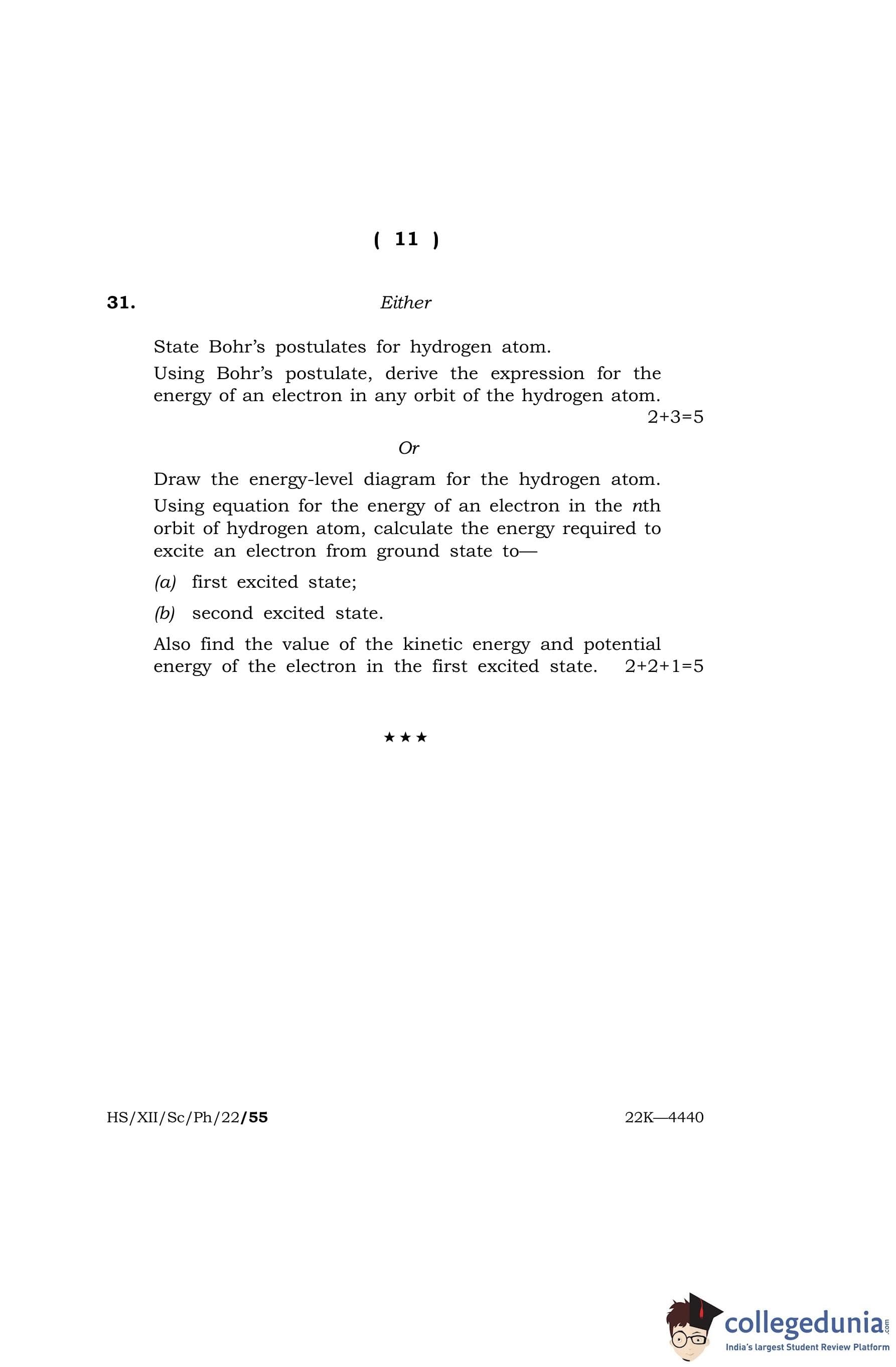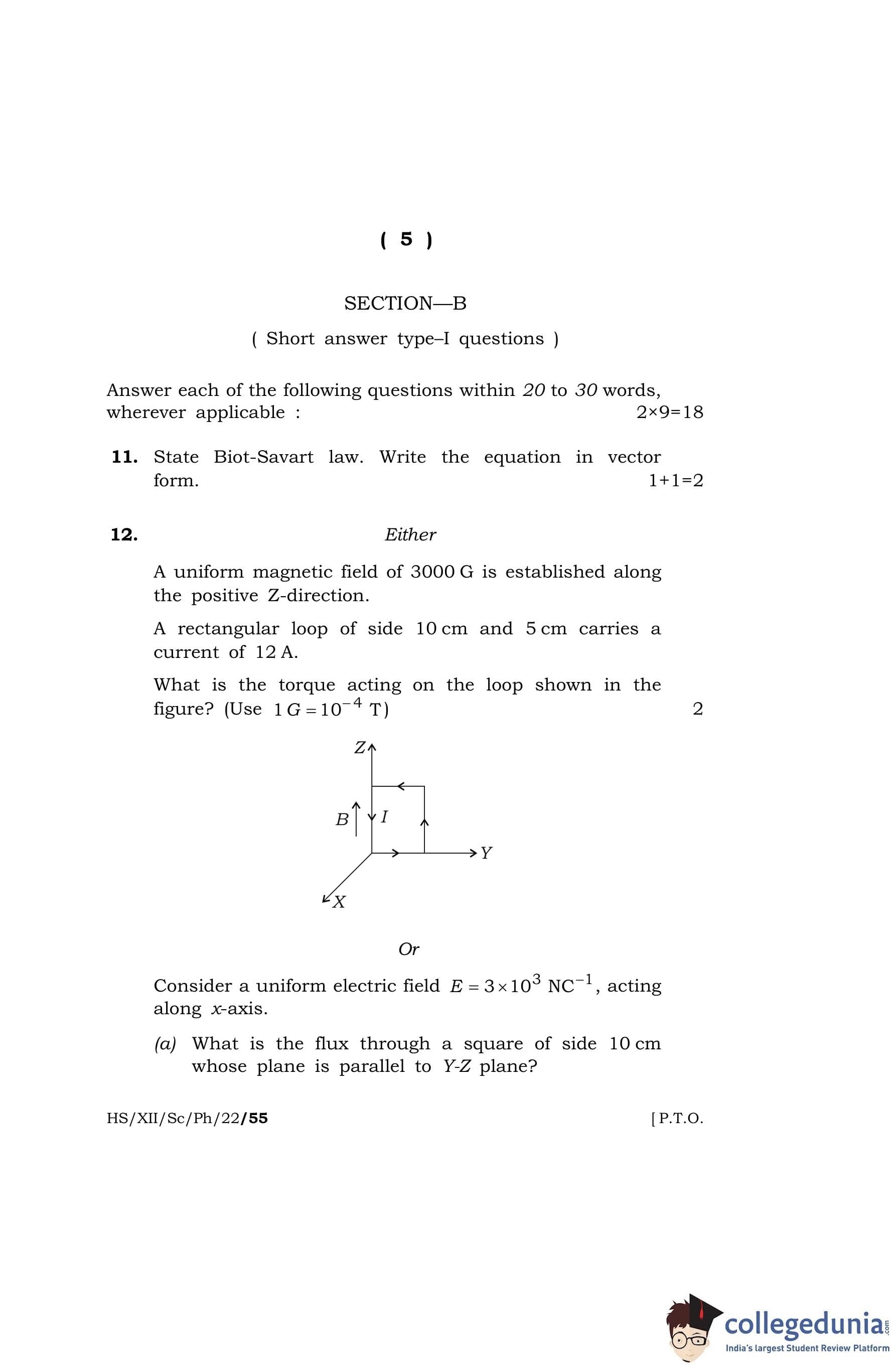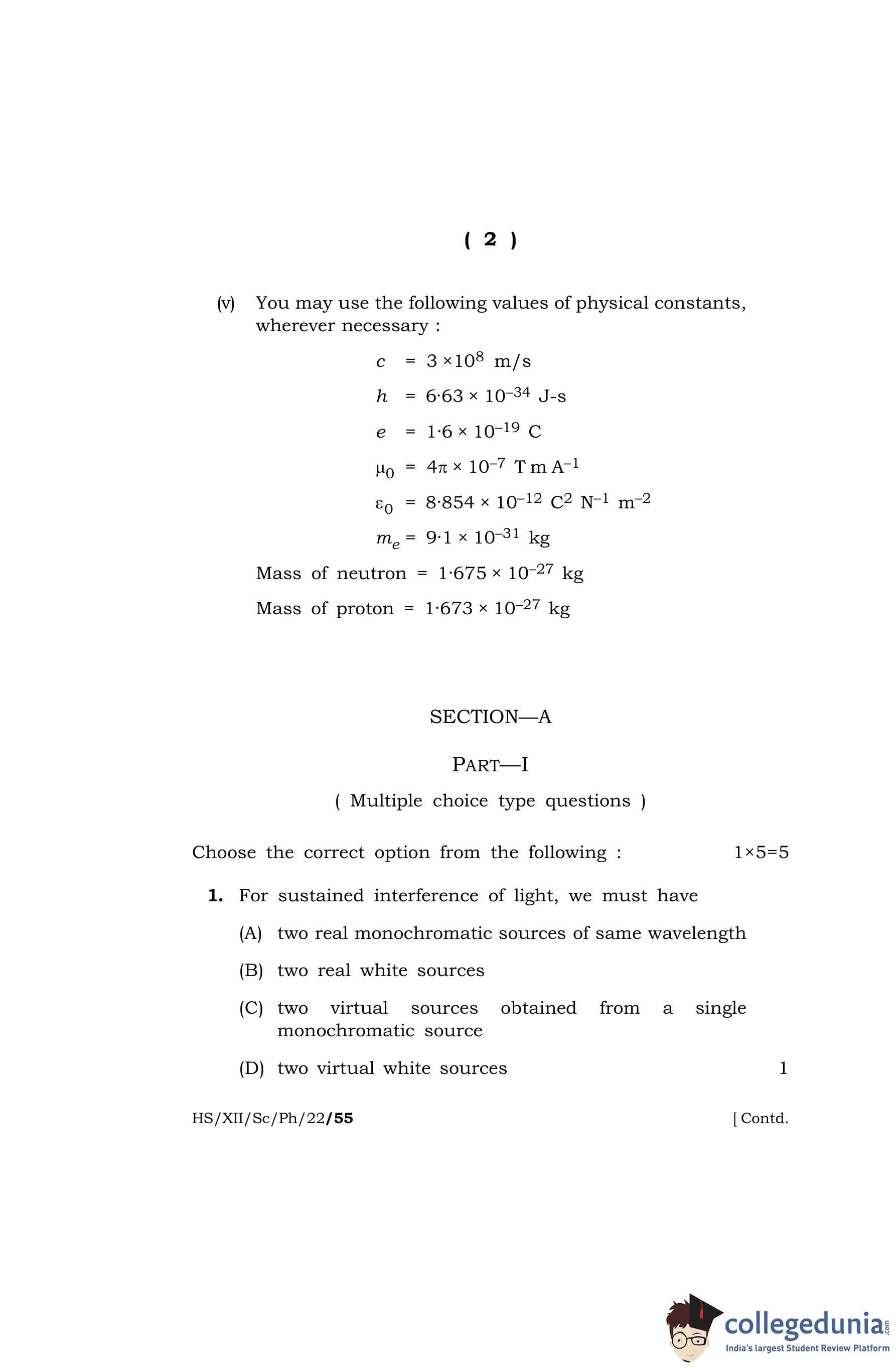 MBOSE Class 12 Physics Question Paper 2022 with Answer Key pdf is available for download here. The exam was conducted by Meghalaya Board of School Education on March 28, 2022 in the Morning Session 10 AM to 1 PM. The question paper comprised a total of 31 questions divided among 4 sections.
