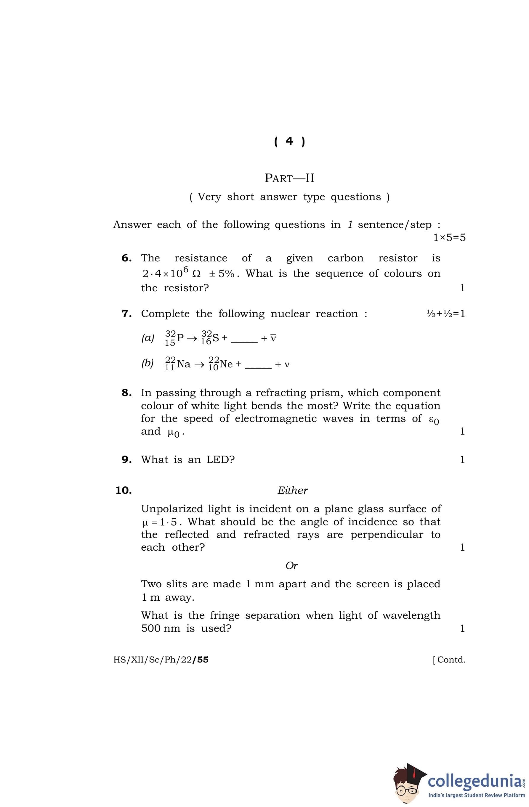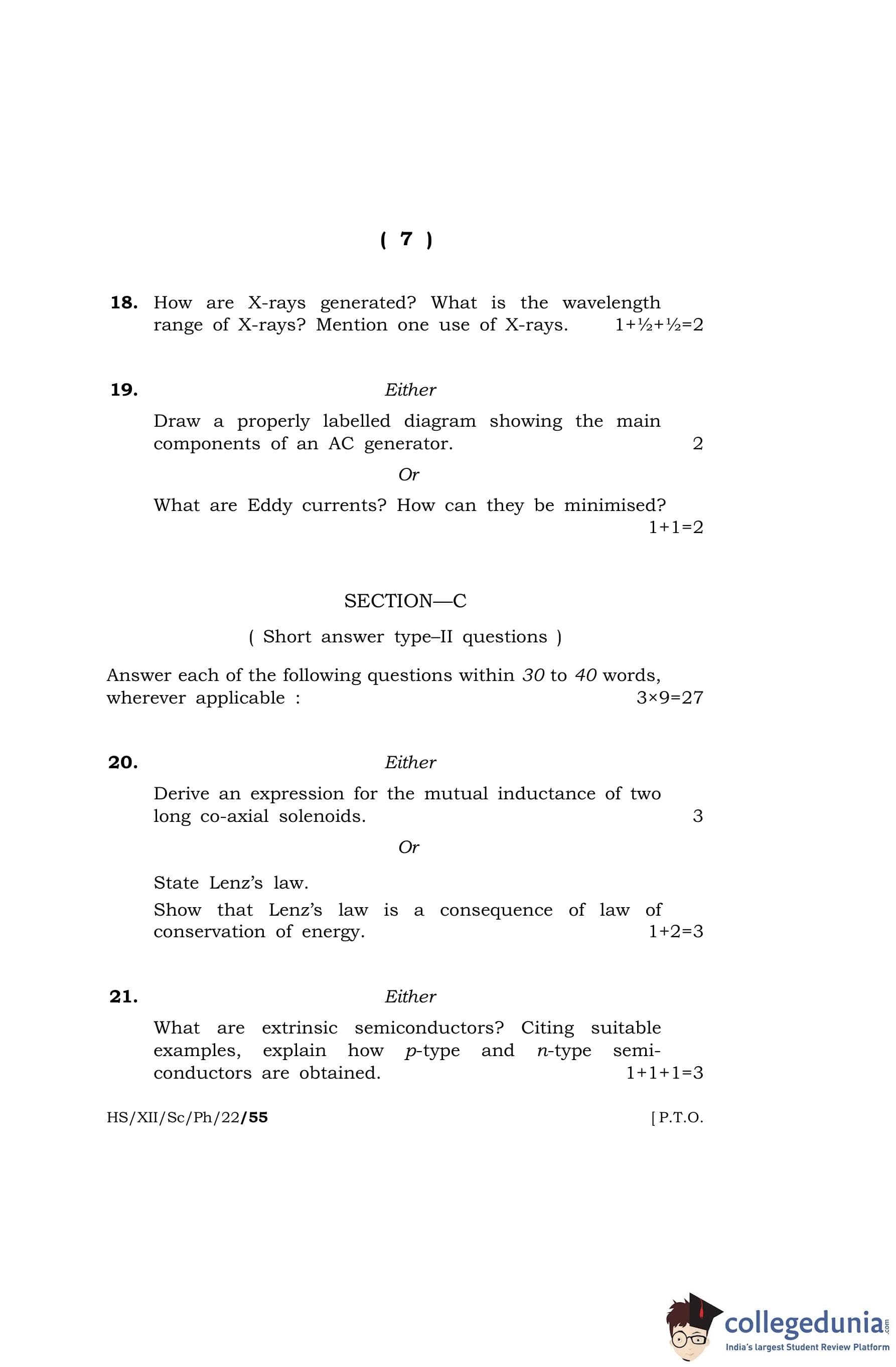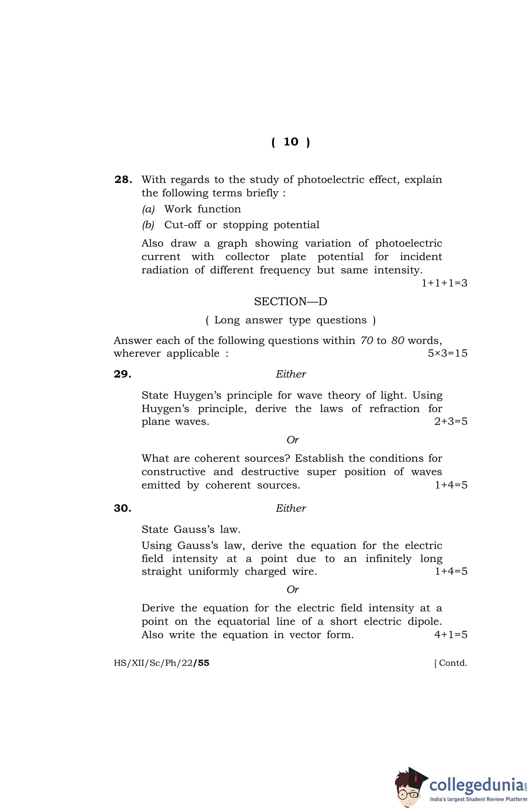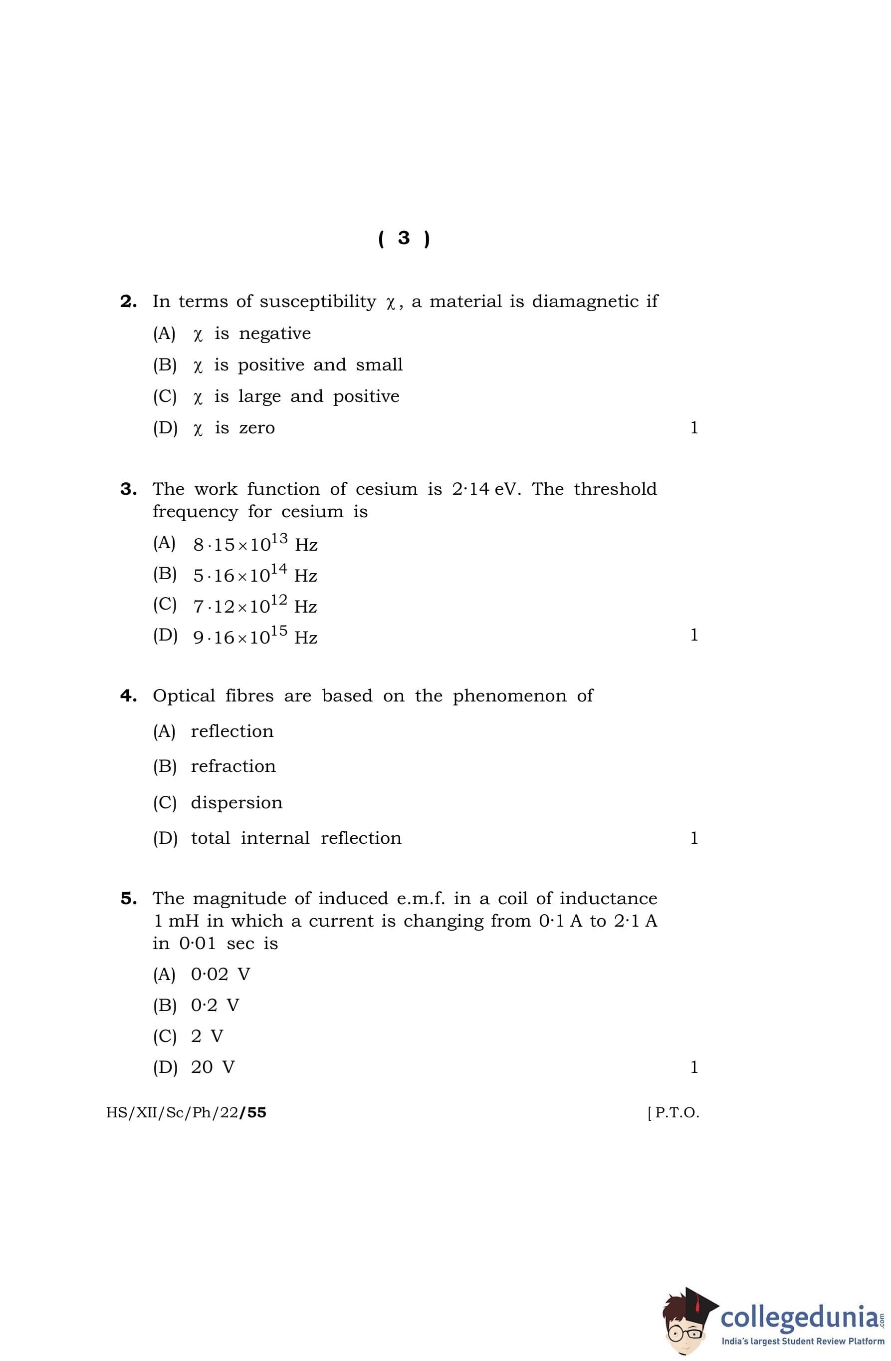 MBOSE Class 12 Physics Question Paper 2022 with Answer Key pdf is available for download here. The exam was conducted by Meghalaya Board of School Education on March 28, 2022 in the Morning Session 10 AM to 1 PM. The question paper comprised a total of 31 questions divided among 4 sections.
