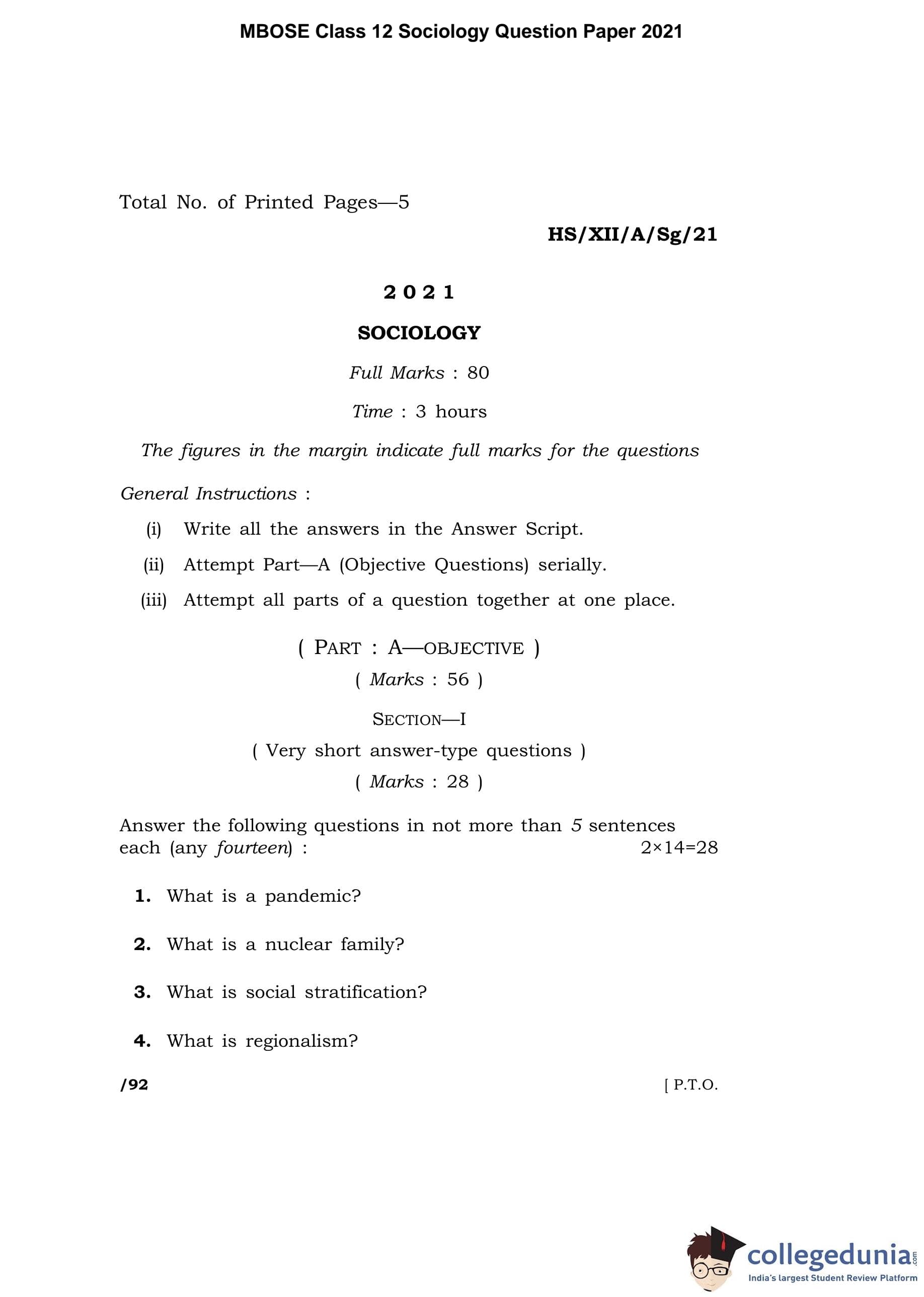 | MBOSE Class 12 Sociology Question Paper 2021 PDF | MBOSE Class 12 Sociology Answer Key 2021 PDF |