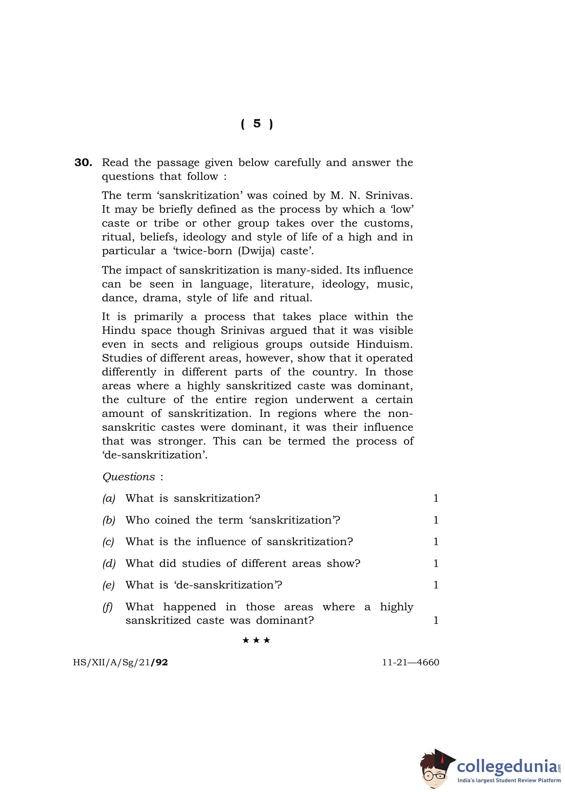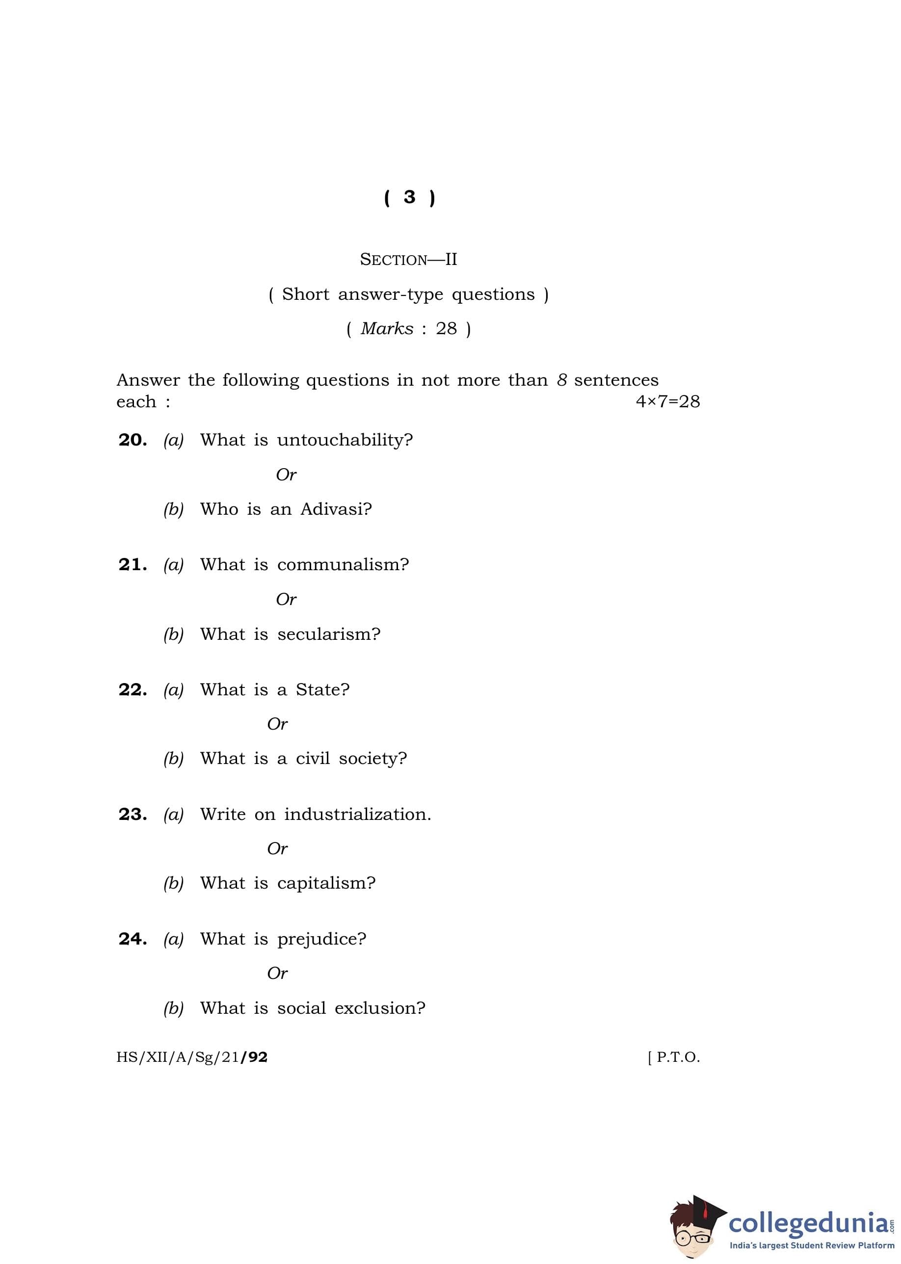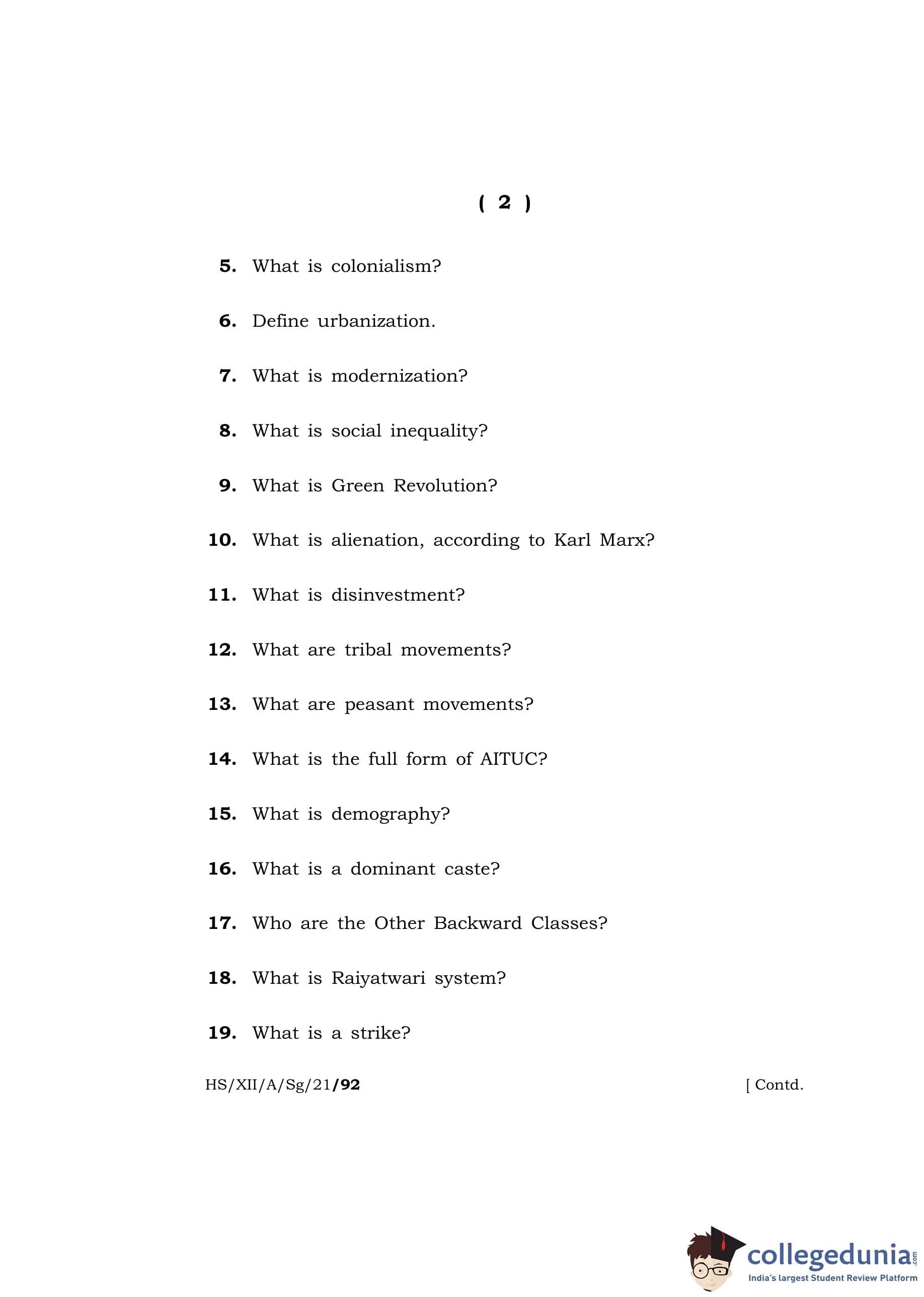 MBOSE Class 12 Sociology Question Paper 2021 with Answer Key pdf is available for download here. The exam was conducted by Meghalaya Board of School Education on April 19, 2021 in the Morning Session 10 AM to 1 PM. The question paper comprised a total of 30 questions divided among 2 sections.