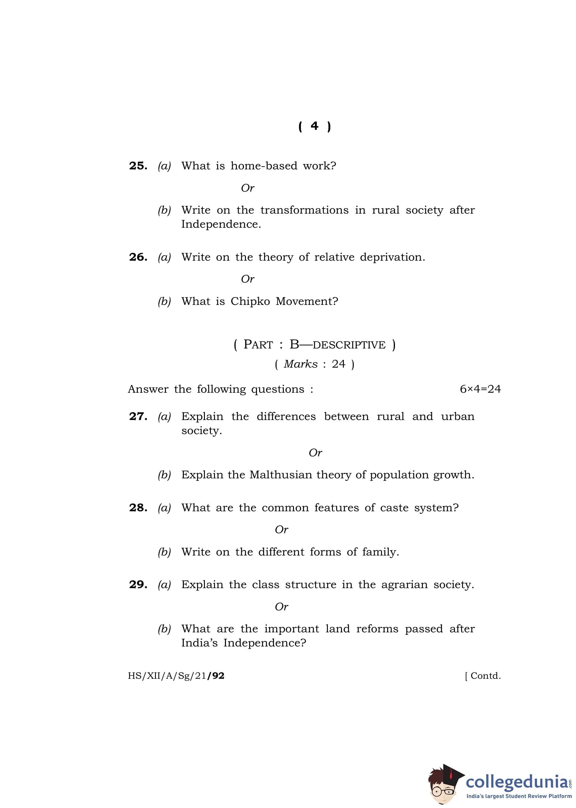 MBOSE Class 12 Sociology Question Paper 2021 with Answer Key