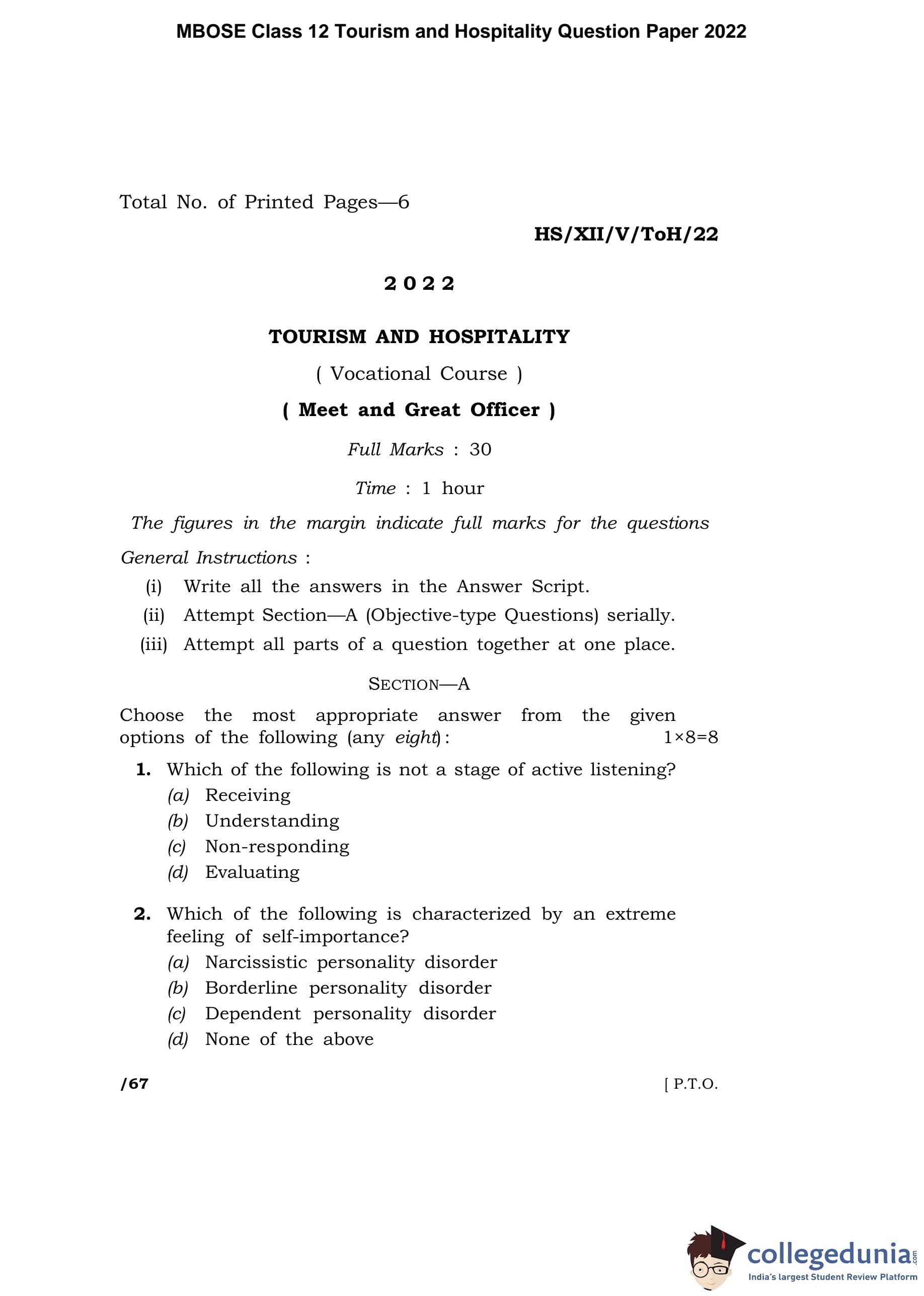 | MBOSE Class 12 Tourism and Hospitality Question Paper 2022 PDF | MBOSE Class 12 Tourism and Hospitality Answer Key 2022 PDF |
