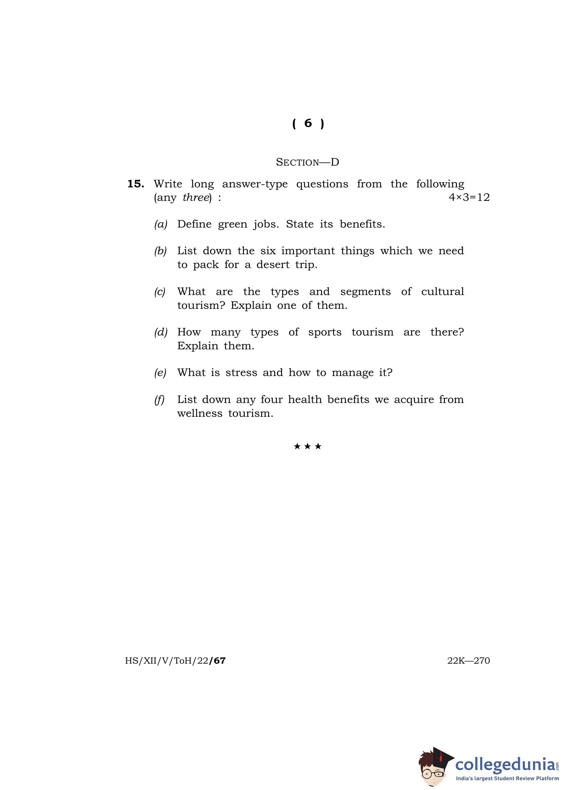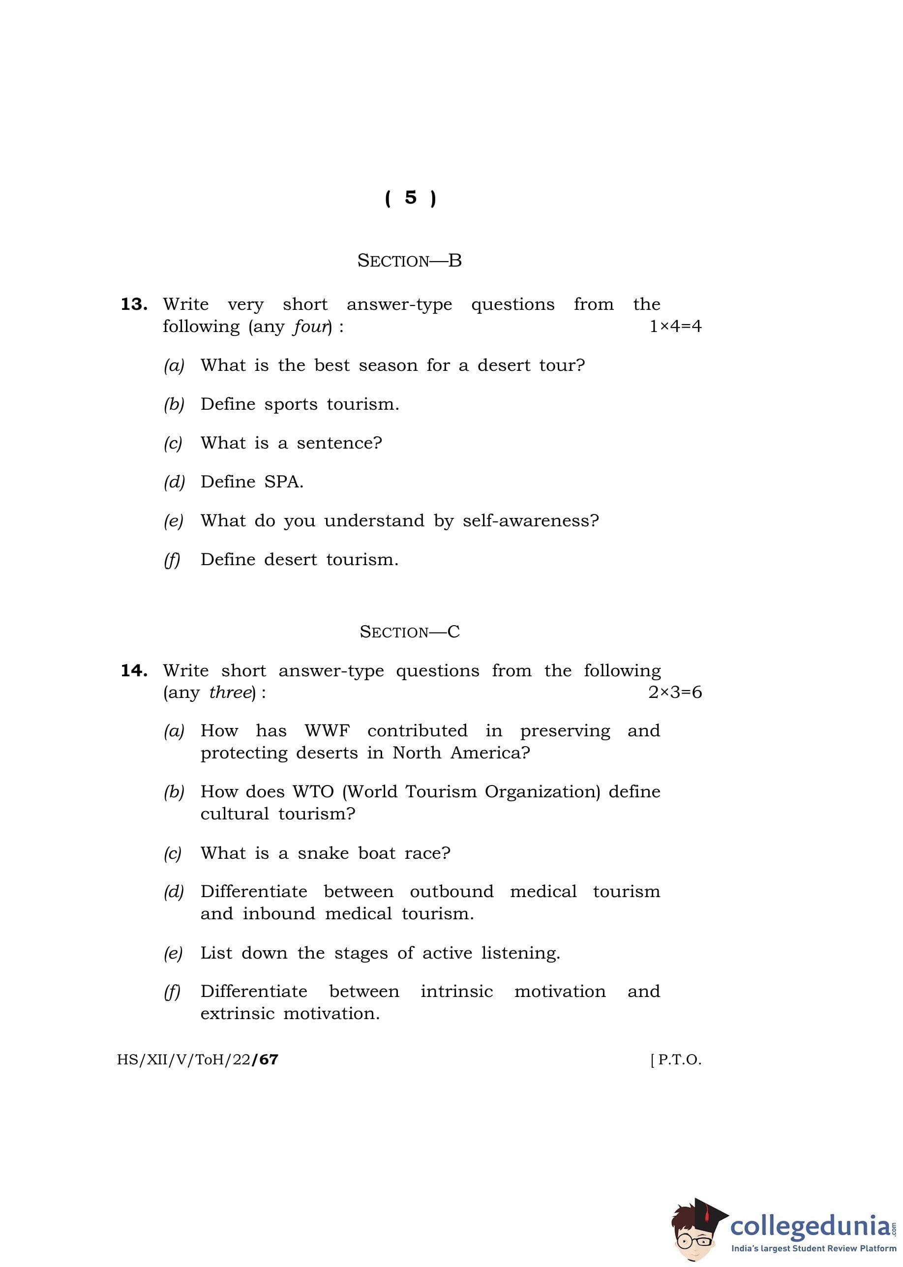 MBOSE Class 12 Tourism and Hospitality Question Paper 2022 with Answer Key pdf is available for download here. The exam was conducted by Meghalaya Board of School Education on April 14, 2022 in the Morning Session 10 AM to 11 AM. The question paper comprised a total of 15 questions divided among 4 sections.