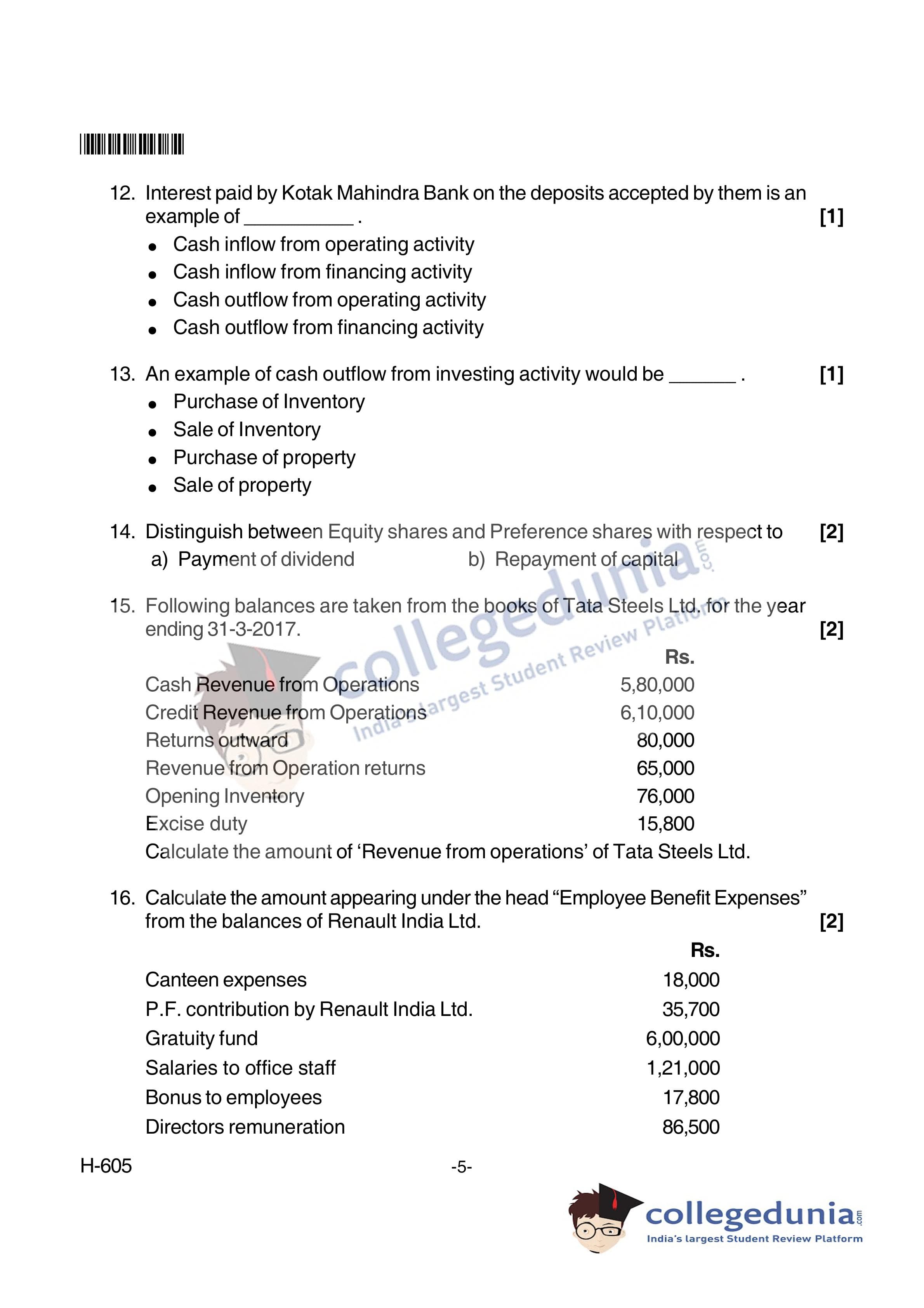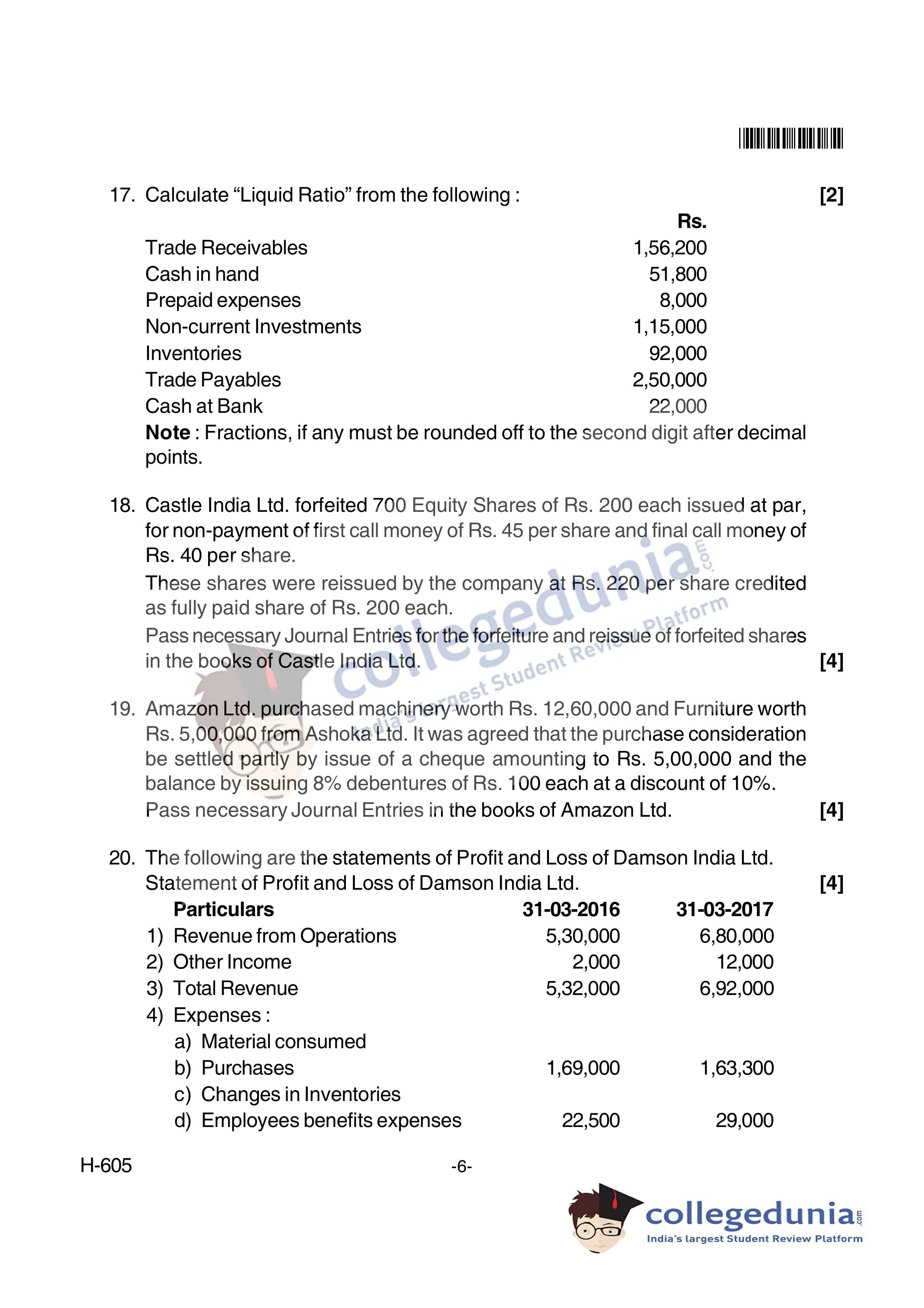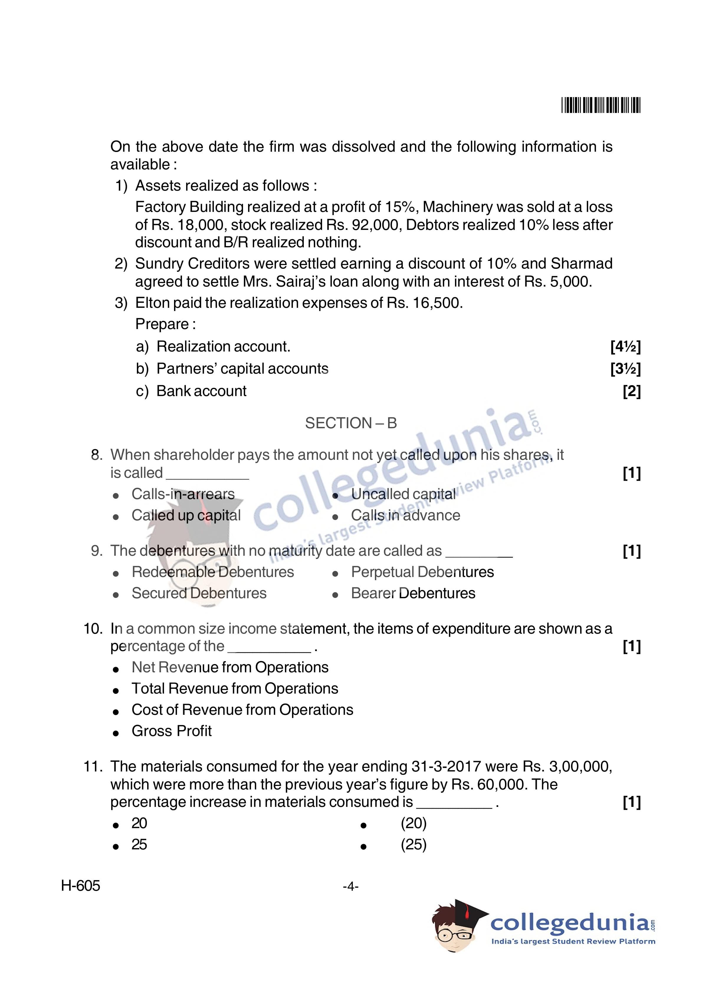 Goa Board HSSC Accountancy (New Pattern) Supplementary Question Paper 2018 with Answer Key (June 8)