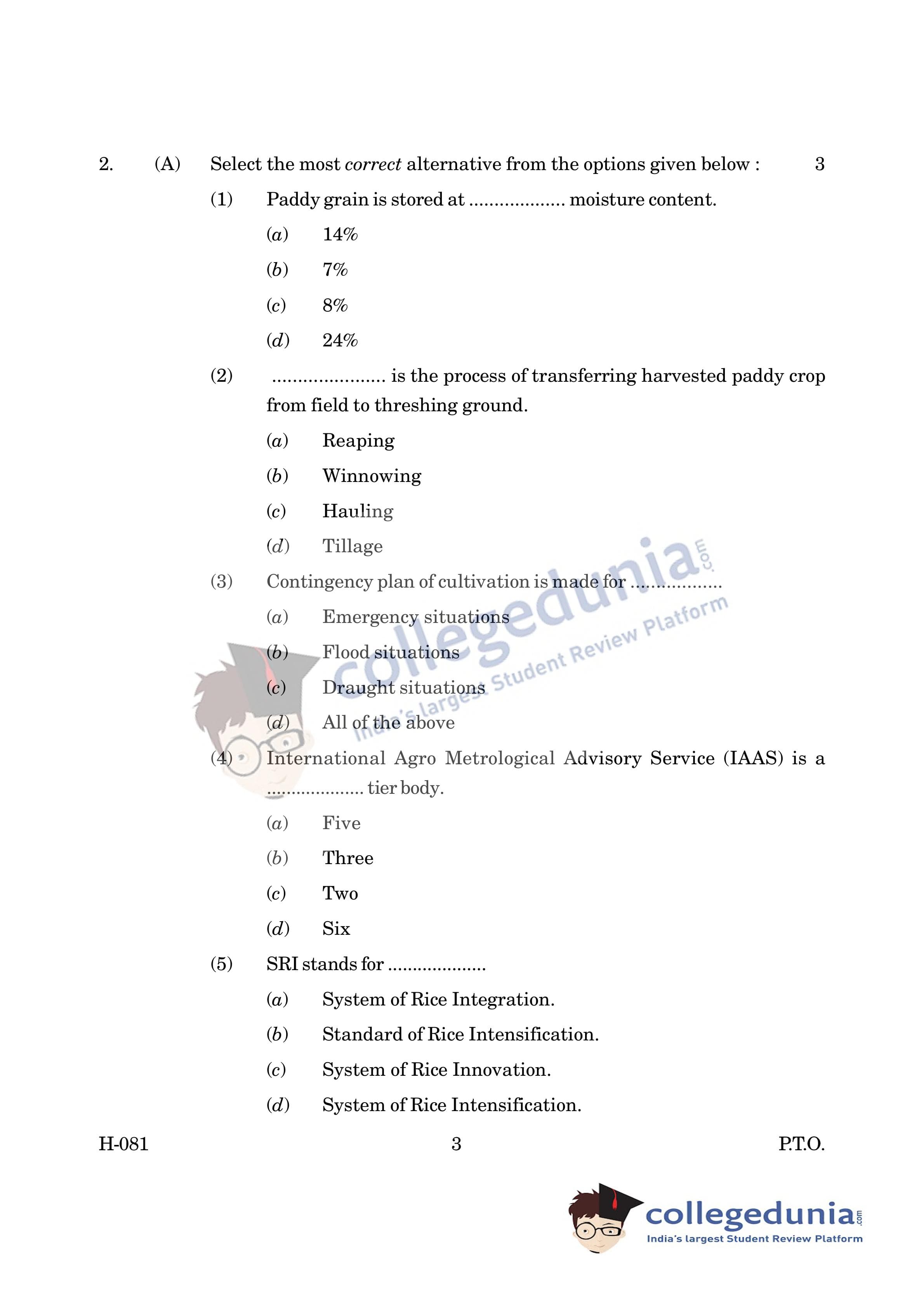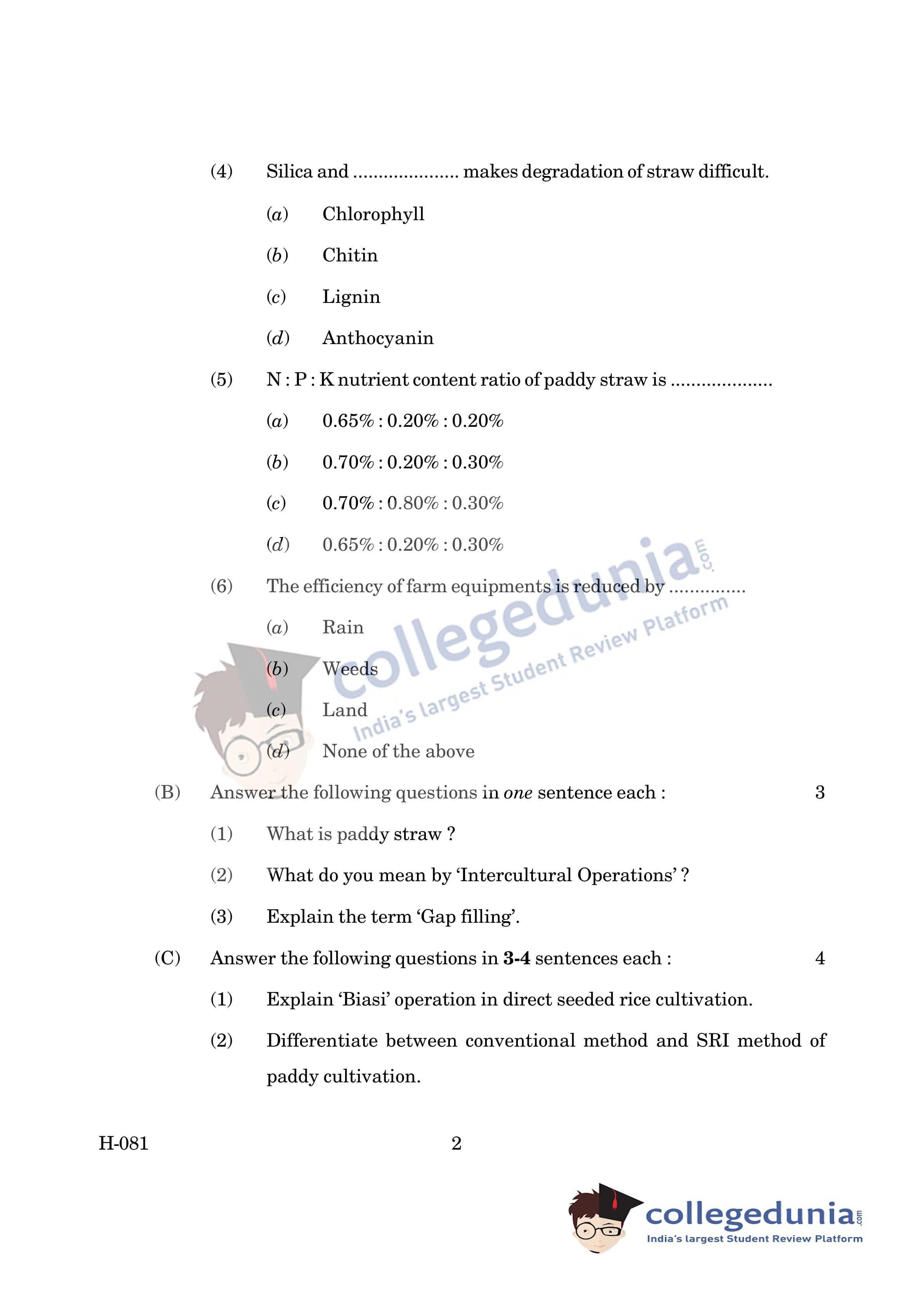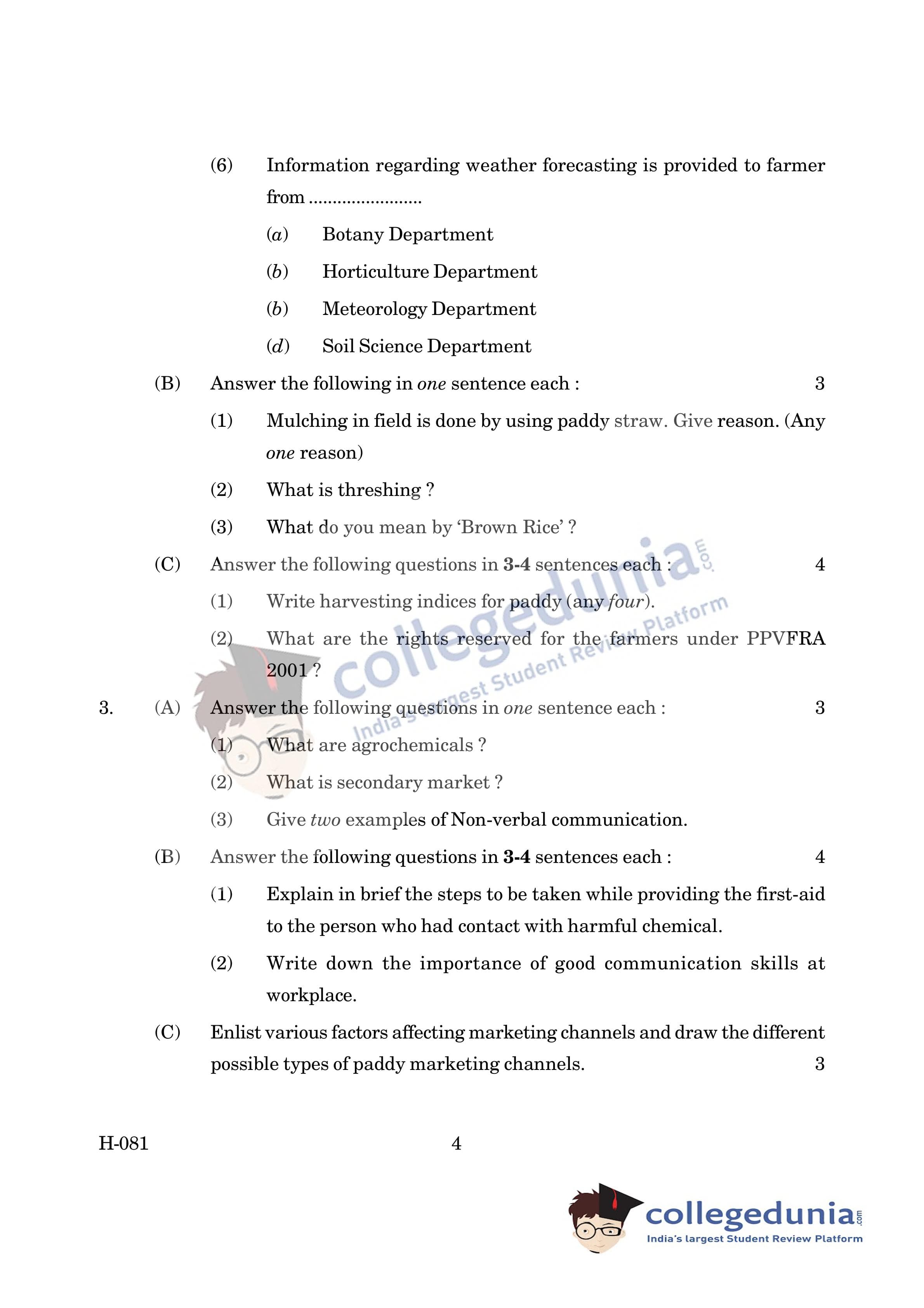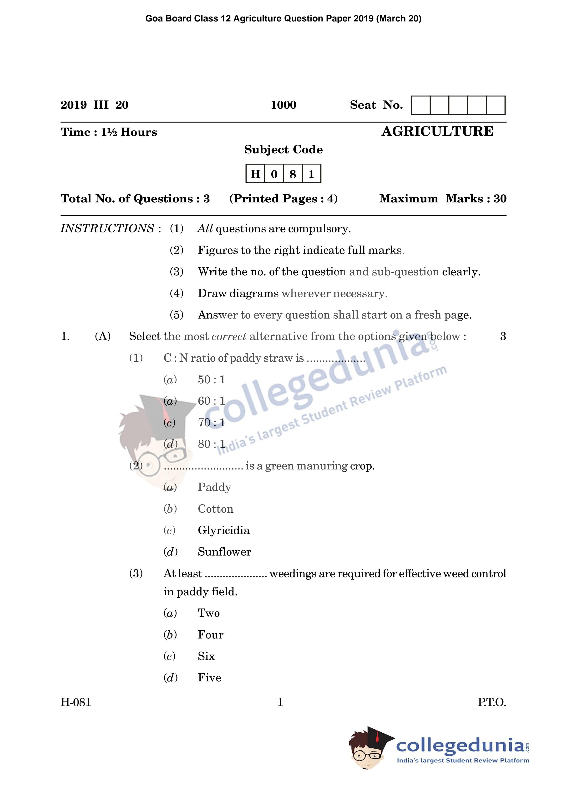 Goa Board HSSC Agriculture Question Paper 2019 with Answer Key (March 20)