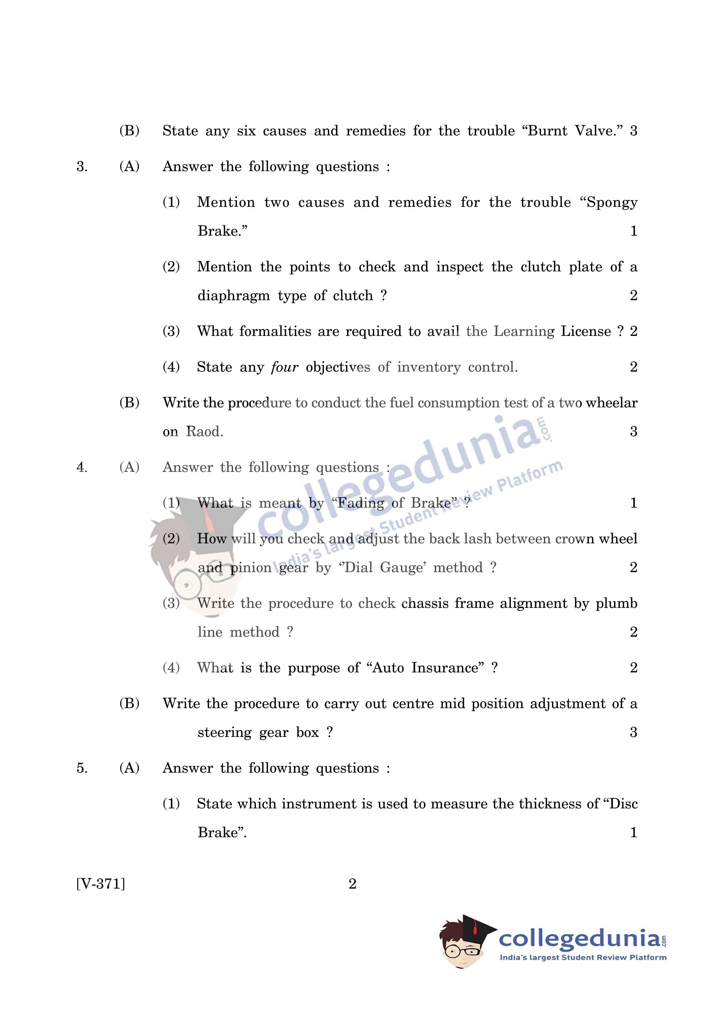 Goa Board HSSC Auto Servicing & Garage Management Supplementary Question Paper 2019 with Answer Key (June 12)
