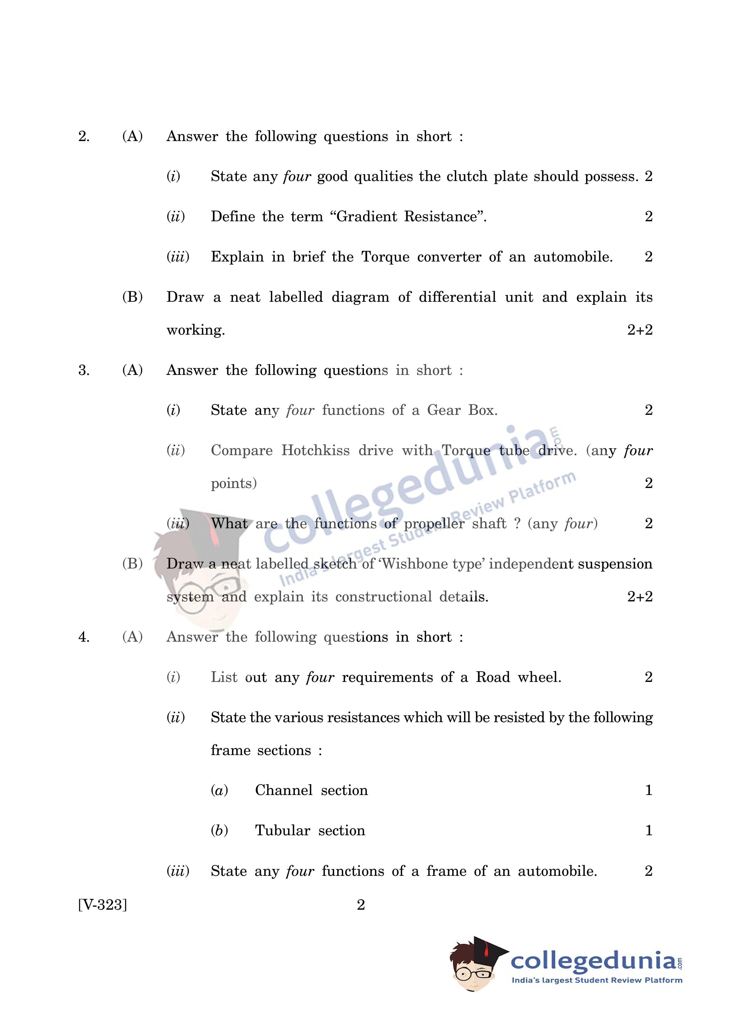 Goa Board HSSC Auto - Transmission Question Paper 2019 with Answer Key (March 5)