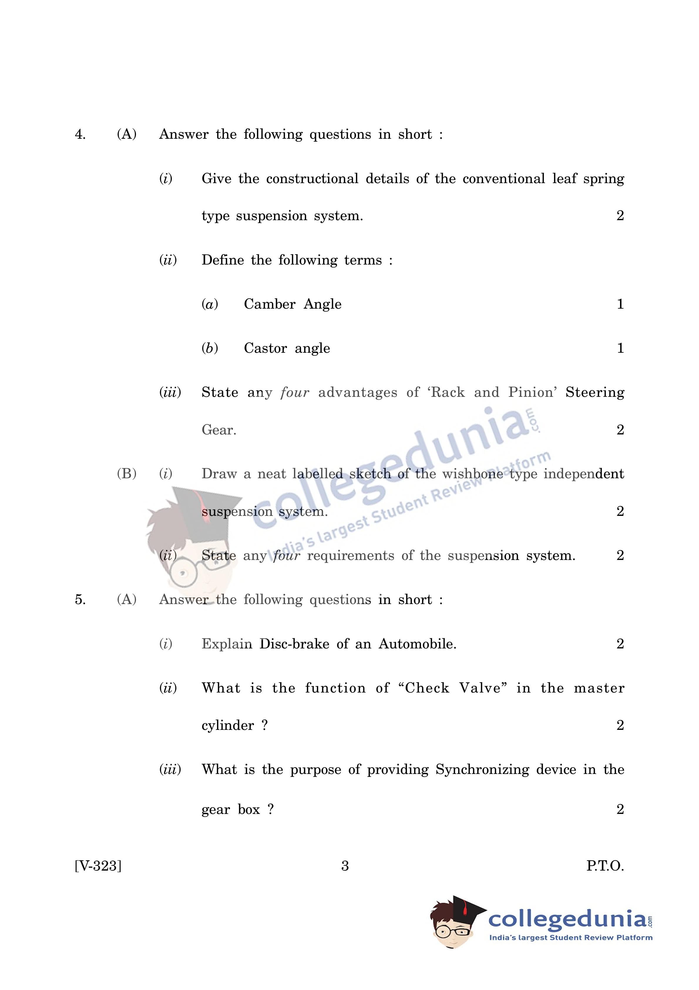 Goa Board HSSC Auto - Transmission Supplementary Question Paper 2019 with Answer Key (June 7)