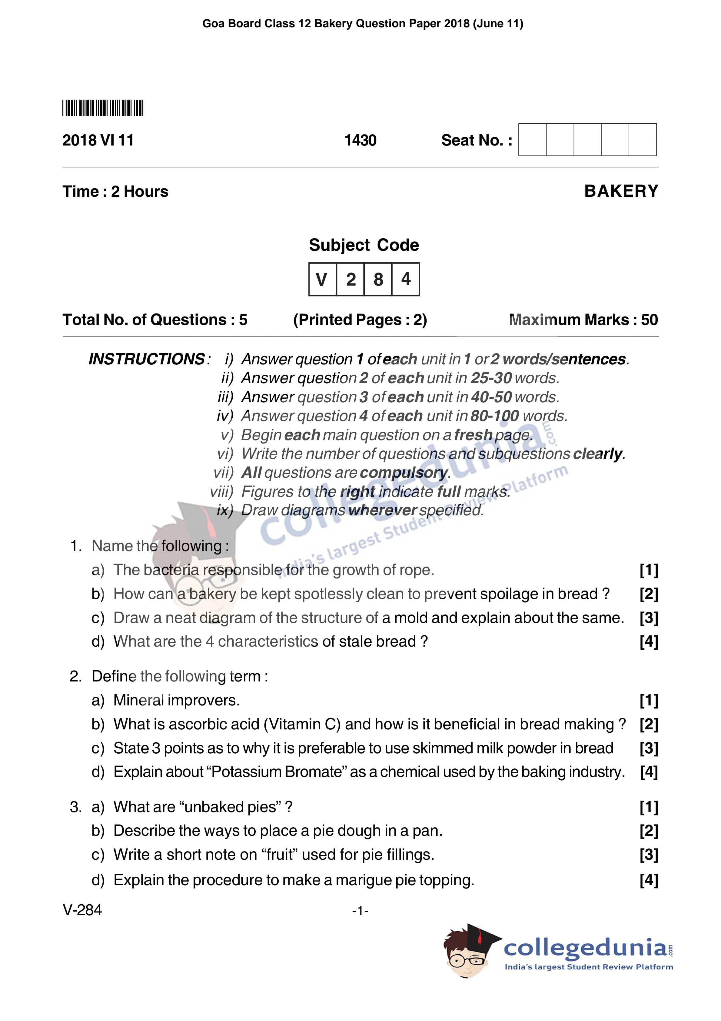 | Goa Board HSSC Bakery Question Paper 2018 PDF | Goa Board HSSC Bakery Answer Key 2018 PDF |