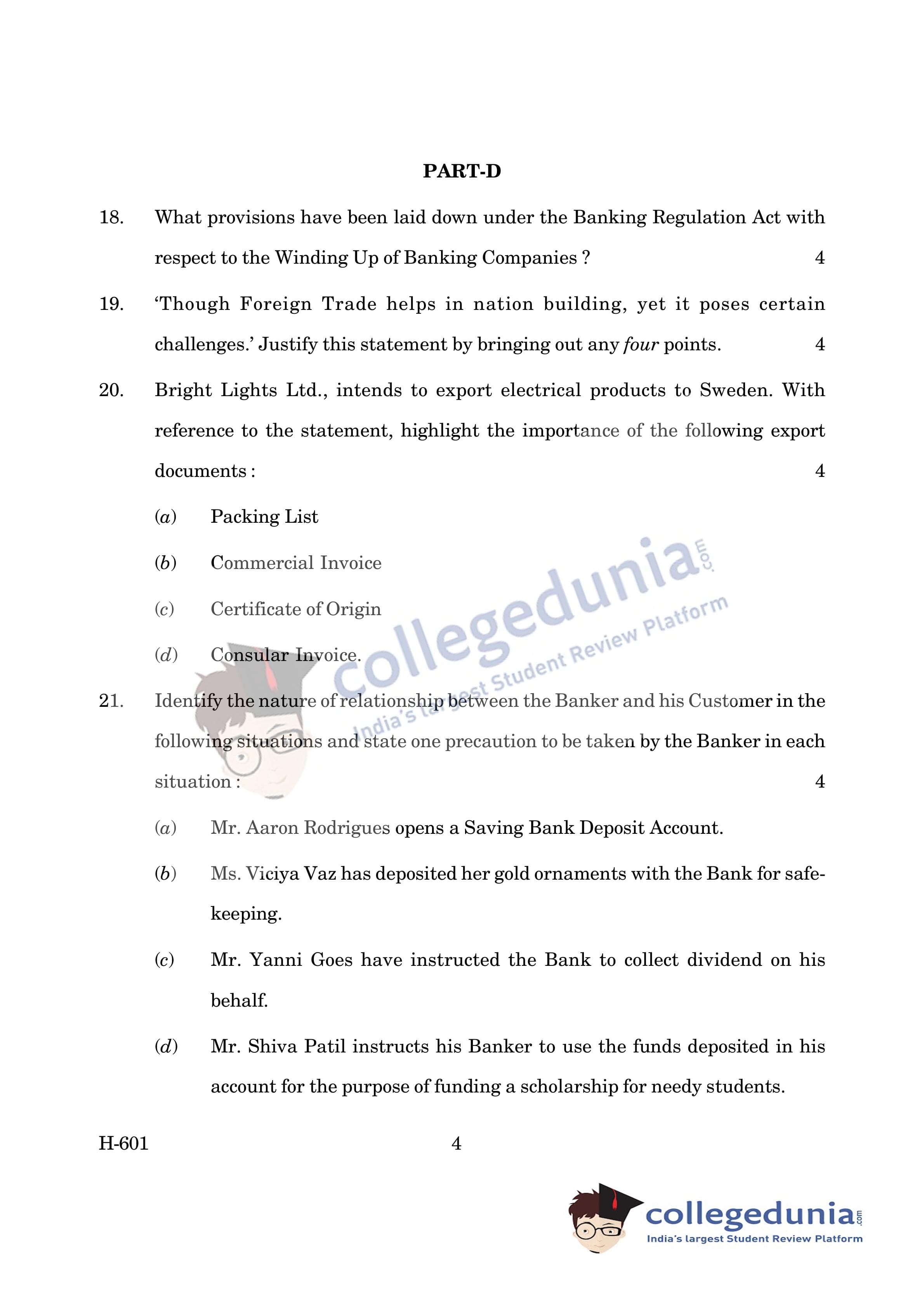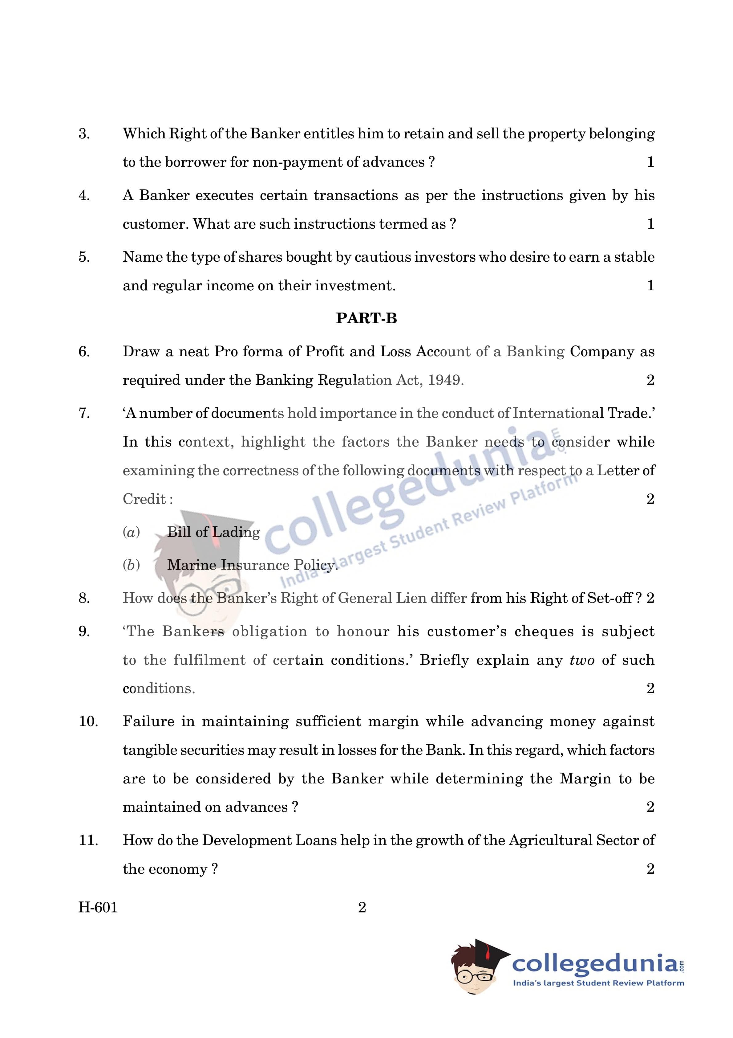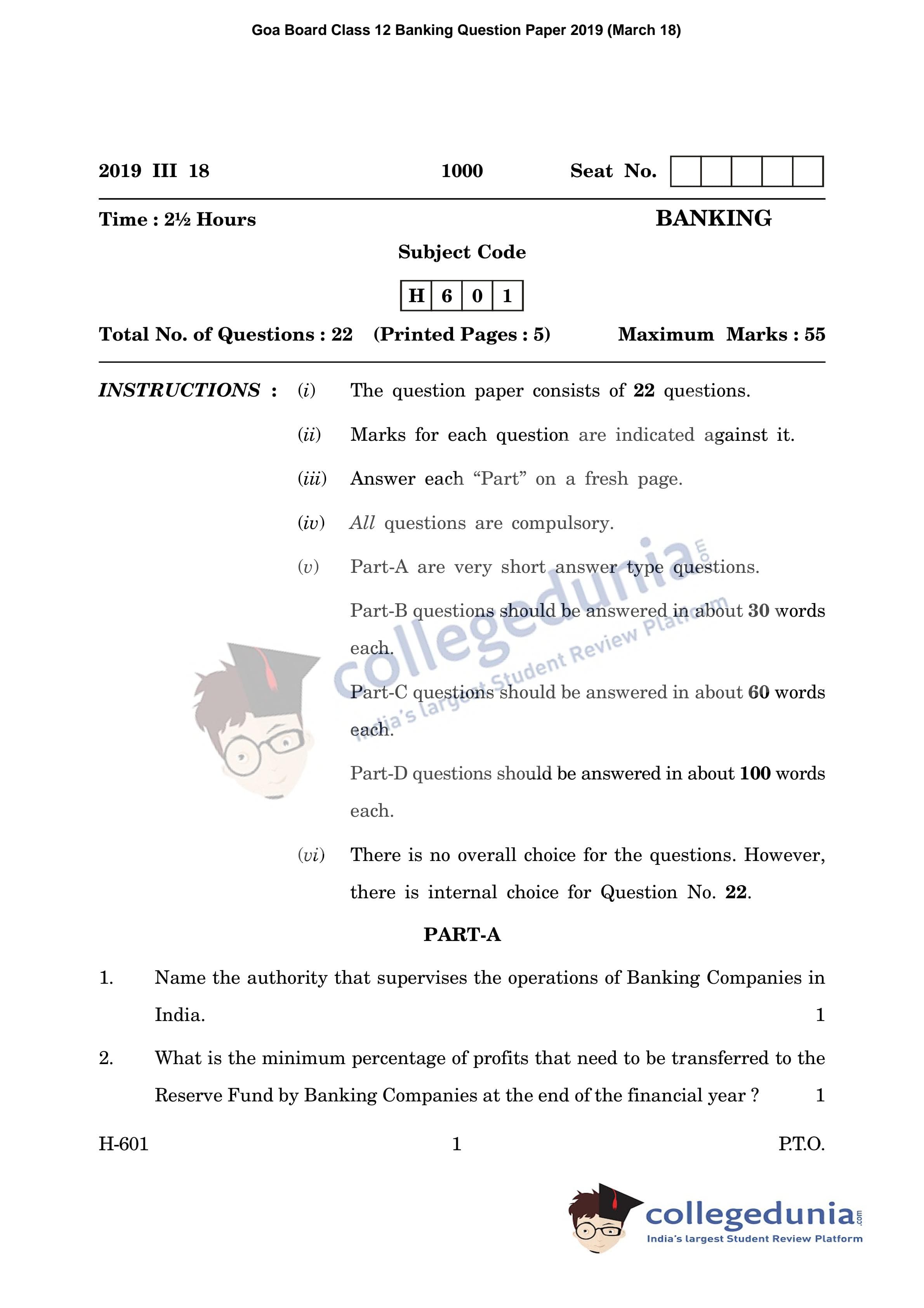 Goa Board HSSC Banking Question Paper 2019 with Answer Key (March 18)