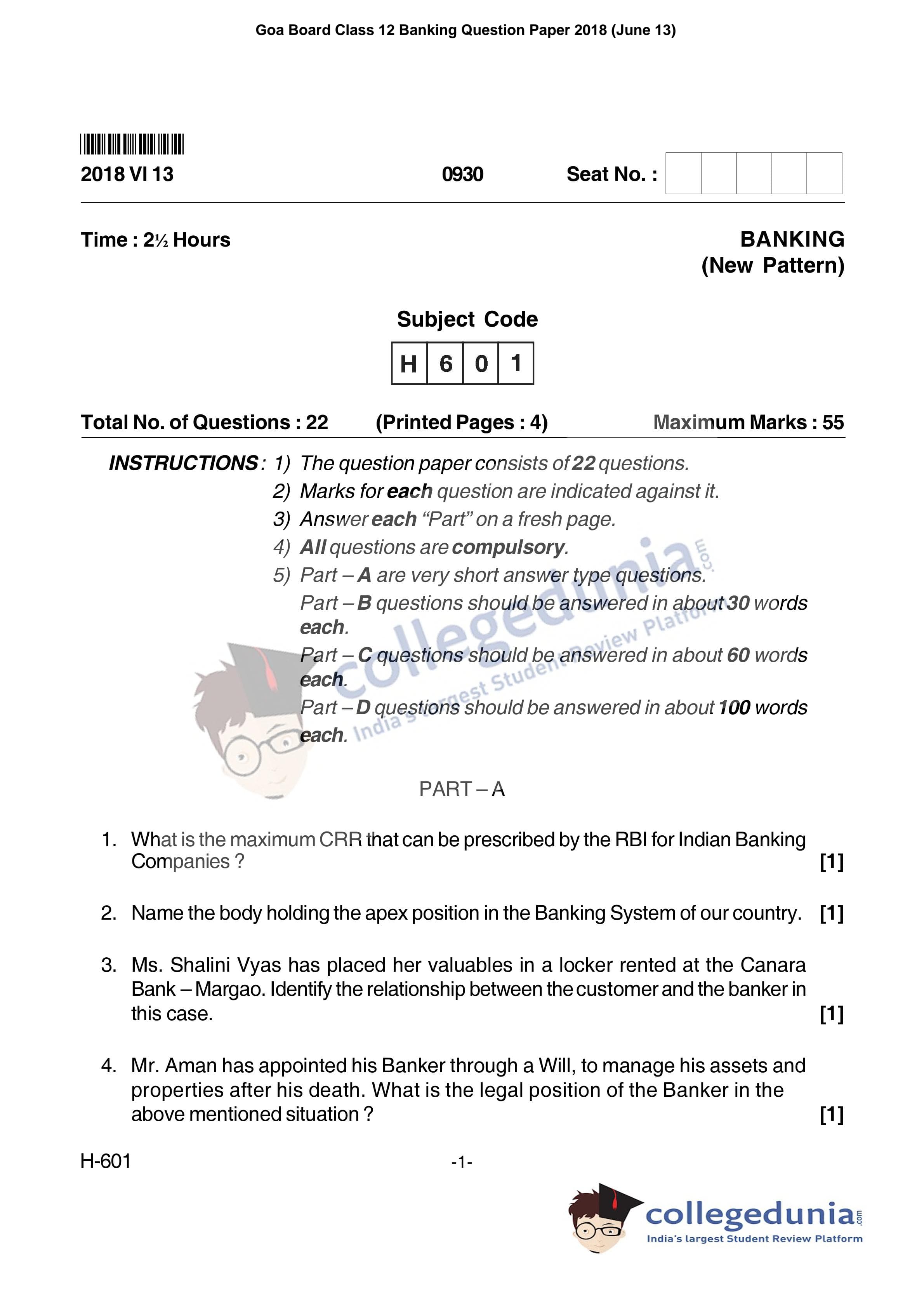 | Goa Board HSSC Banking Question Paper 2018 PDF | Goa Board HSSC Banking Answer Key 2018 PDF |