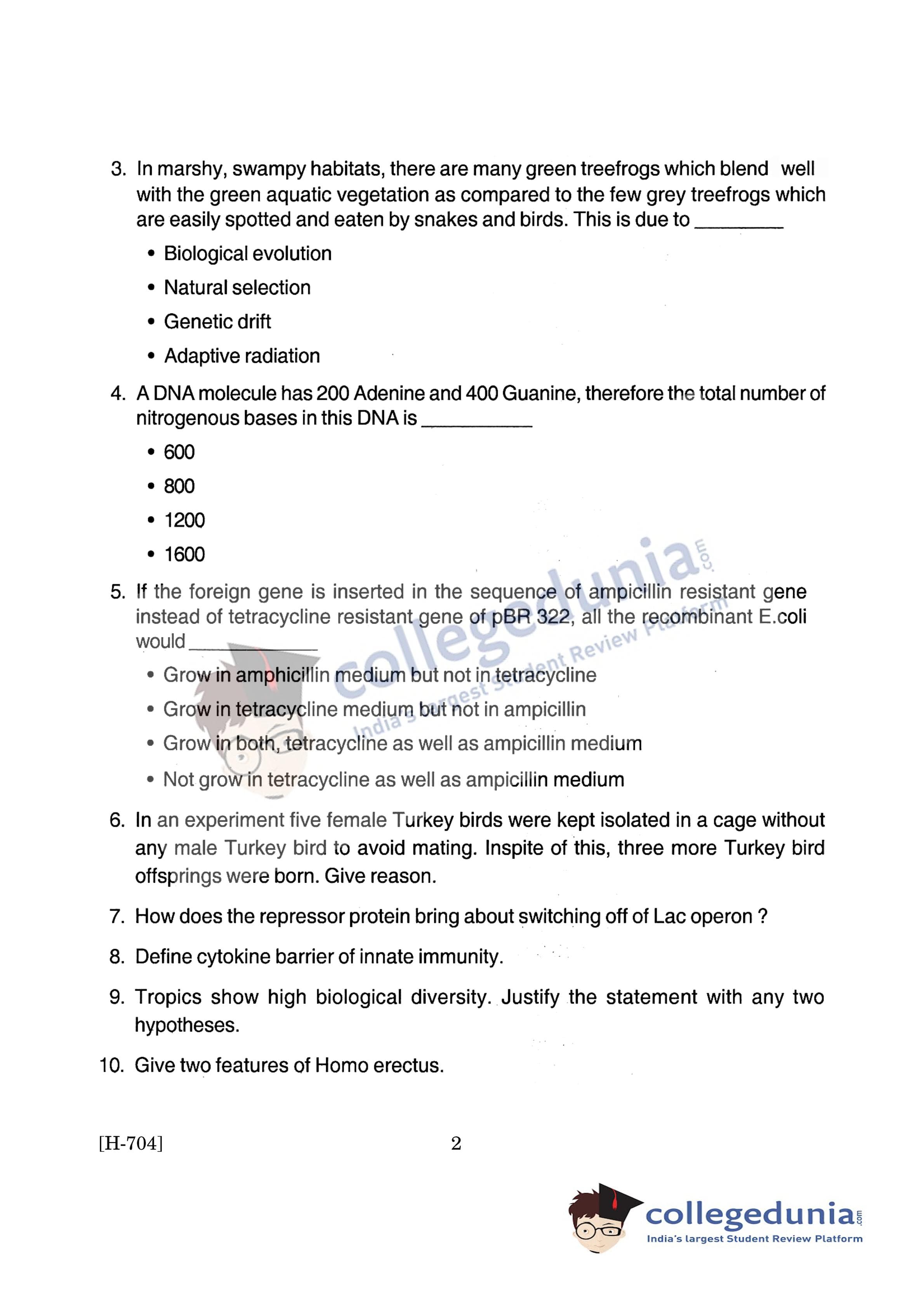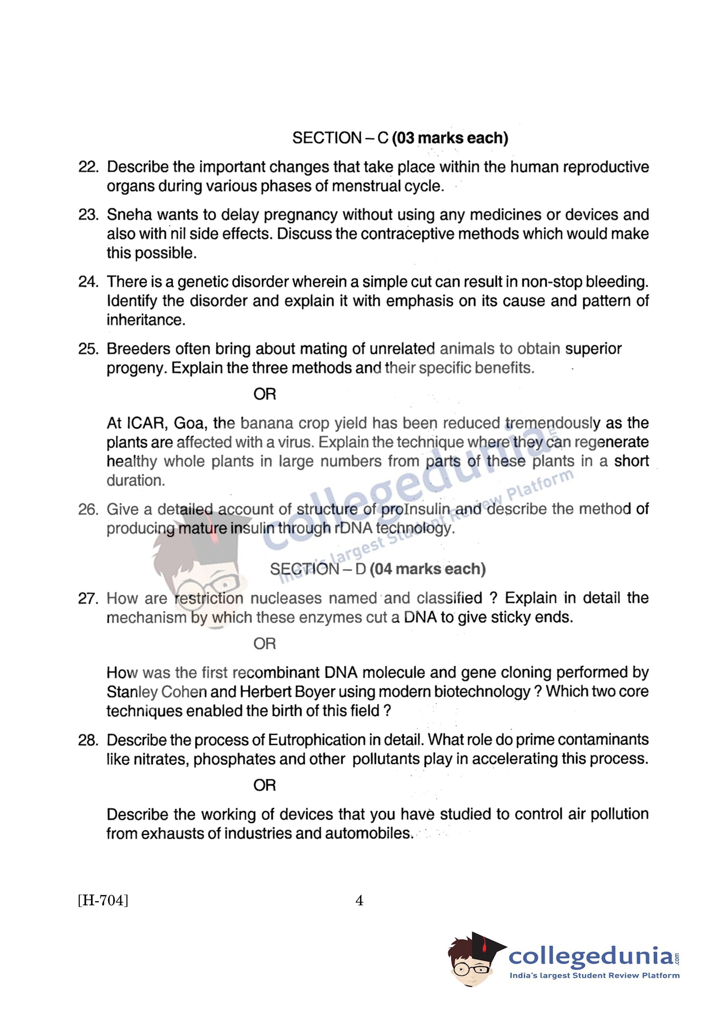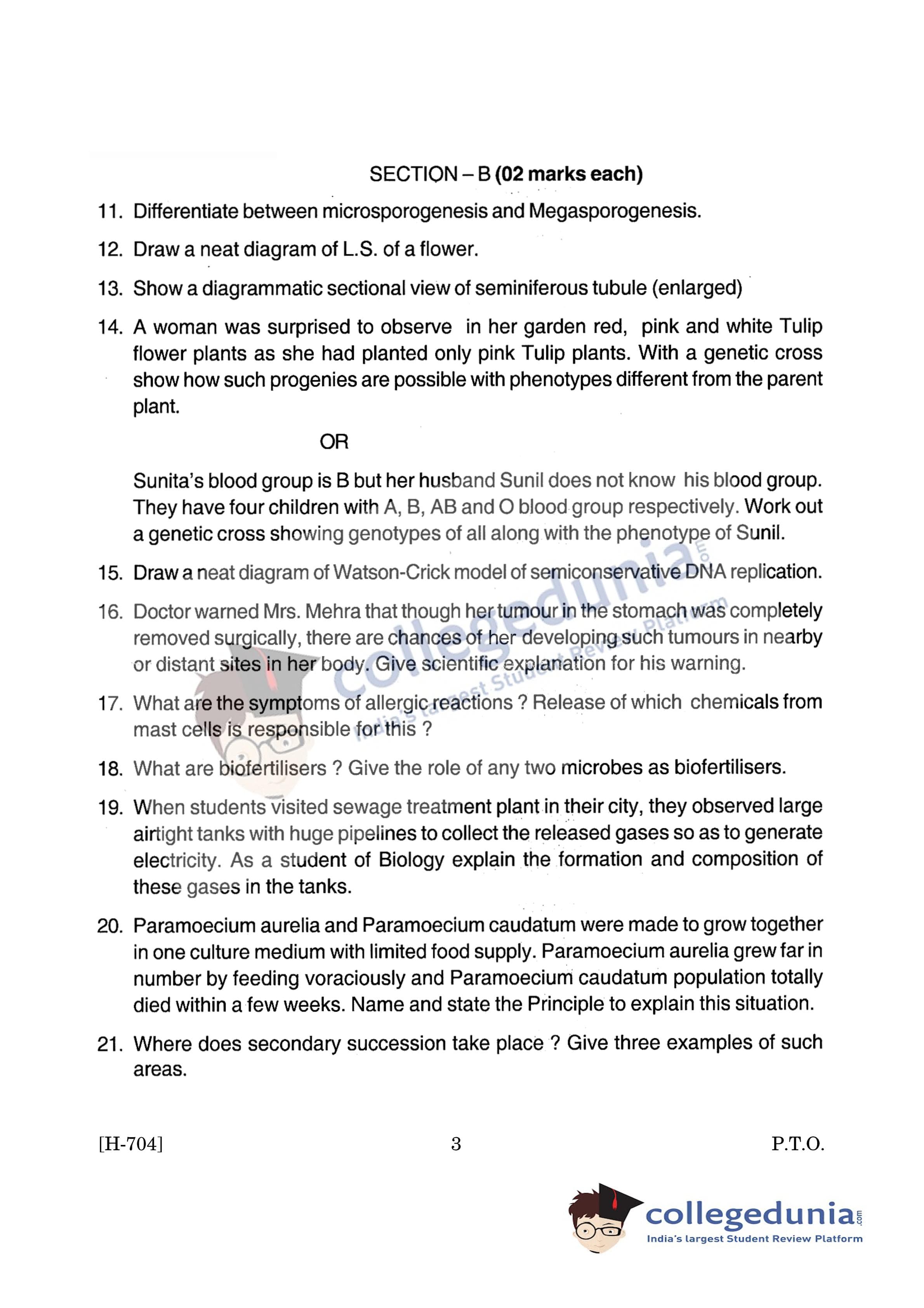 Goa Board HSSC Biology Question Paper 2019 with Answer Key (March 11)