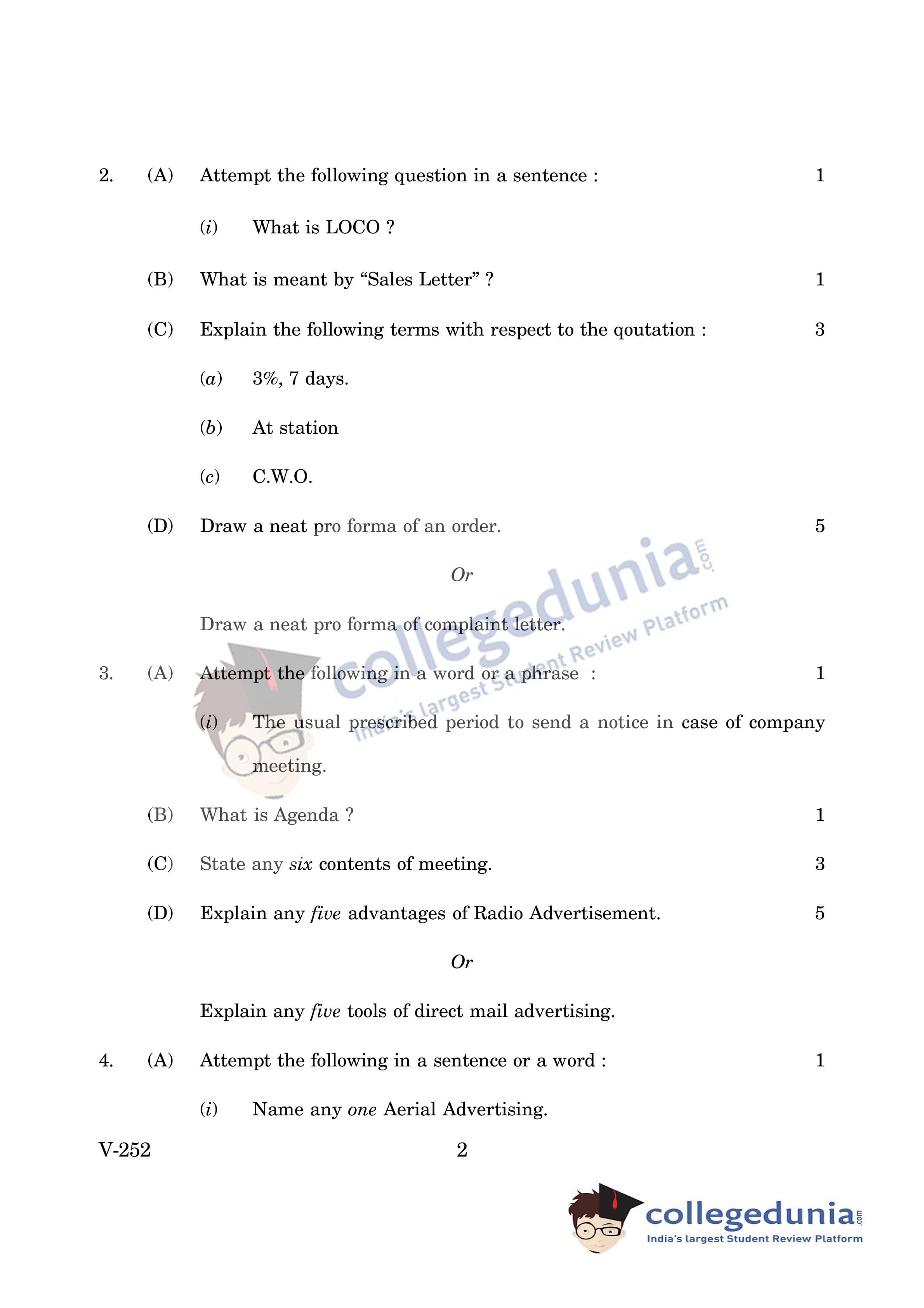 Goa Board HSSC Business Communication and Advertising Question Paper 2019 with Answer Key (March 12)
