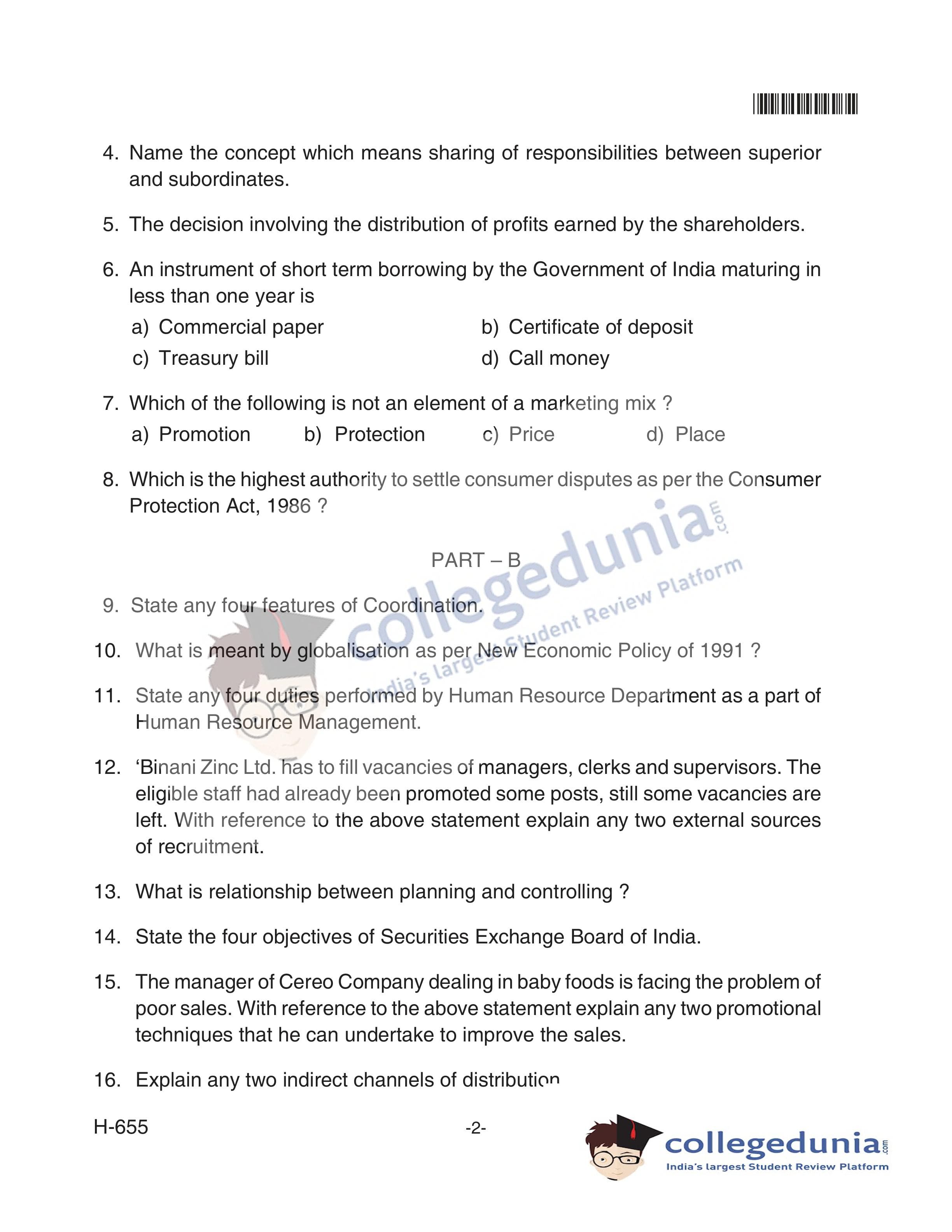 Goa Board HSSC Business Studies (New Pattern) Supplementary Question Paper 2018 with Answer Key (June 11)