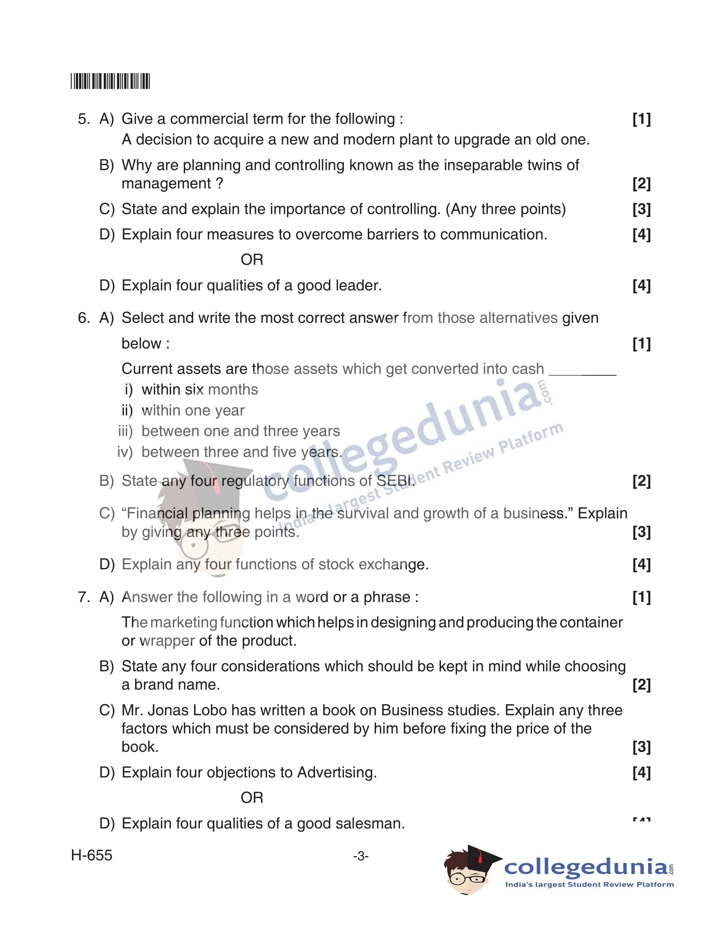 Goa Board HSSC Business Studies (Old Pattern) Supplementary Question Paper 2018 with Answer Key (June 11)