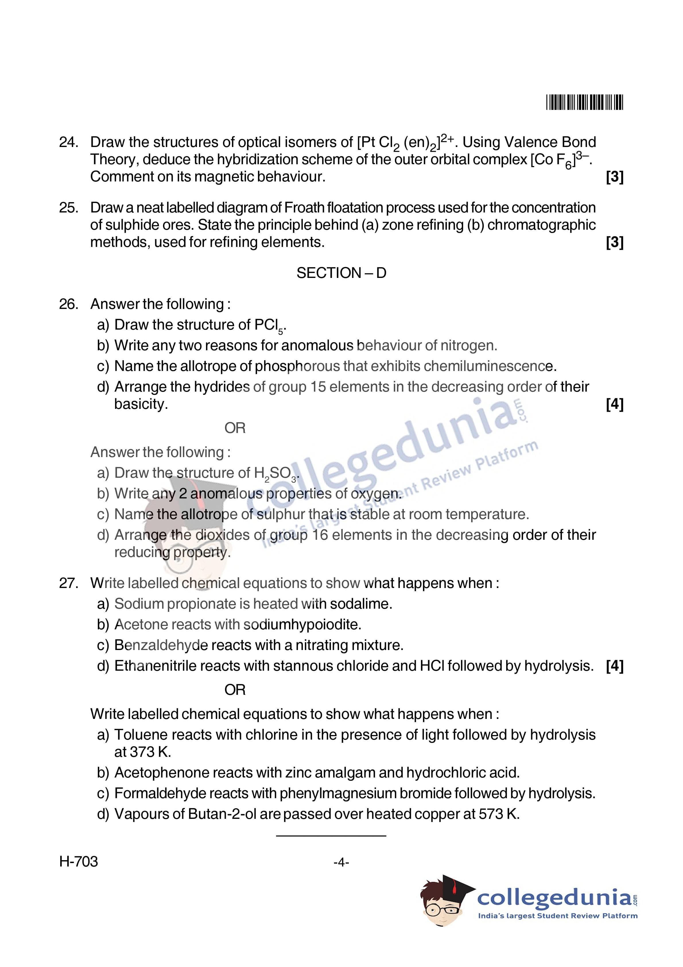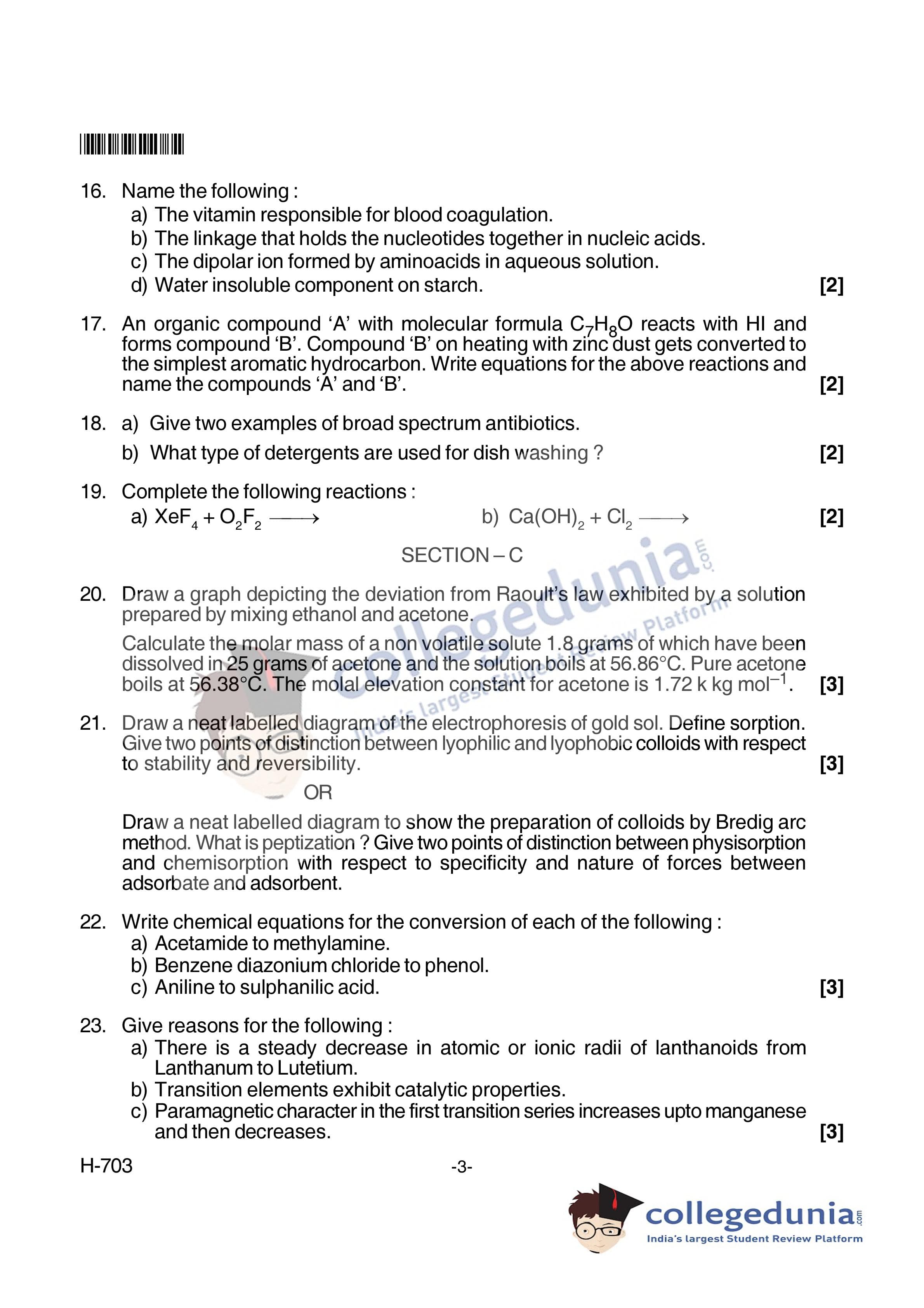Goa Board HSSC Chemistry Supplementary Question Paper 2018 with Answer Key (June 11)