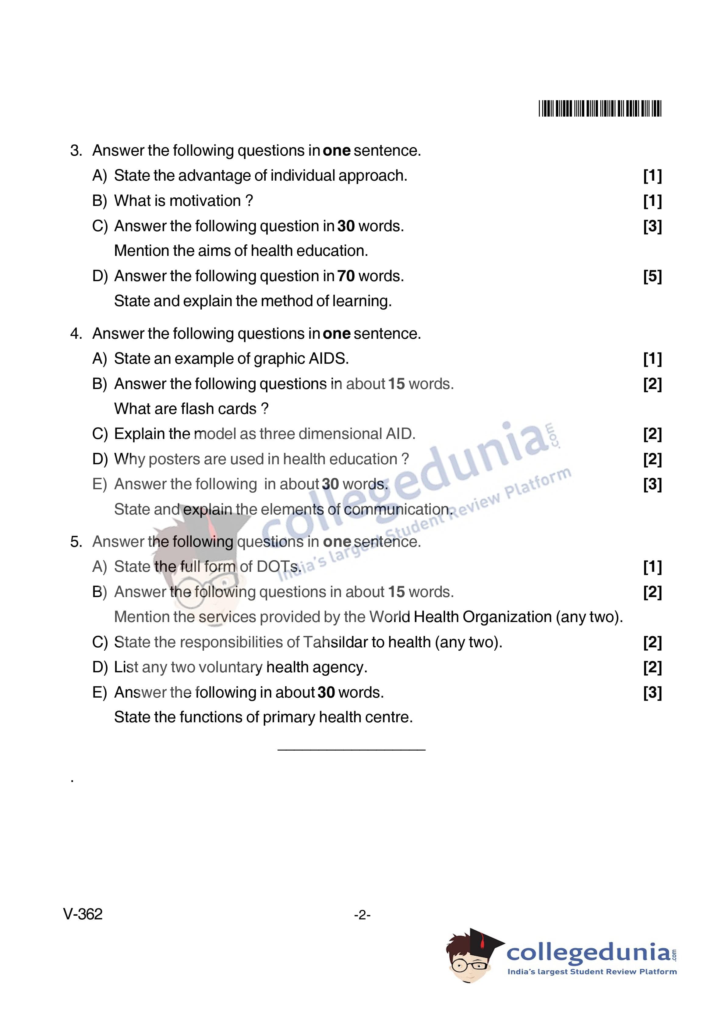 Goa Board HSSC Community Health Nursing - II Supplementary Question Paper 2018 with Answer Key (June 8)