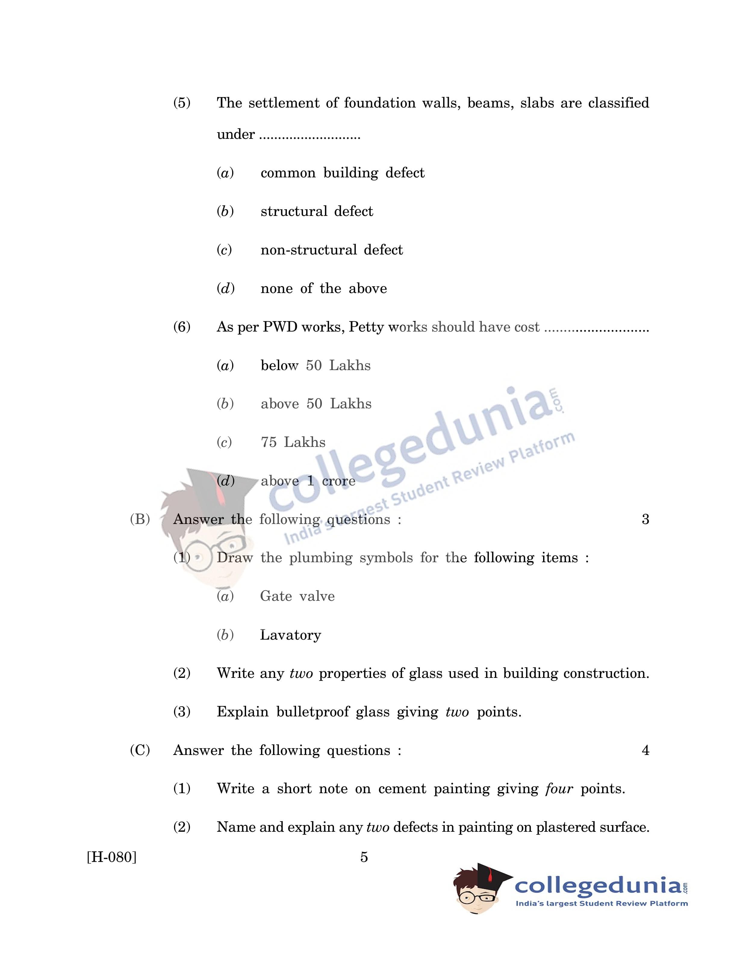 Goa Board HSSC Construction Question Paper 2019 with Answer Key is available for download. The exam was conducted by the Goa Board of Secondary and Higher Secondary Education (GBSHSE) on March 20, 2019 in the Morning Session 10 AM to 11:30 AM. The medium of paper was English. The question paper comprised a total of 3 questions.