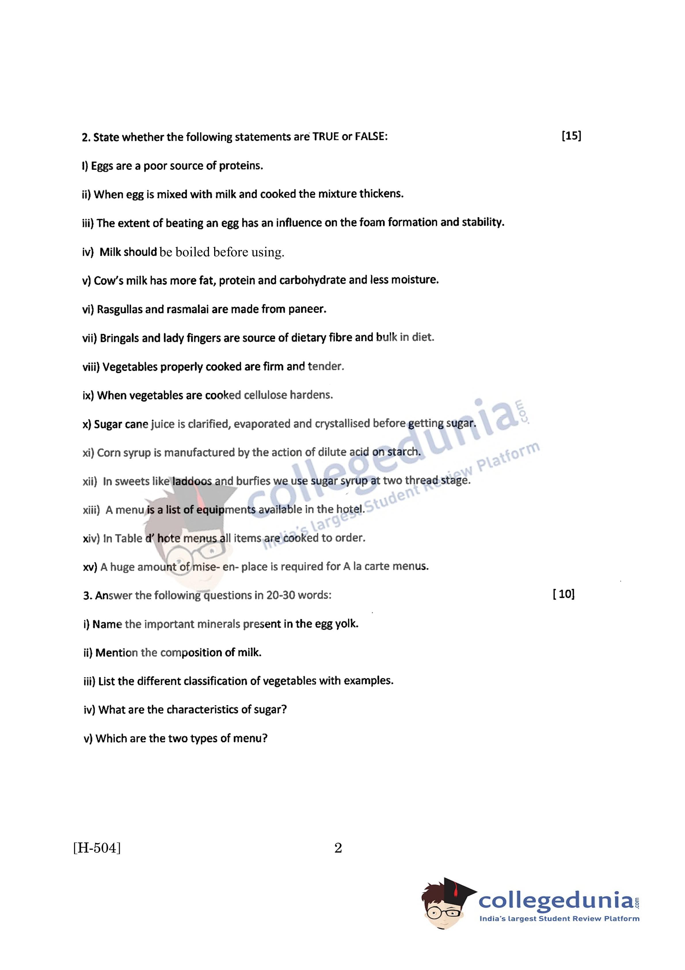 Goa Board HSSC Cookery Supplementary Question Paper 2019 with Answer Key is available for download. The exam was conducted by the Goa Board of Secondary and Higher Secondary Education (GBSHSE) on June 7, 2019 in the Morning Session 9:30 AM to 11 AM. The medium of paper was English. The Supplementary Question Paper comprised a total of 3 questions.