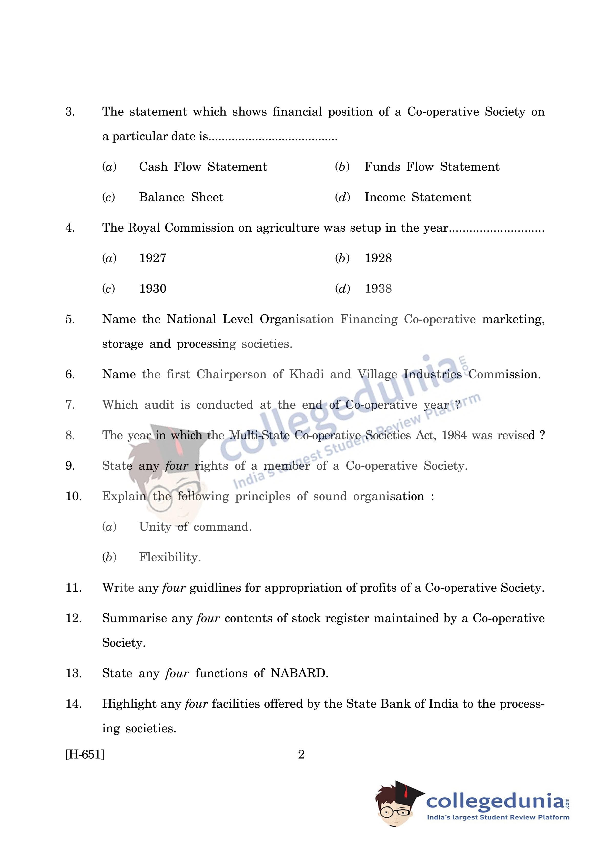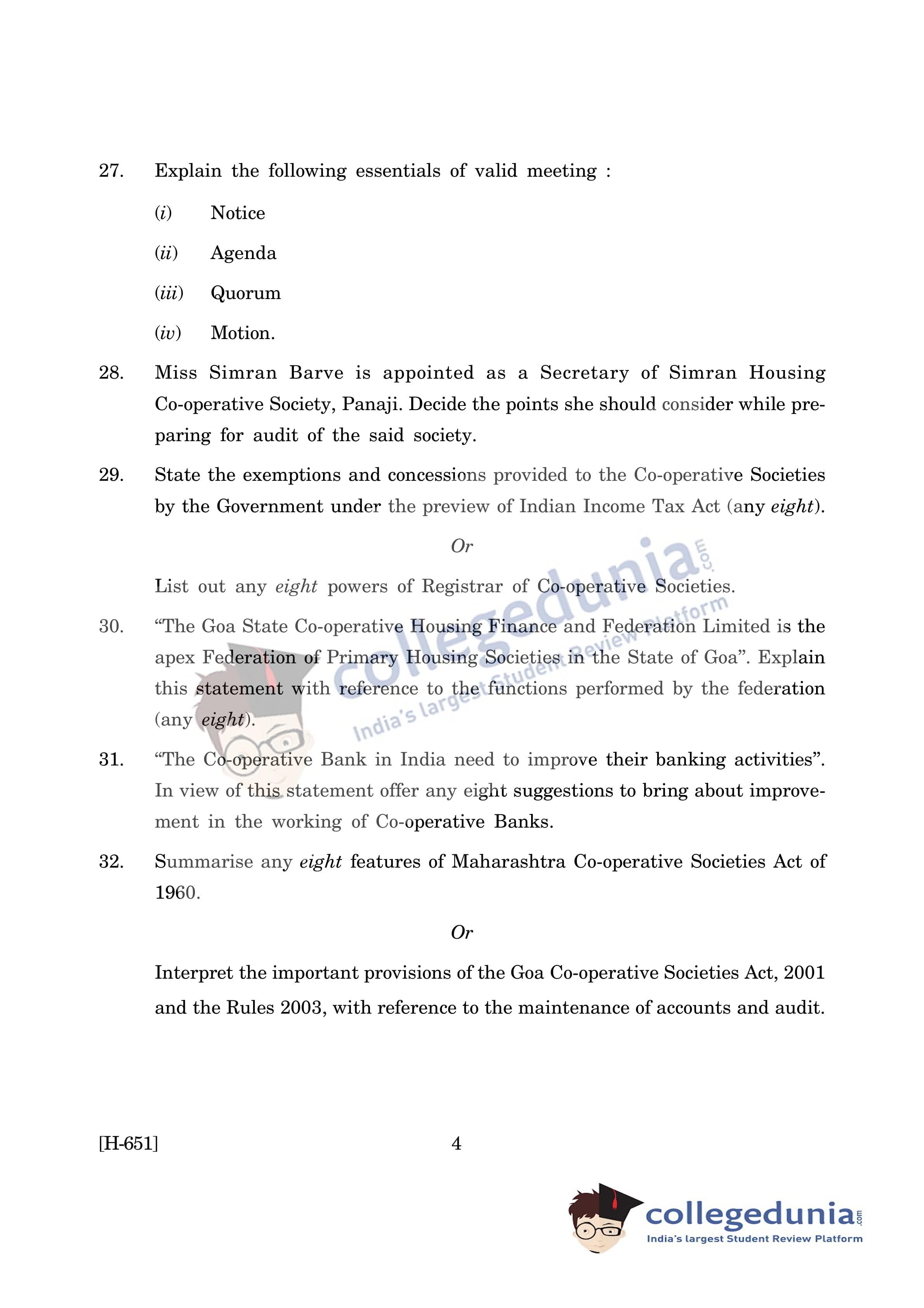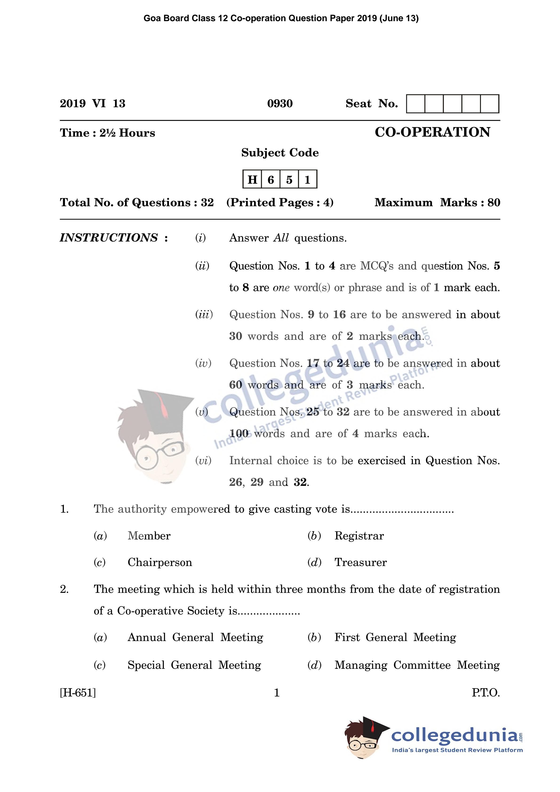 Goa Board HSSC Co-operation Supplementary Question Paper 2019 with Answer Key is available for download. The exam was conducted by the Goa Board of Secondary and Higher Secondary Education (GBSHSE) on June 13, 2019 in the Morning Session 9:30 AM to 12 PM. The medium of paper was English. The Supplementary Question Paper comprised a total of 32 questions.