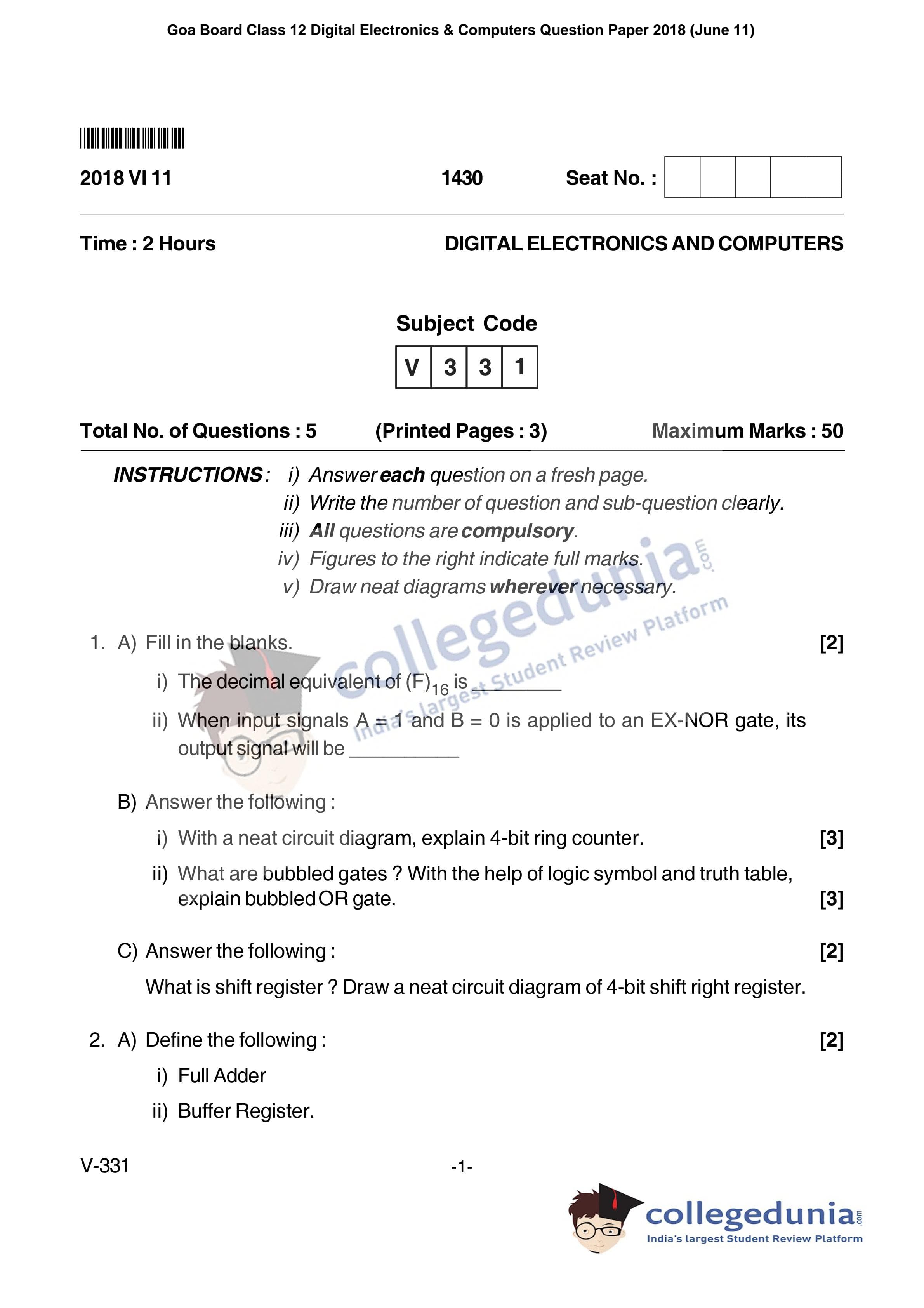| Goa Board HSSC Digital Electronics & Computers Question Paper 2018 PDF | Goa Board HSSC Digital Electronics & Computers Answer Key 2018 PDF |