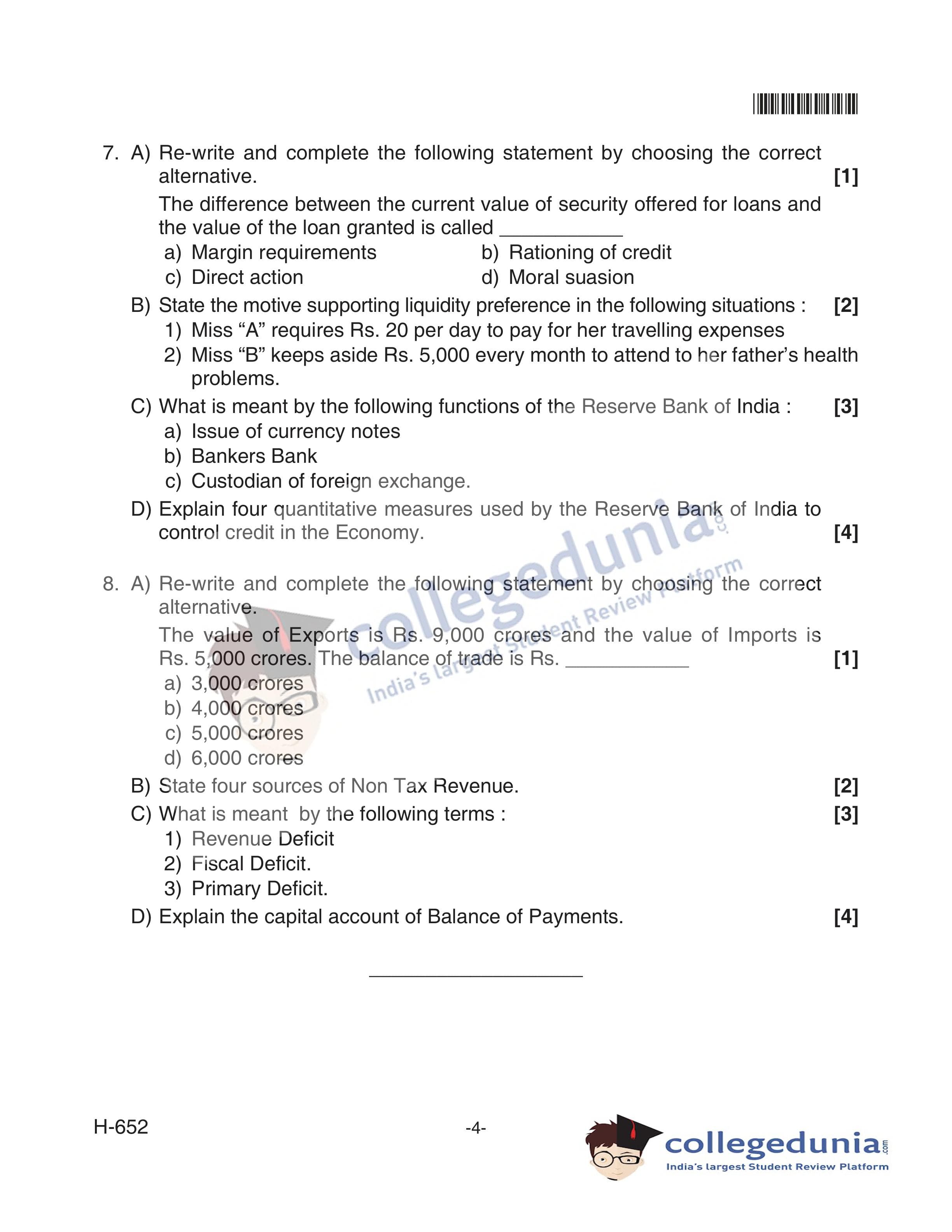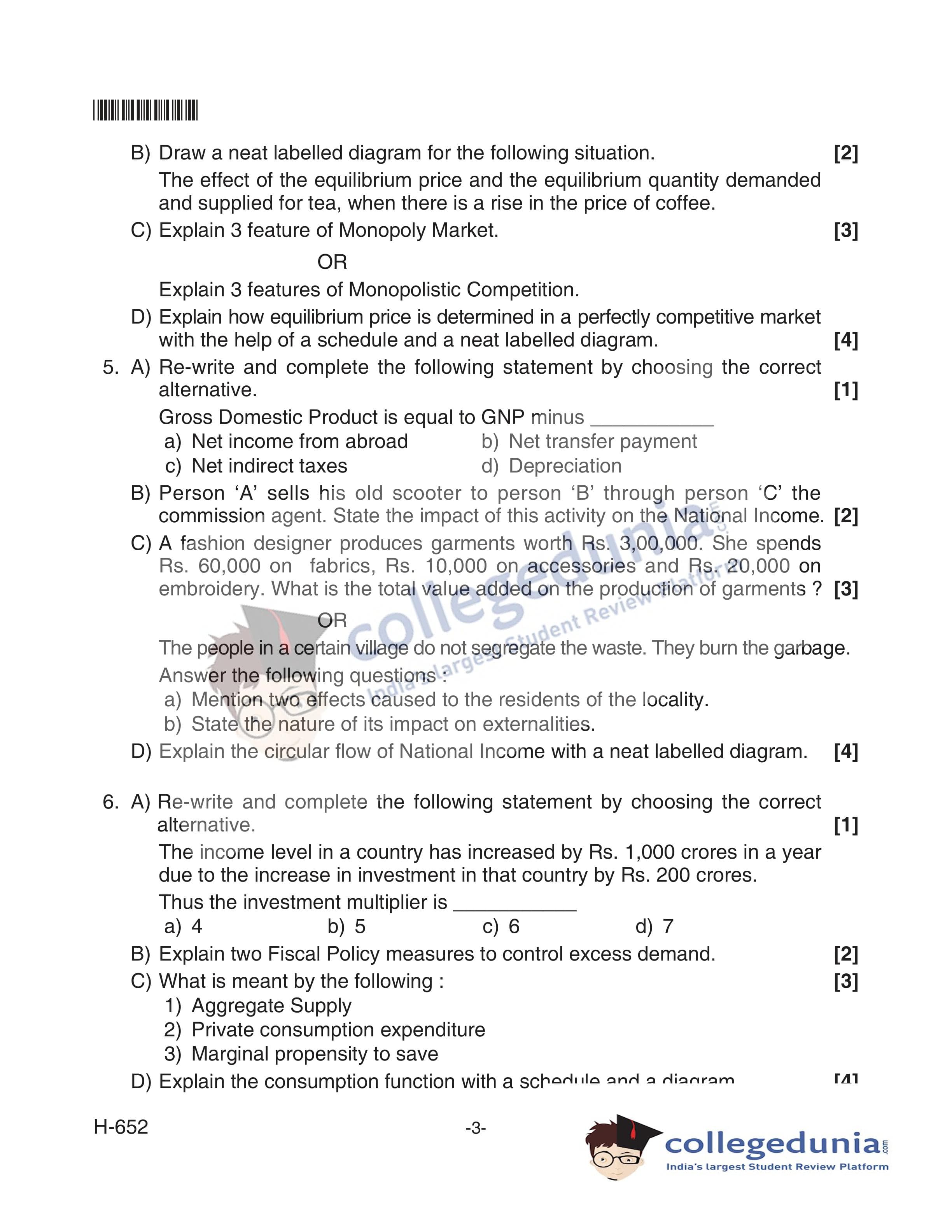 Goa Board HSSC Economics Supplementary Question Paper 2018 with Answer Key (June 13)