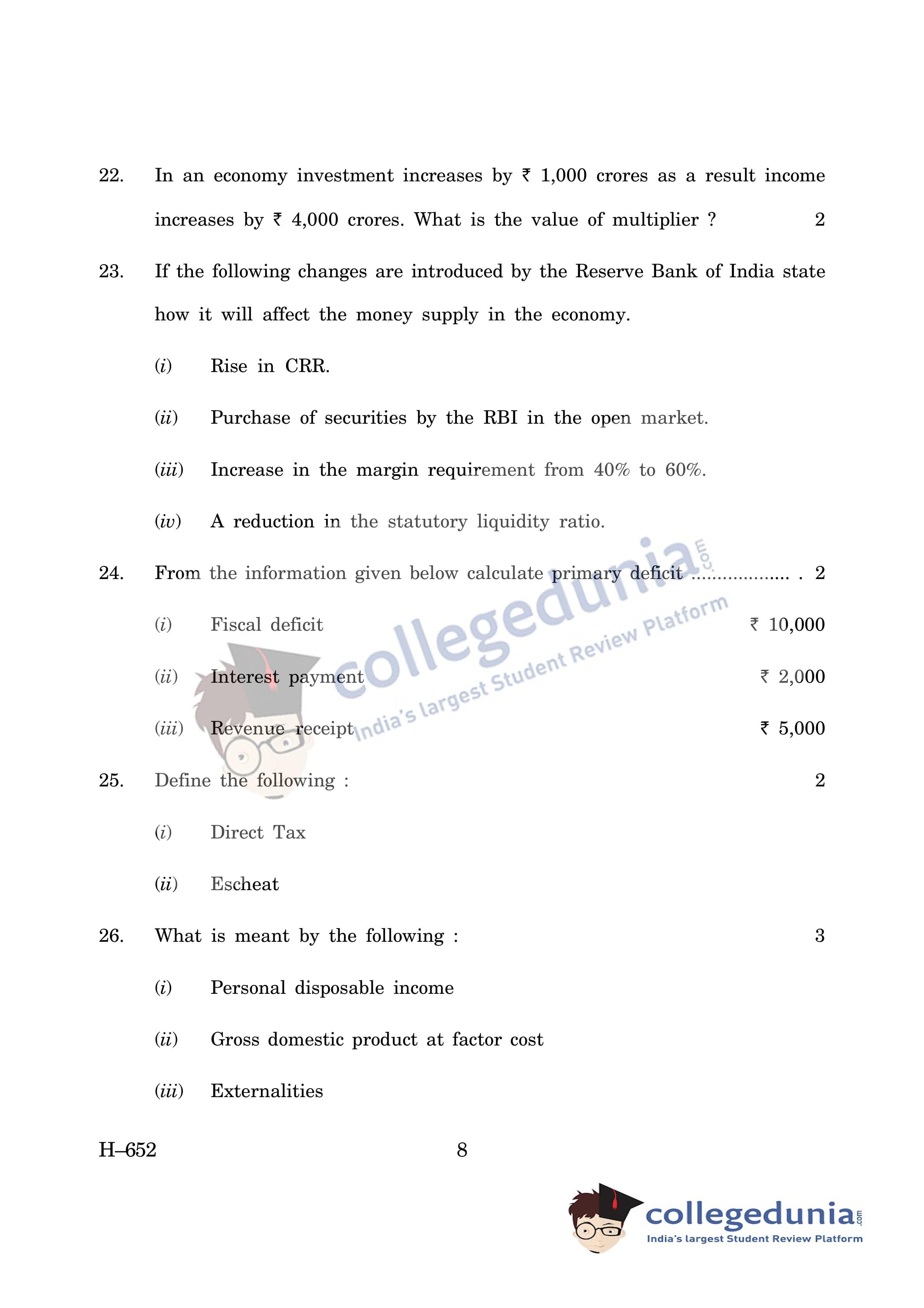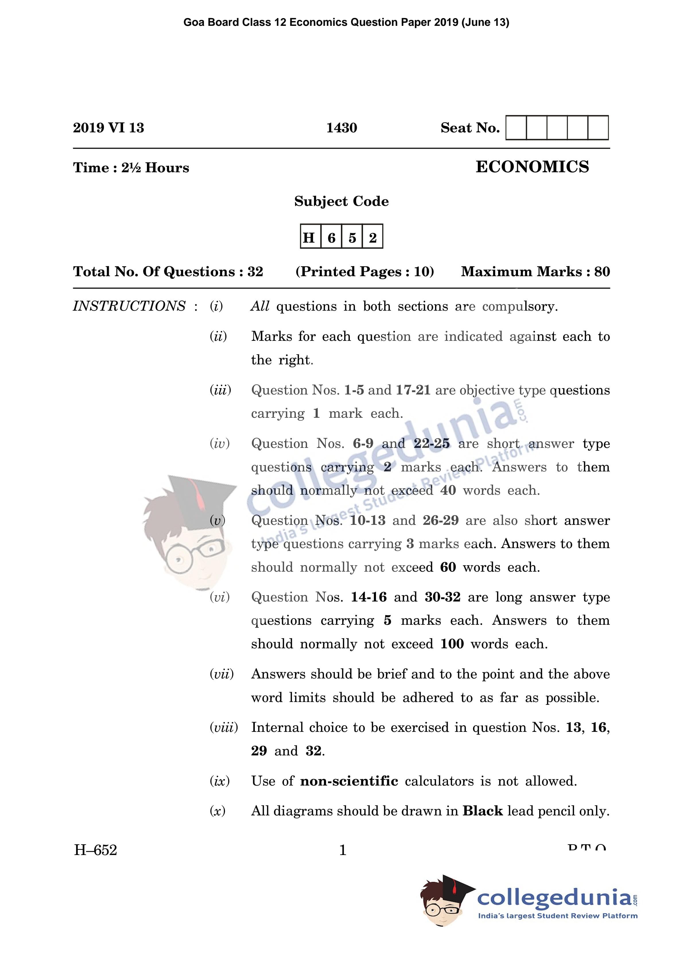 Goa Board HSSC Economics Supplementary Question Paper 2019 with Answer Key (June 13)