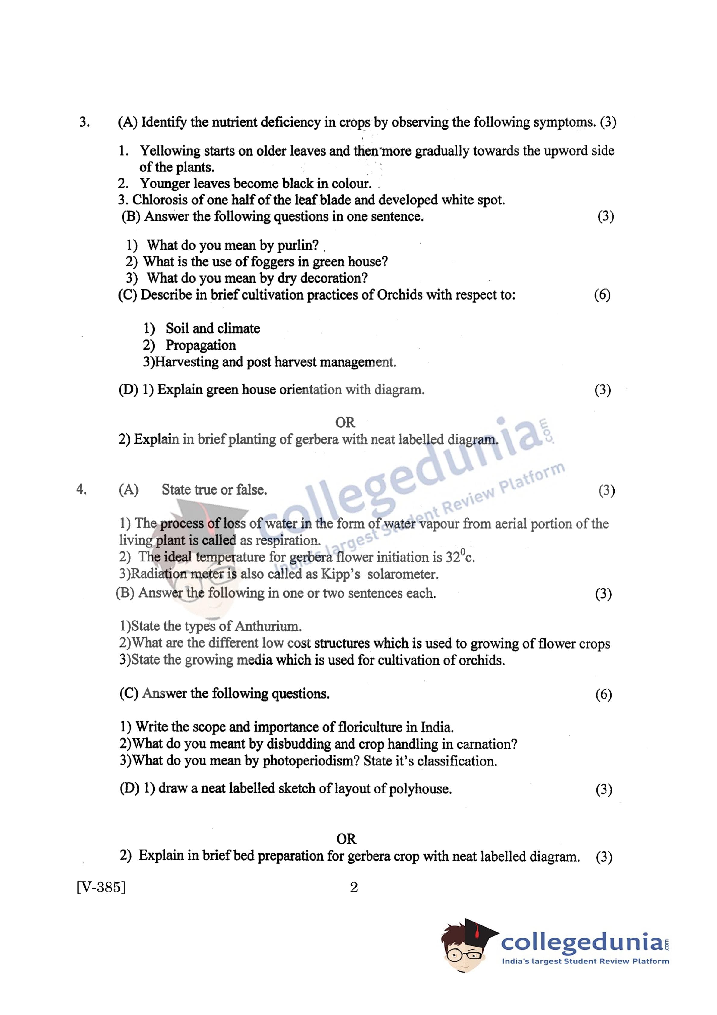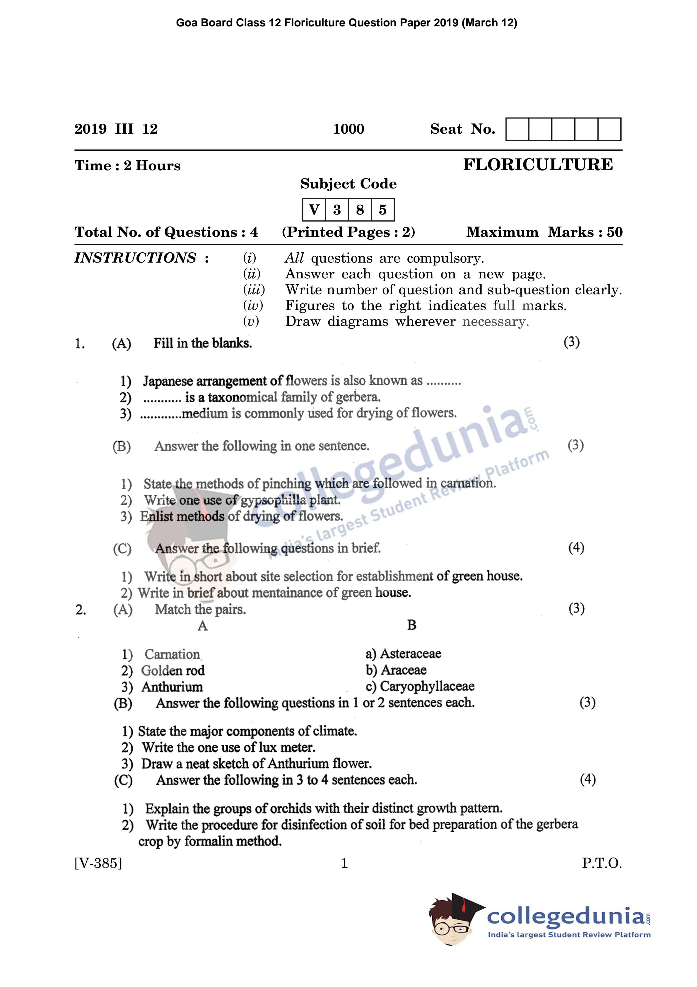 Goa Board HSSC Floriculture Question Paper 2019 with Answer Key (March 12)