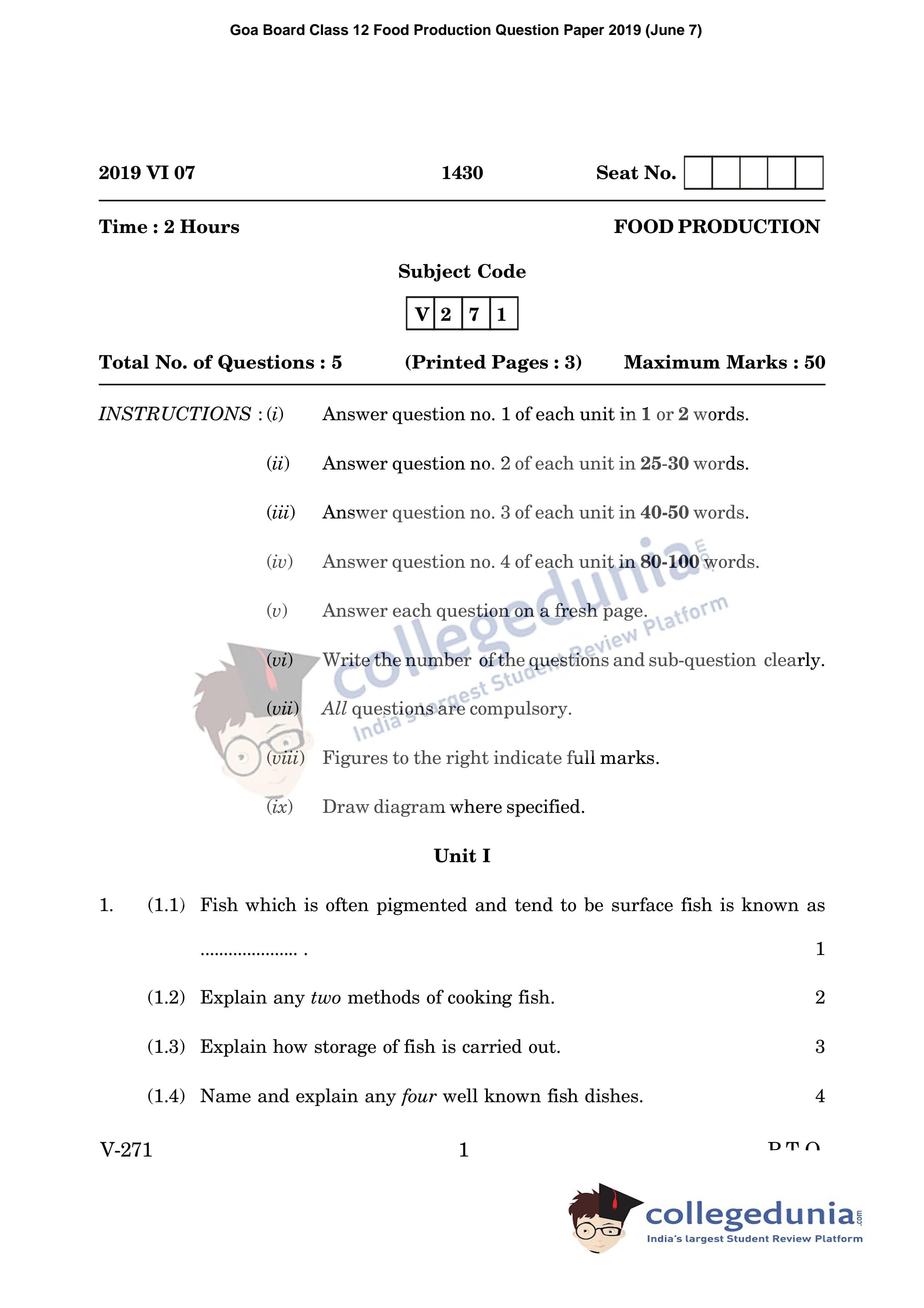 | Goa Board HSSC Food Production Question Paper 2019 PDF | Goa Board HSSC Food Production Answer Key 2019 PDF |