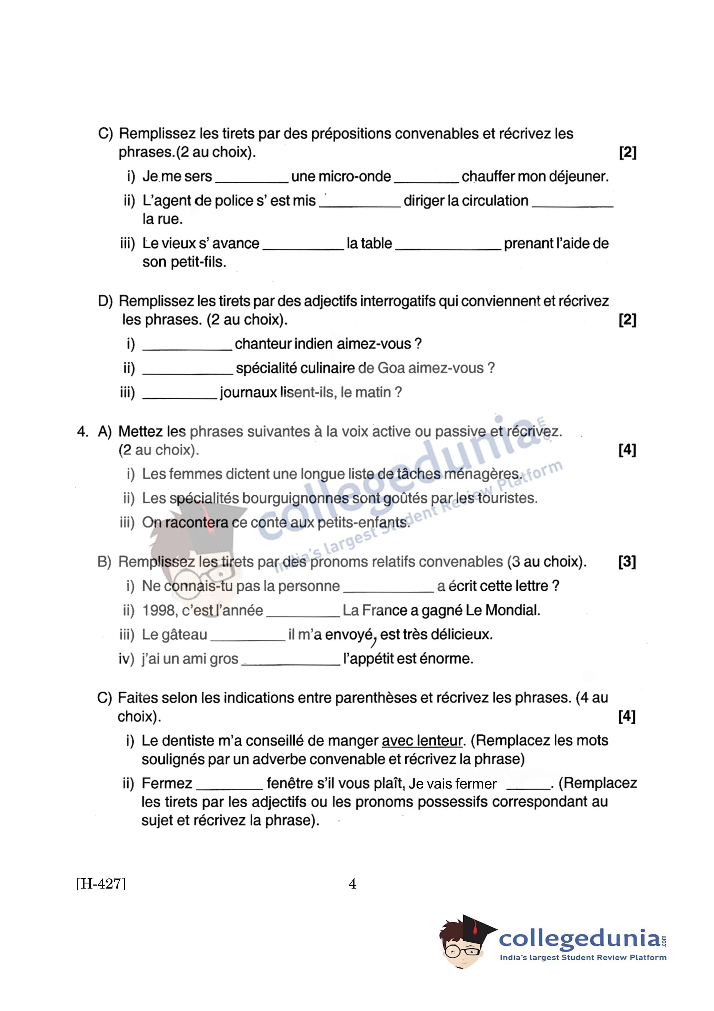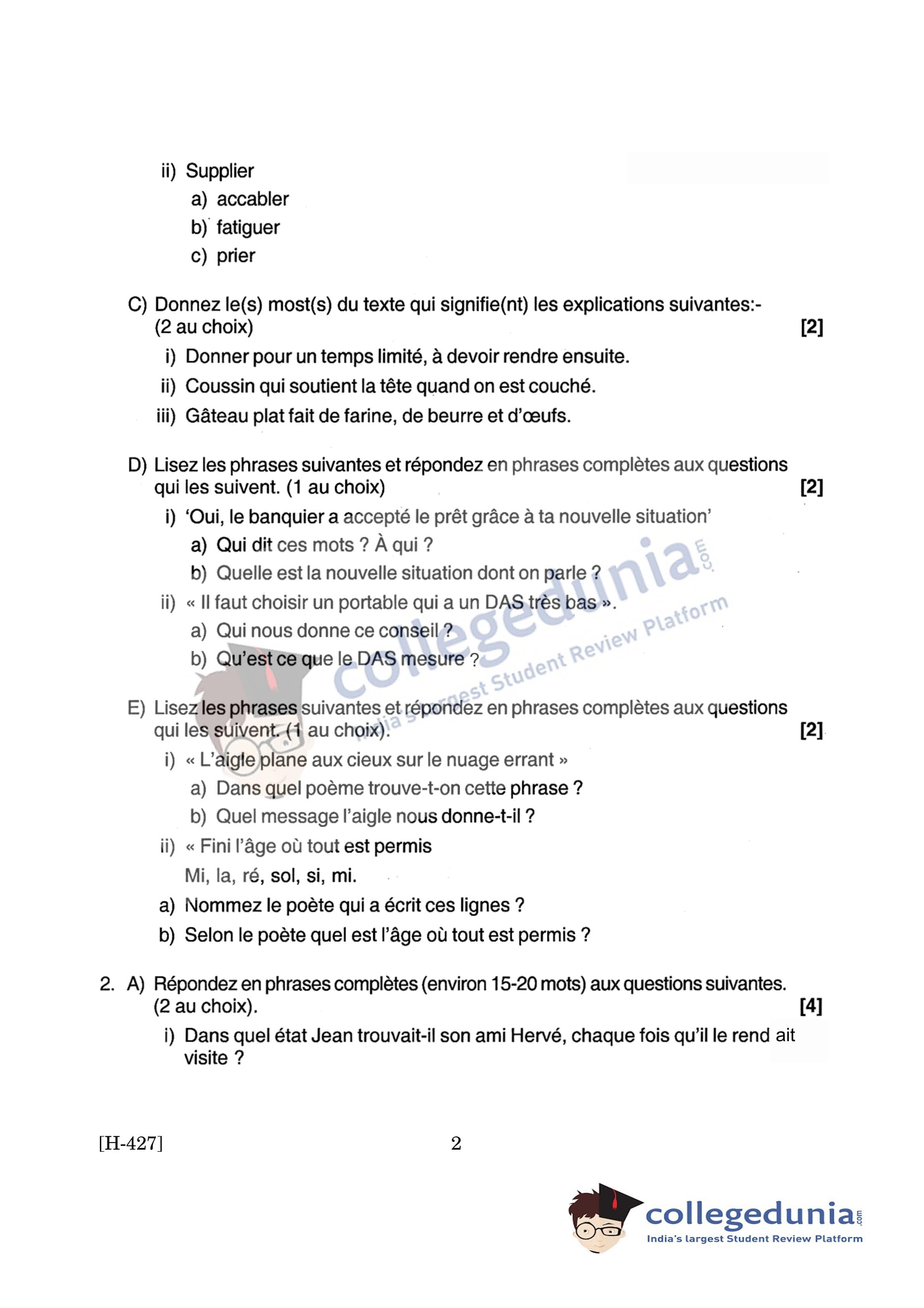 Goa Board HSSC French II Supplementary Question Paper 2019 with Answer Key is available for download. The exam was conducted by the Goa Board of Secondary and Higher Secondary Education (GBSHSE) on June 11, 2019 in the Afternoon Session 2:30 PM to 5 PM. The medium of paper was French. The Supplementary Question Paper comprised a total of 8 questions.