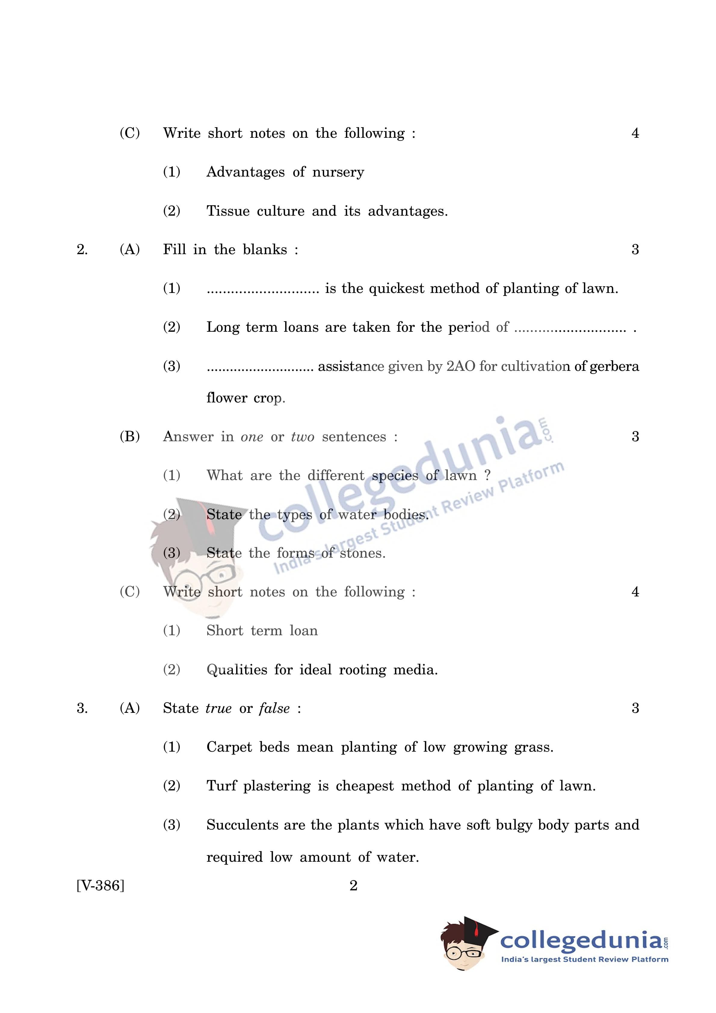 Goa Board HSSC Gardening & Landscaping Question Paper 2019 with Answer Key (March 14)