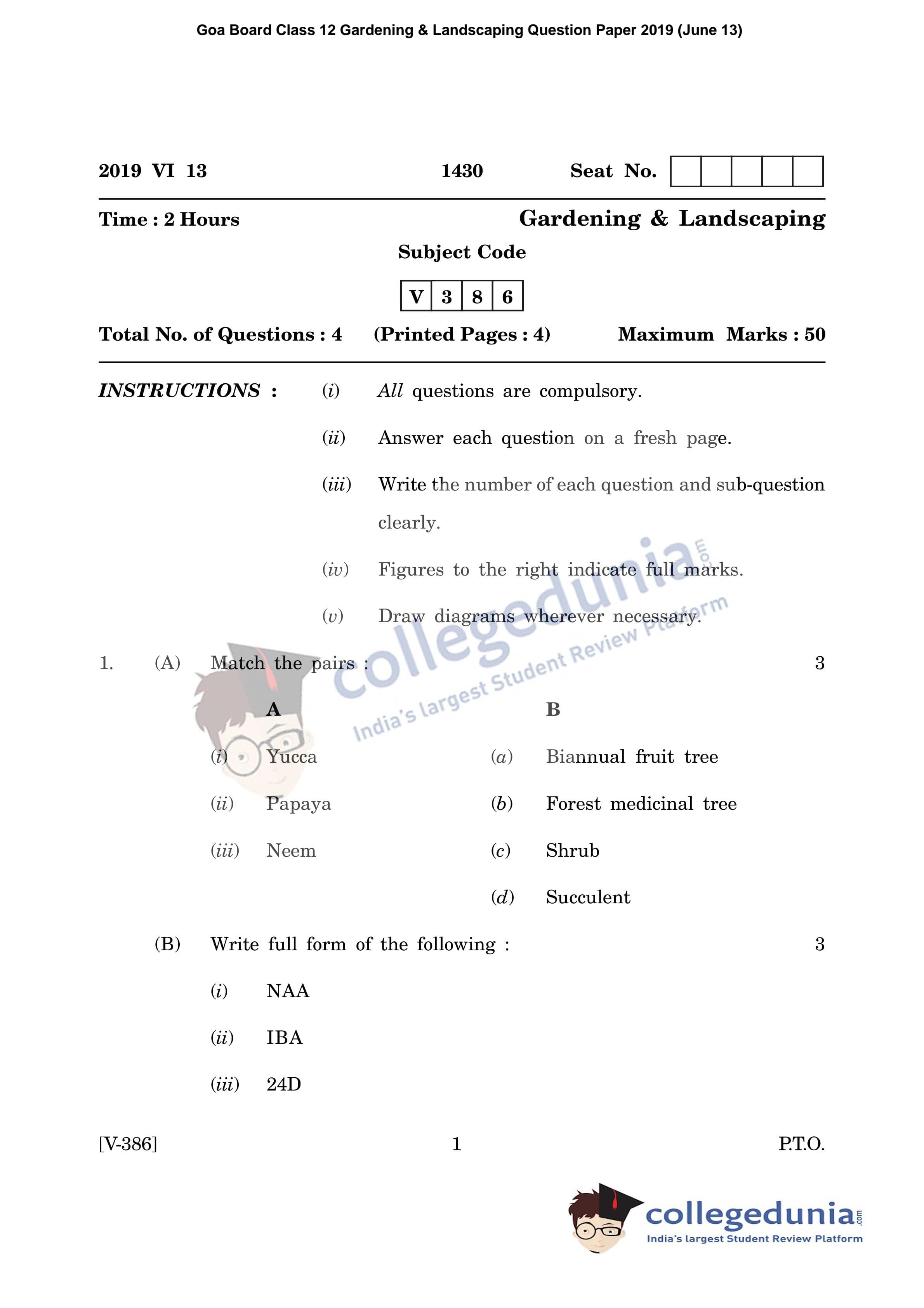 | Goa Board HSSC Gardening & Landscaping Question Paper 2019 PDF | Goa Board HSSC Gardening & Landscaping Answer Key 2019 PDF |