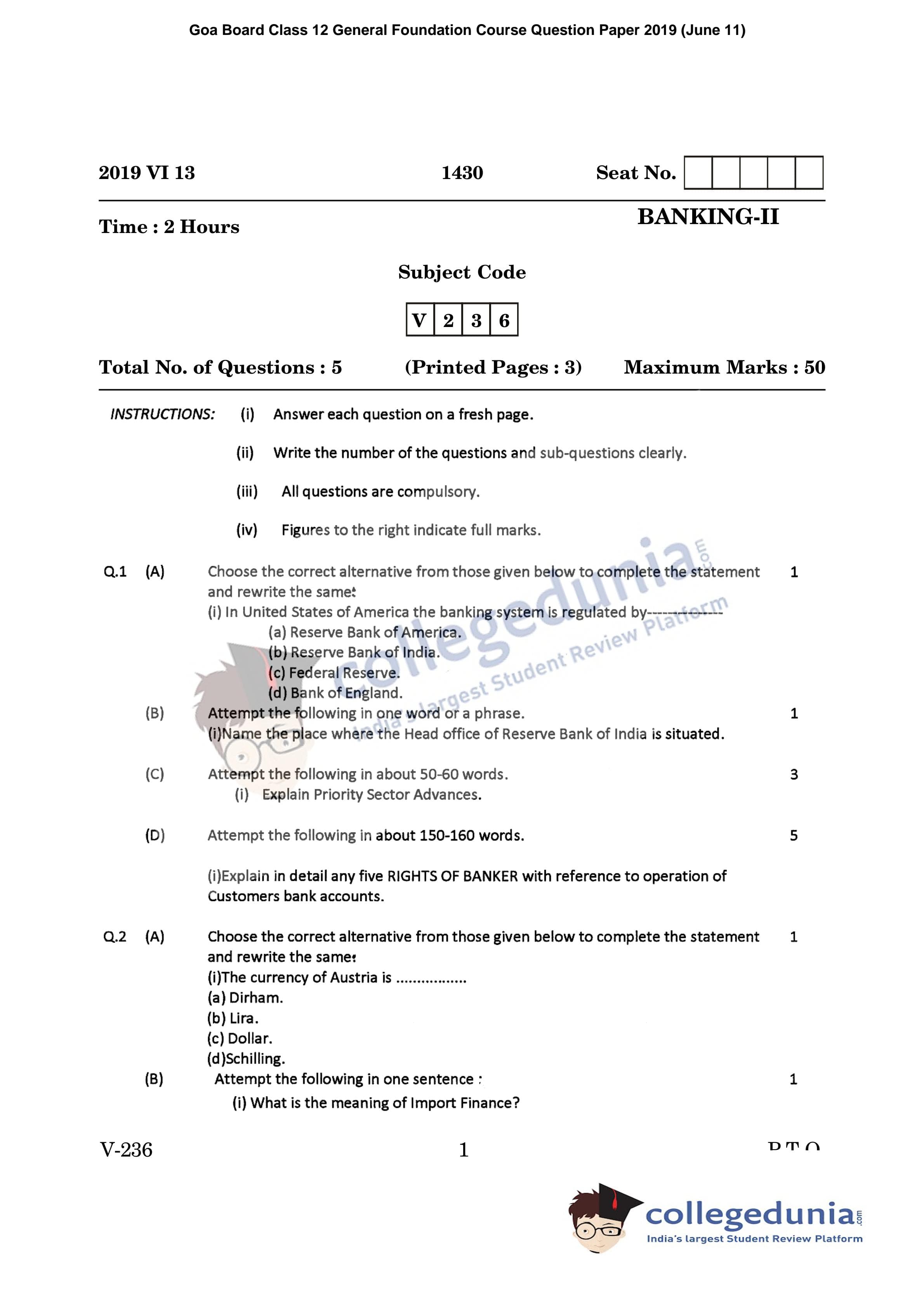 | Goa Board HSSC General Foundation Course Question Paper 2019 PDF | Goa Board HSSC General Foundation Course Answer Key 2019 PDF |