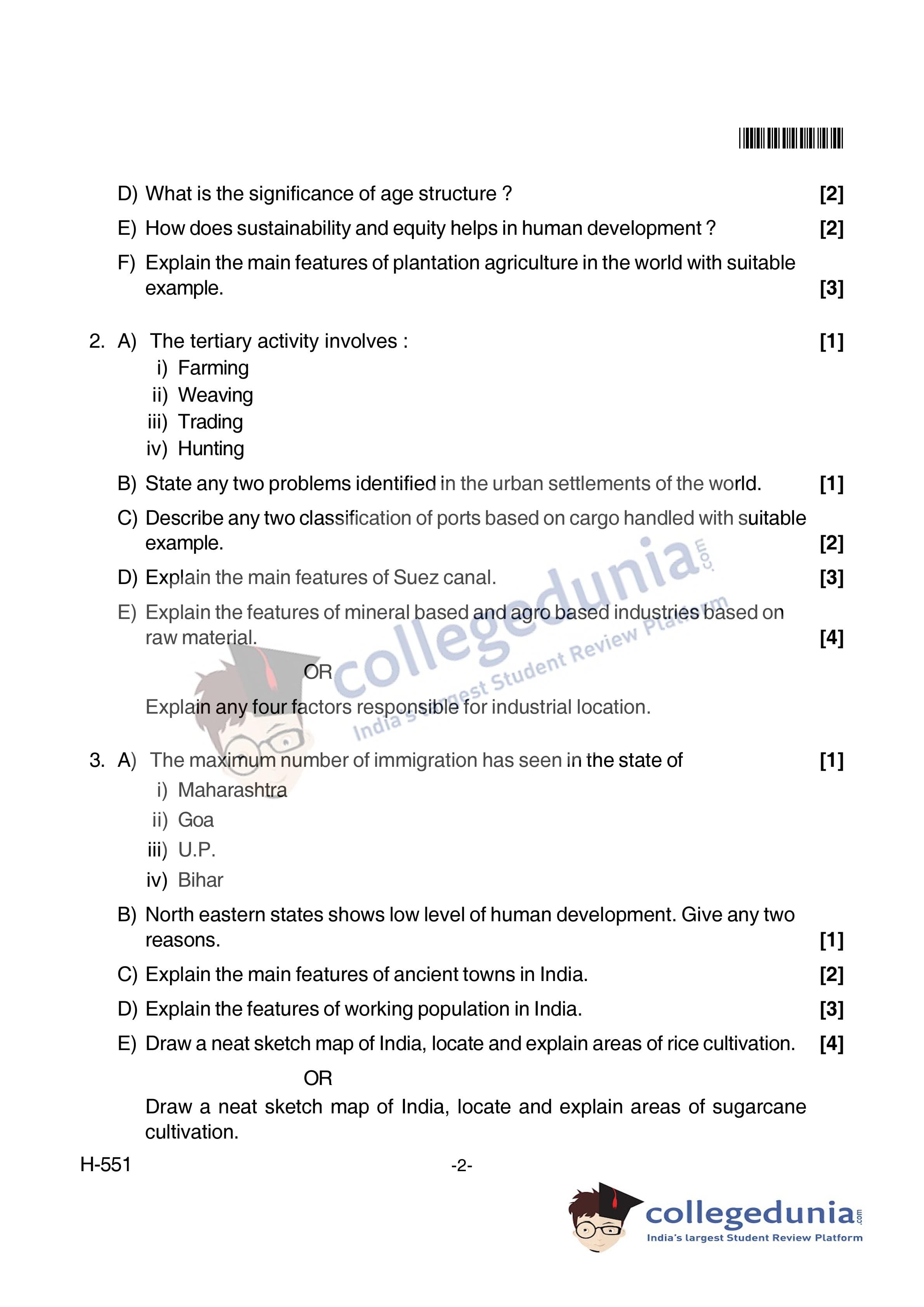 Goa Board HSSC Geography Question Paper 2018 with Answer Key (March 23)
