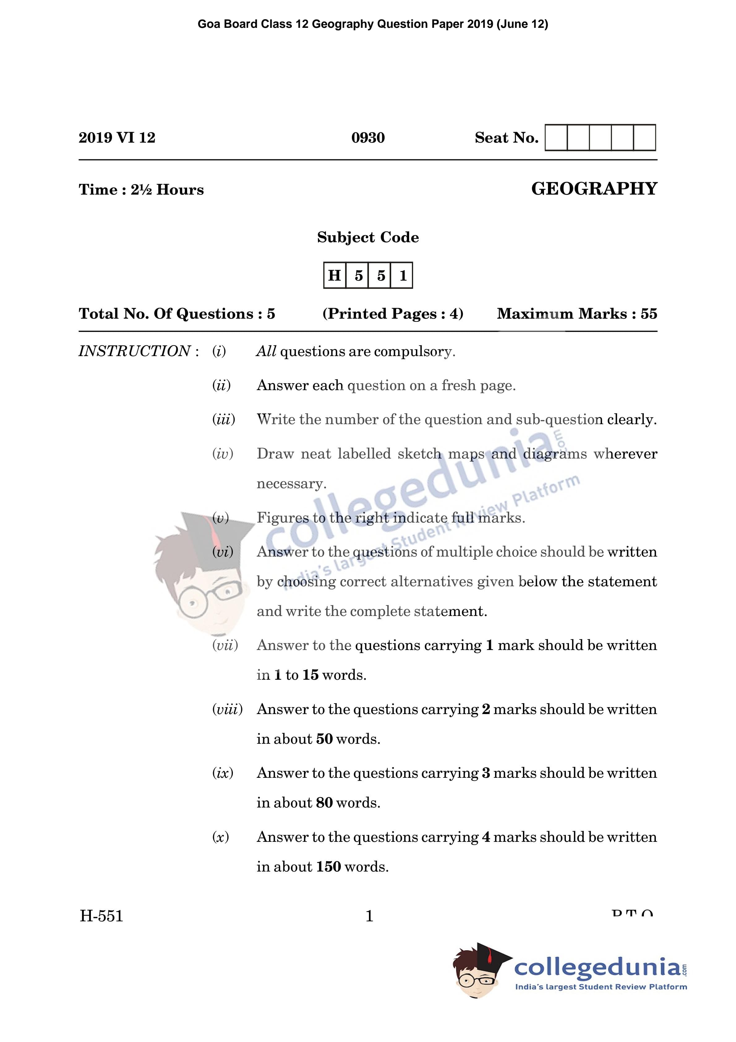 | Goa Board HSSC Geography Question Paper 2019 PDF | Goa Board HSSC Geography Answer Key 2019 PDF |