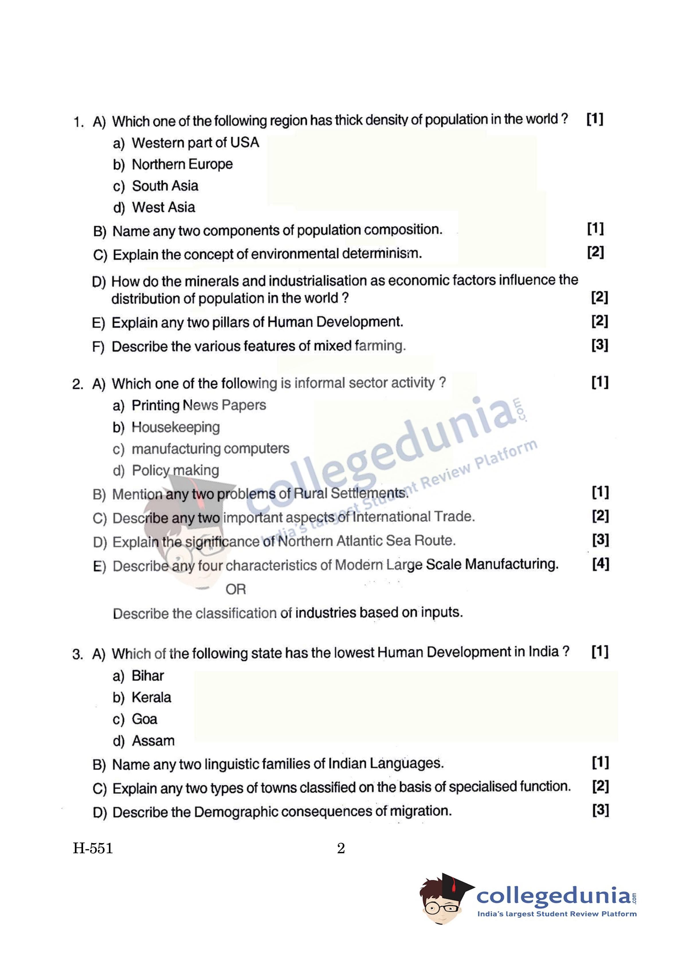 Goa Board HSSC Geography Supplementary Question Paper 2019 with Answer Key (June 12)