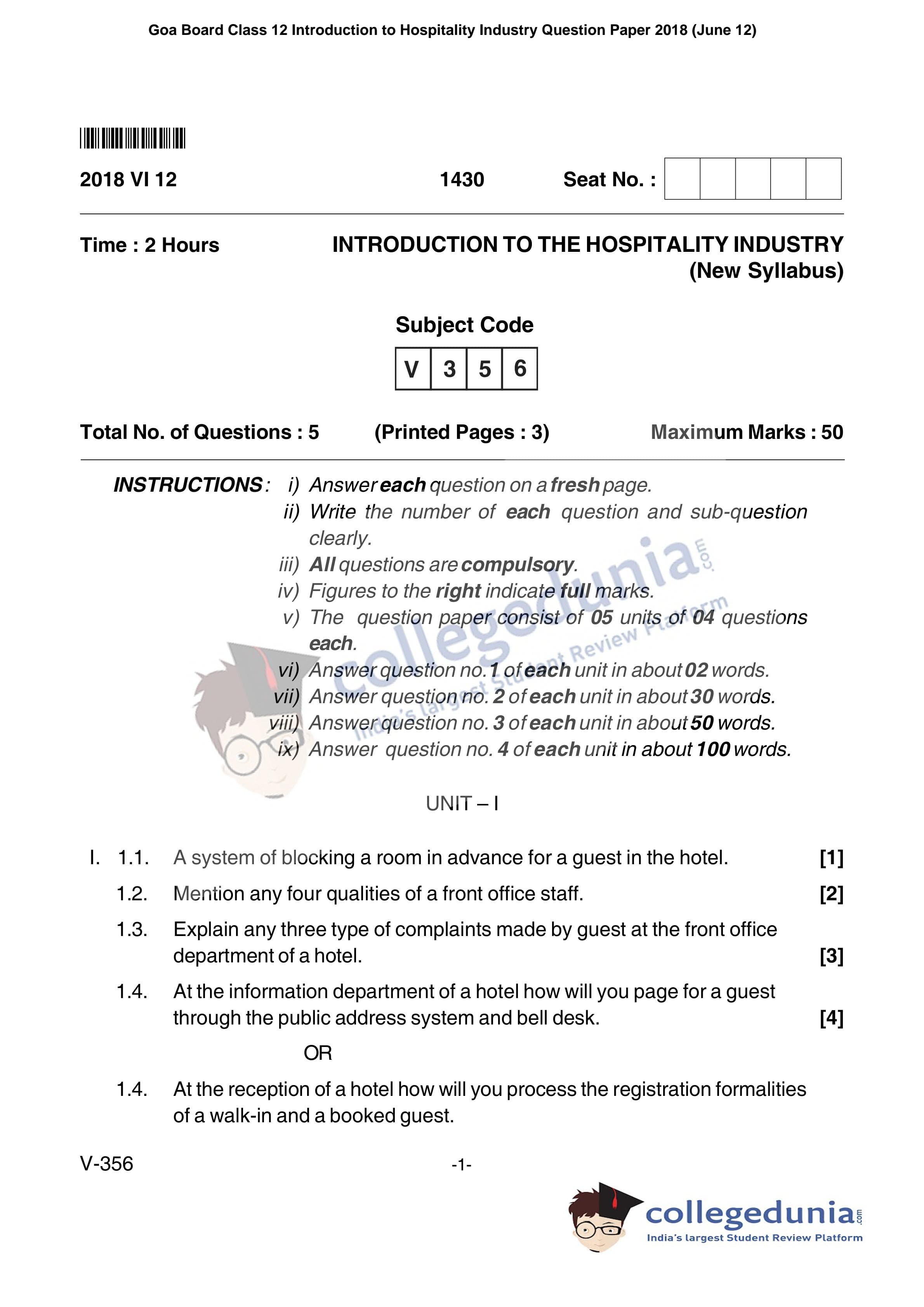 | Goa Board HSSC Introduction to Hospitality Industry Question Paper 2018 PDF | Goa Board HSSC Introduction to Hospitality Industry Answer Key 2018 PDF |